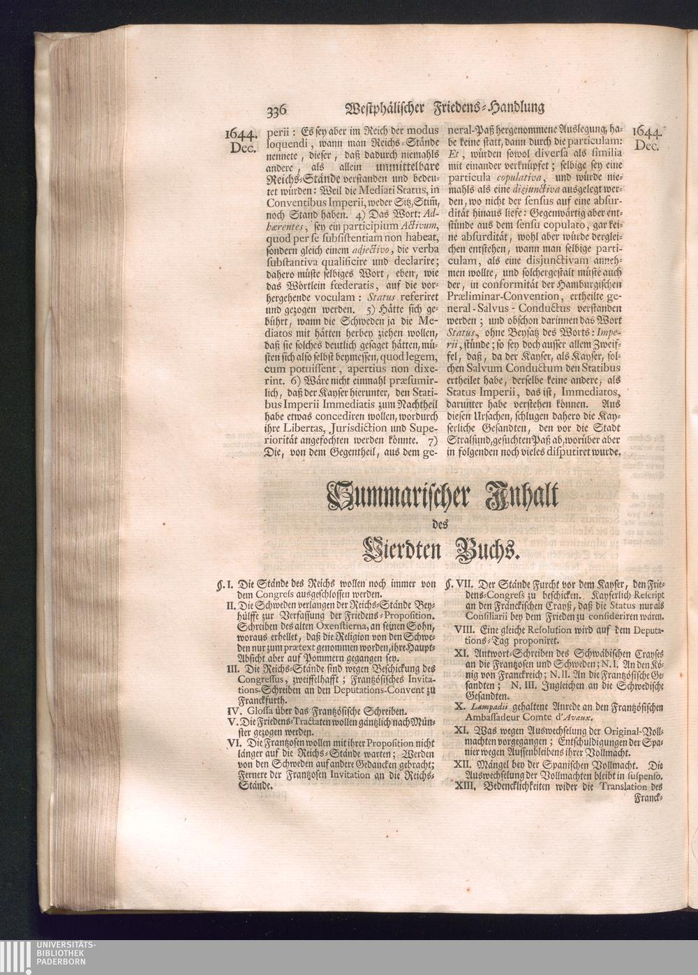 Erster Theil (1734) Worinnen enthalten, was vom Jahr 1643. biß in den Monath October Anno 1645. zwischen Jhro Römisch-Käyserlichen Majestät, dann den Beyden Cronen Franckreich und Schweden, ingleichen des Heiligen Römischen Reichs Chur-Fürsten, Fürsten und Ständen, zu Oßnabrück und Münster gehandelt worden