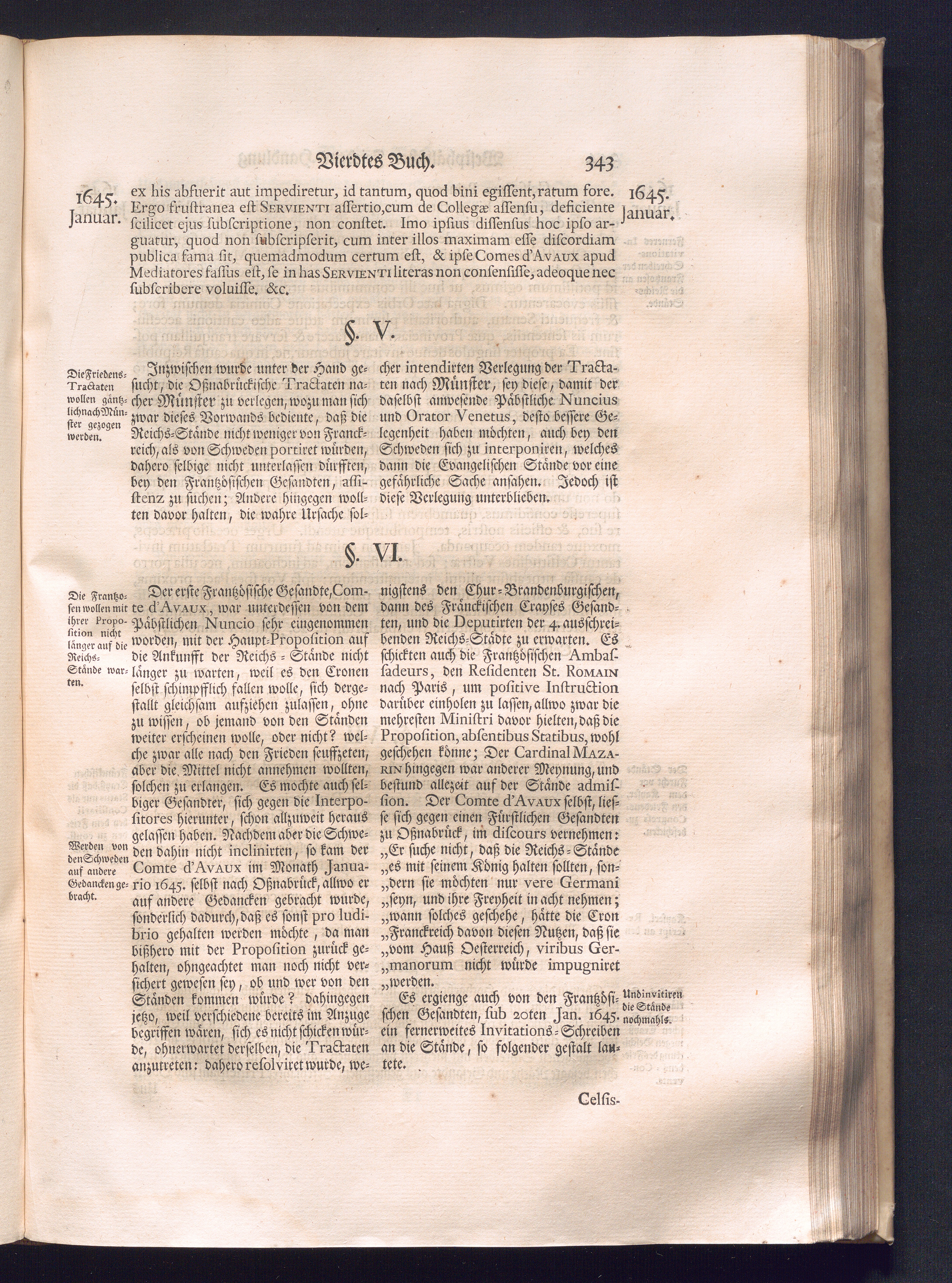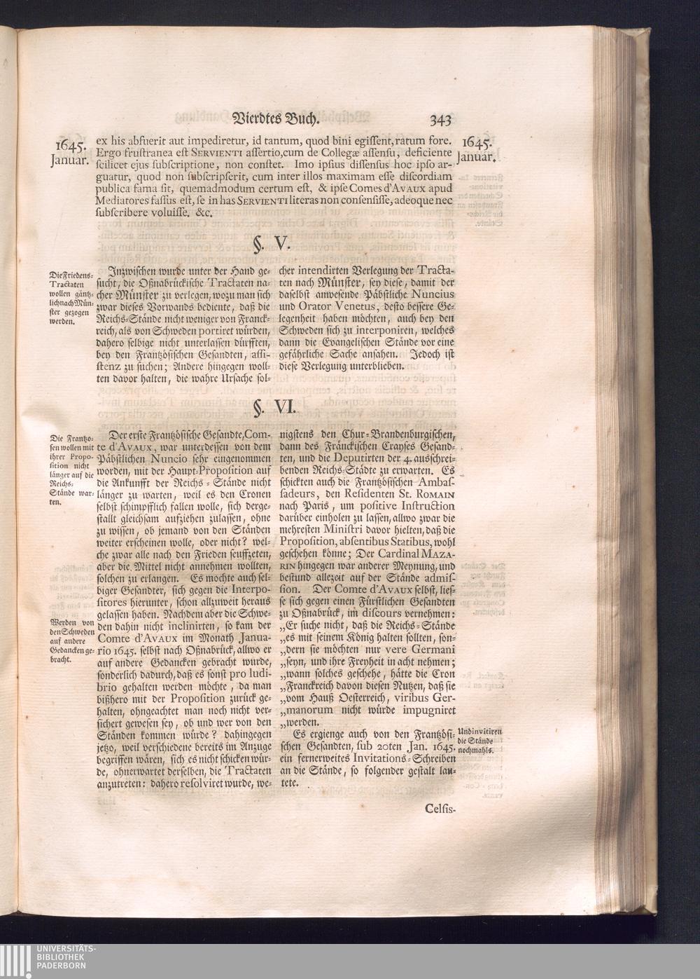 Erster Theil (1734) Worinnen enthalten, was vom Jahr 1643. biß in den Monath October Anno 1645. zwischen Jhro Römisch-Käyserlichen Majestät, dann den Beyden Cronen Franckreich und Schweden, ingleichen des Heiligen Römischen Reichs Chur-Fürsten, Fürsten und Ständen, zu Oßnabrück und Münster gehandelt worden