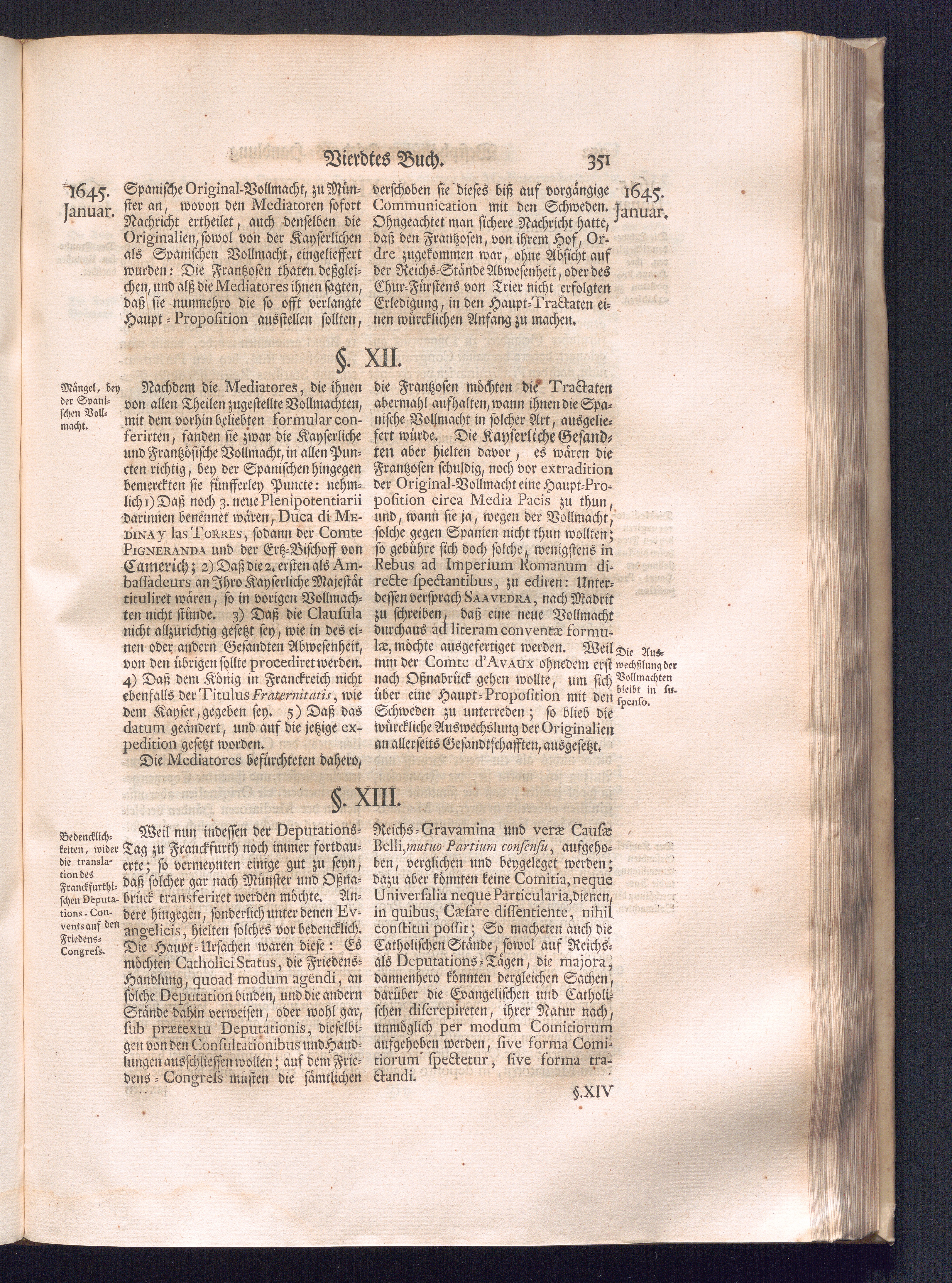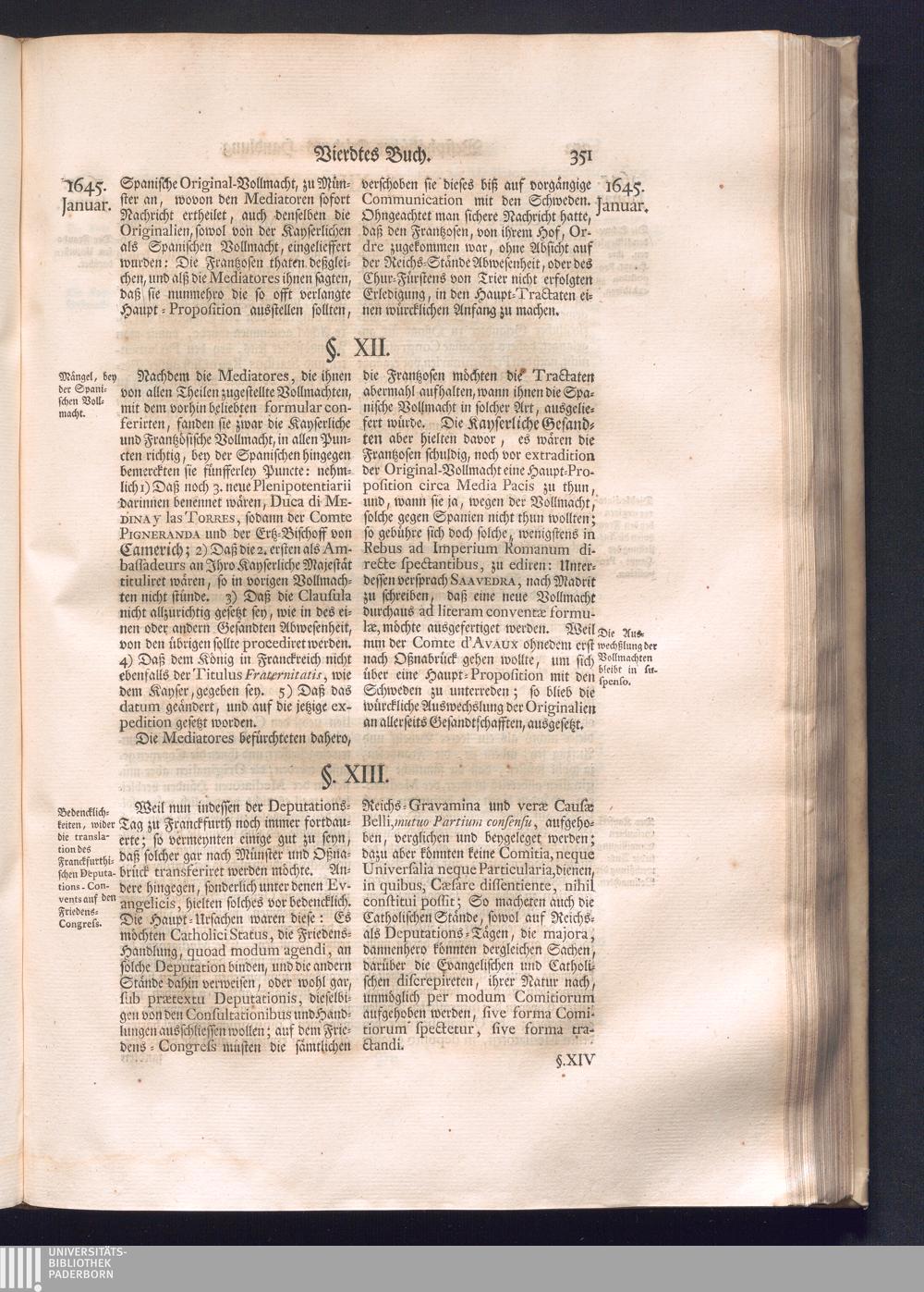 Erster Theil (1734) Worinnen enthalten, was vom Jahr 1643. biß in den Monath October Anno 1645. zwischen Jhro Römisch-Käyserlichen Majestät, dann den Beyden Cronen Franckreich und Schweden, ingleichen des Heiligen Römischen Reichs Chur-Fürsten, Fürsten und Ständen, zu Oßnabrück und Münster gehandelt worden