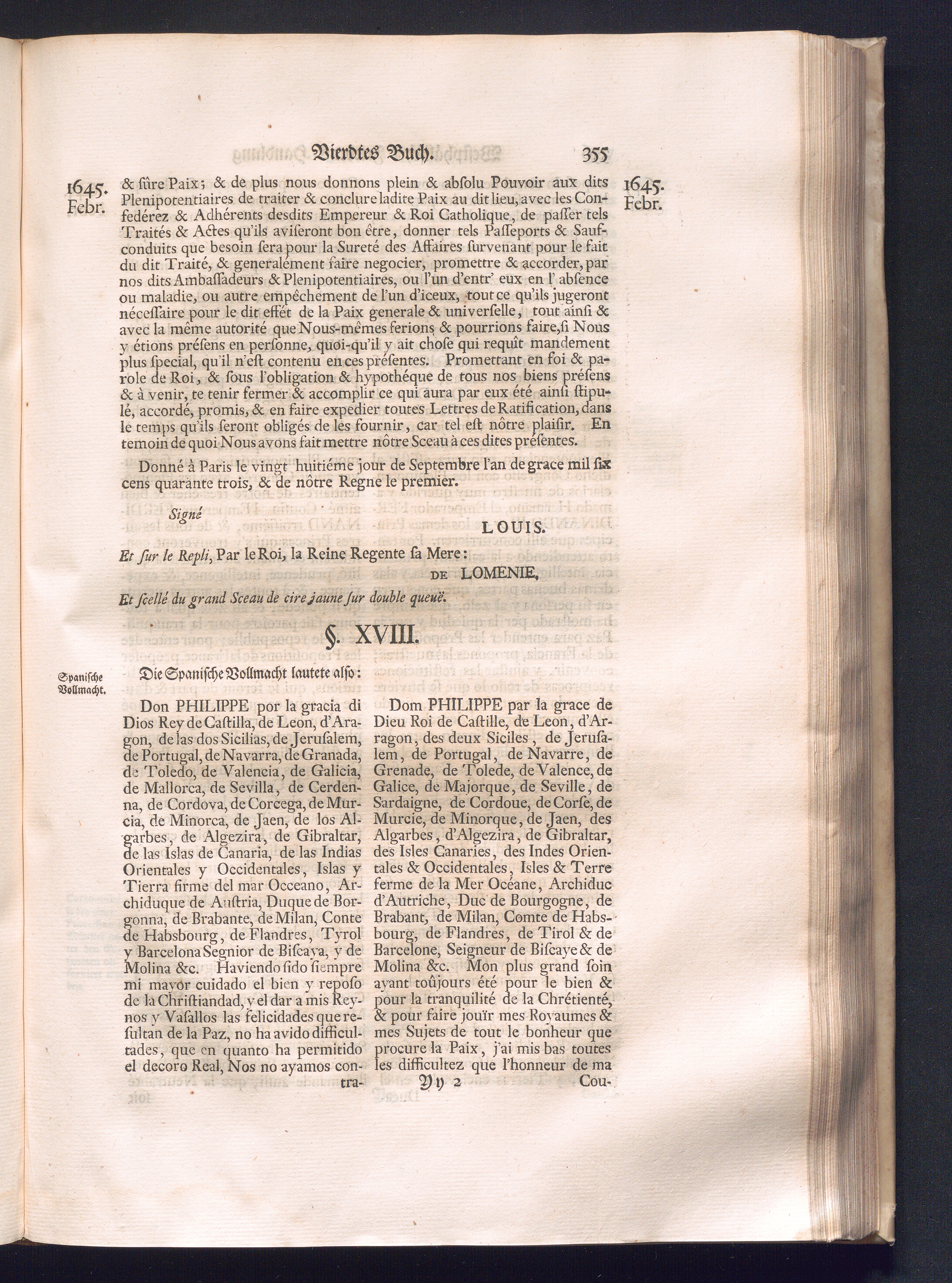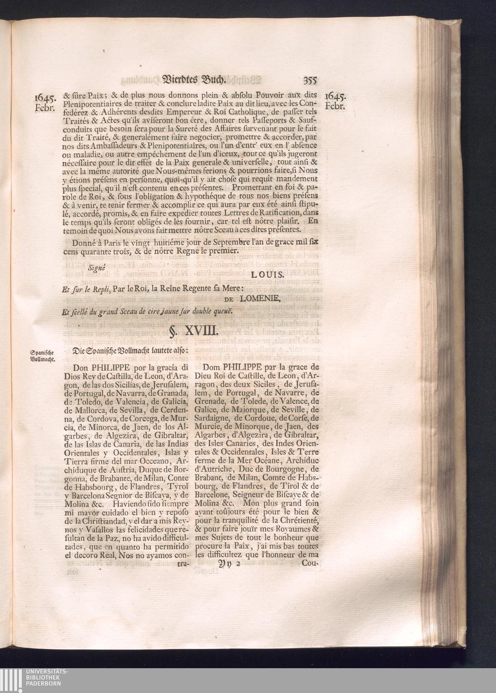 Erster Theil (1734) Worinnen enthalten, was vom Jahr 1643. biß in den Monath October Anno 1645. zwischen Jhro Römisch-Käyserlichen Majestät, dann den Beyden Cronen Franckreich und Schweden, ingleichen des Heiligen Römischen Reichs Chur-Fürsten, Fürsten und Ständen, zu Oßnabrück und Münster gehandelt worden
