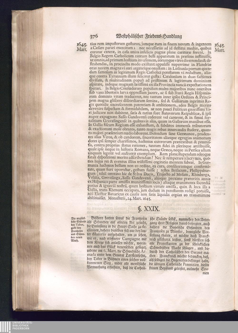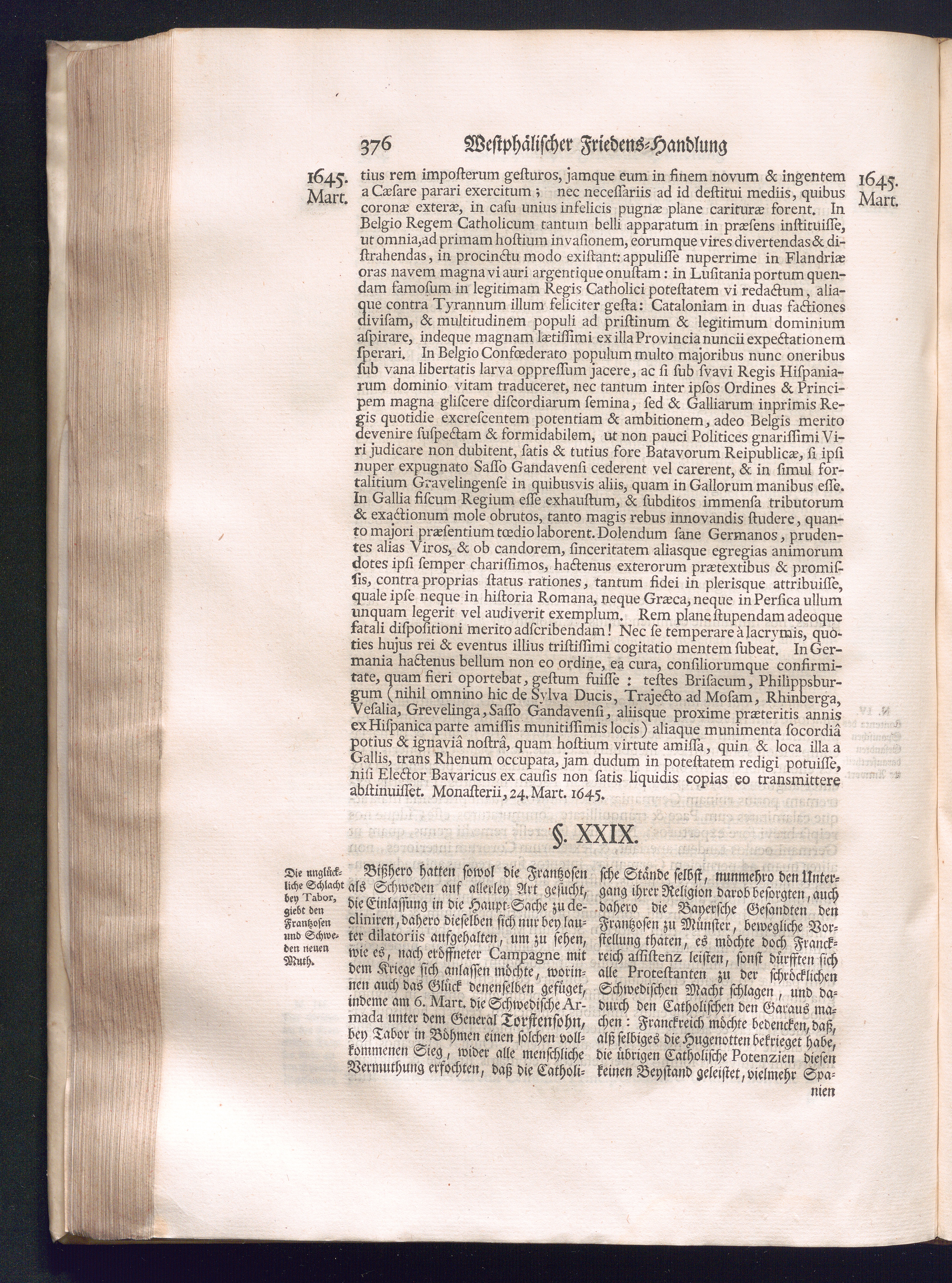 Erster Theil (1734) Worinnen enthalten, was vom Jahr 1643. biß in den Monath October Anno 1645. zwischen Jhro Römisch-Käyserlichen Majestät, dann den Beyden Cronen Franckreich und Schweden, ingleichen des Heiligen Römischen Reichs Chur-Fürsten, Fürsten und Ständen, zu Oßnabrück und Münster gehandelt worden