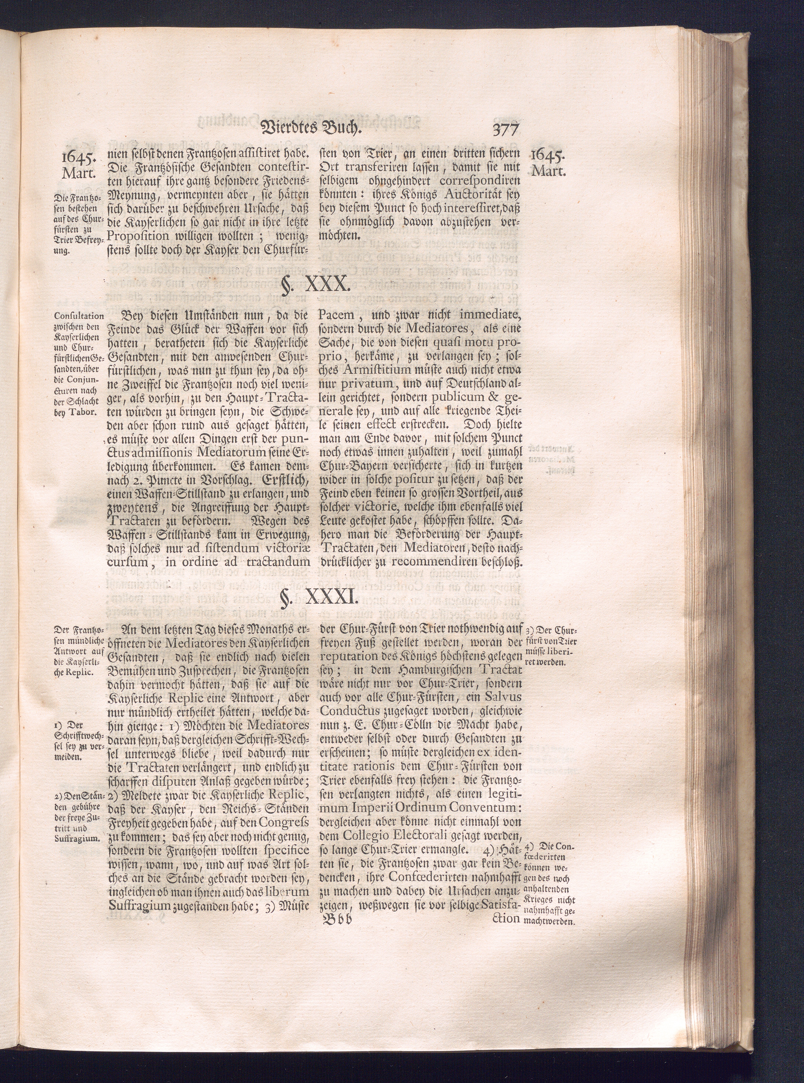 Erster Theil (1734) Worinnen enthalten, was vom Jahr 1643. biß in den Monath October Anno 1645. zwischen Jhro Römisch-Käyserlichen Majestät, dann den Beyden Cronen Franckreich und Schweden, ingleichen des Heiligen Römischen Reichs Chur-Fürsten, Fürsten und Ständen, zu Oßnabrück und Münster gehandelt worden