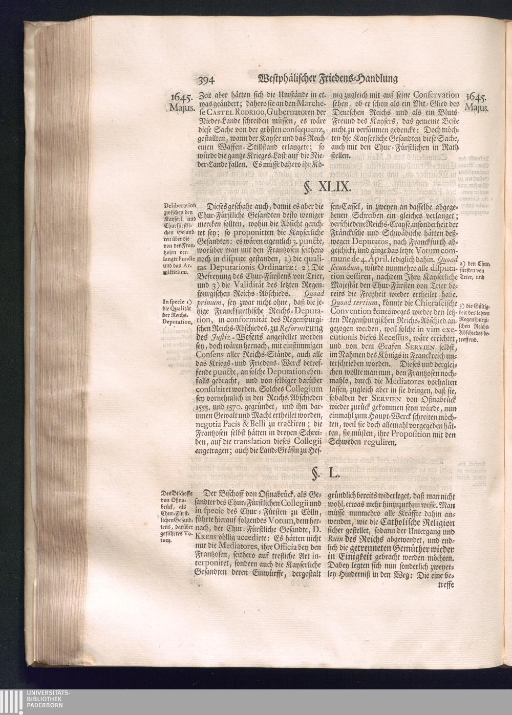 Erster Theil (1734) Worinnen enthalten, was vom Jahr 1643. biß in den Monath October Anno 1645. zwischen Jhro Römisch-Käyserlichen Majestät, dann den Beyden Cronen Franckreich und Schweden, ingleichen des Heiligen Römischen Reichs Chur-Fürsten, Fürsten und Ständen, zu Oßnabrück und Münster gehandelt worden