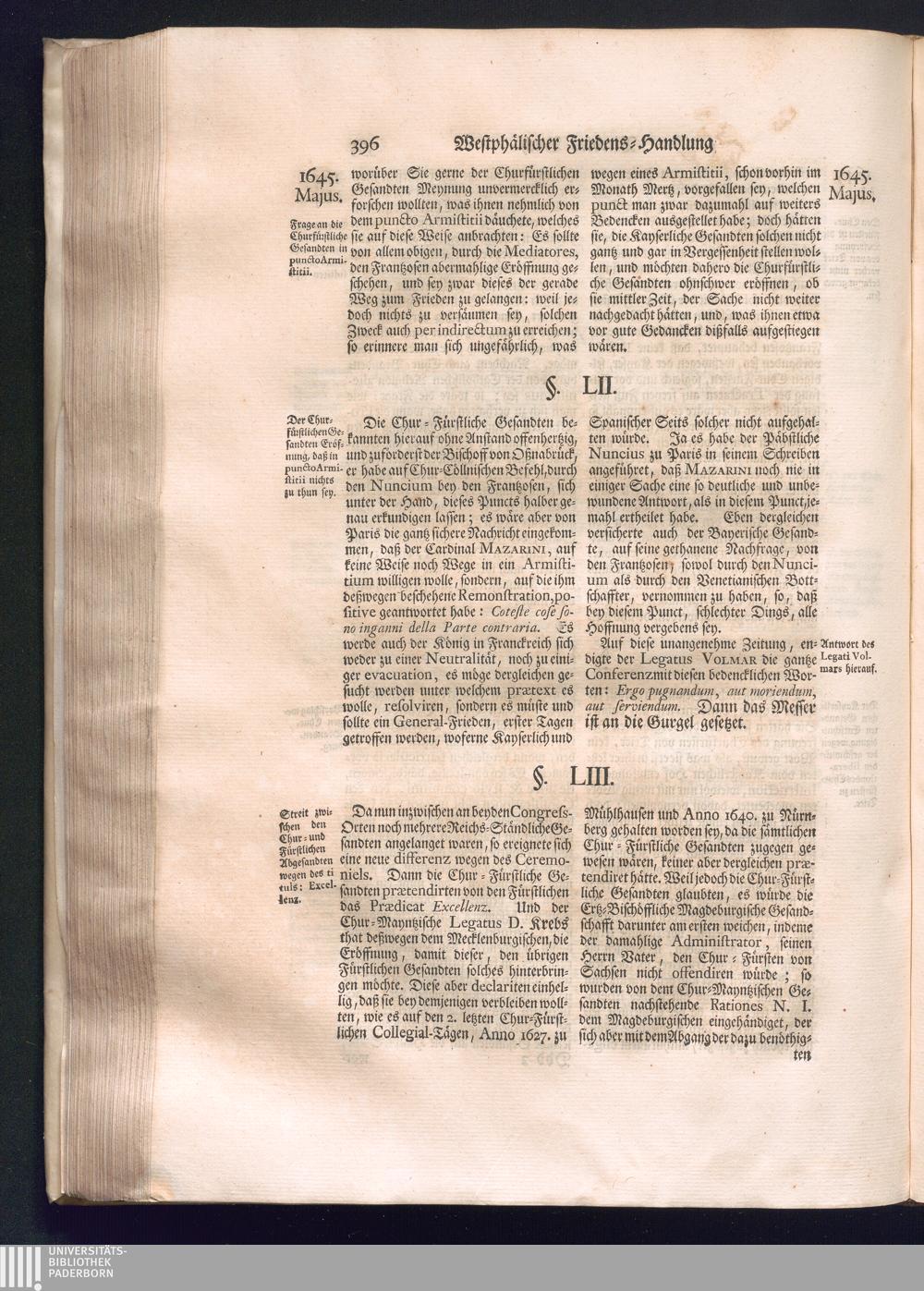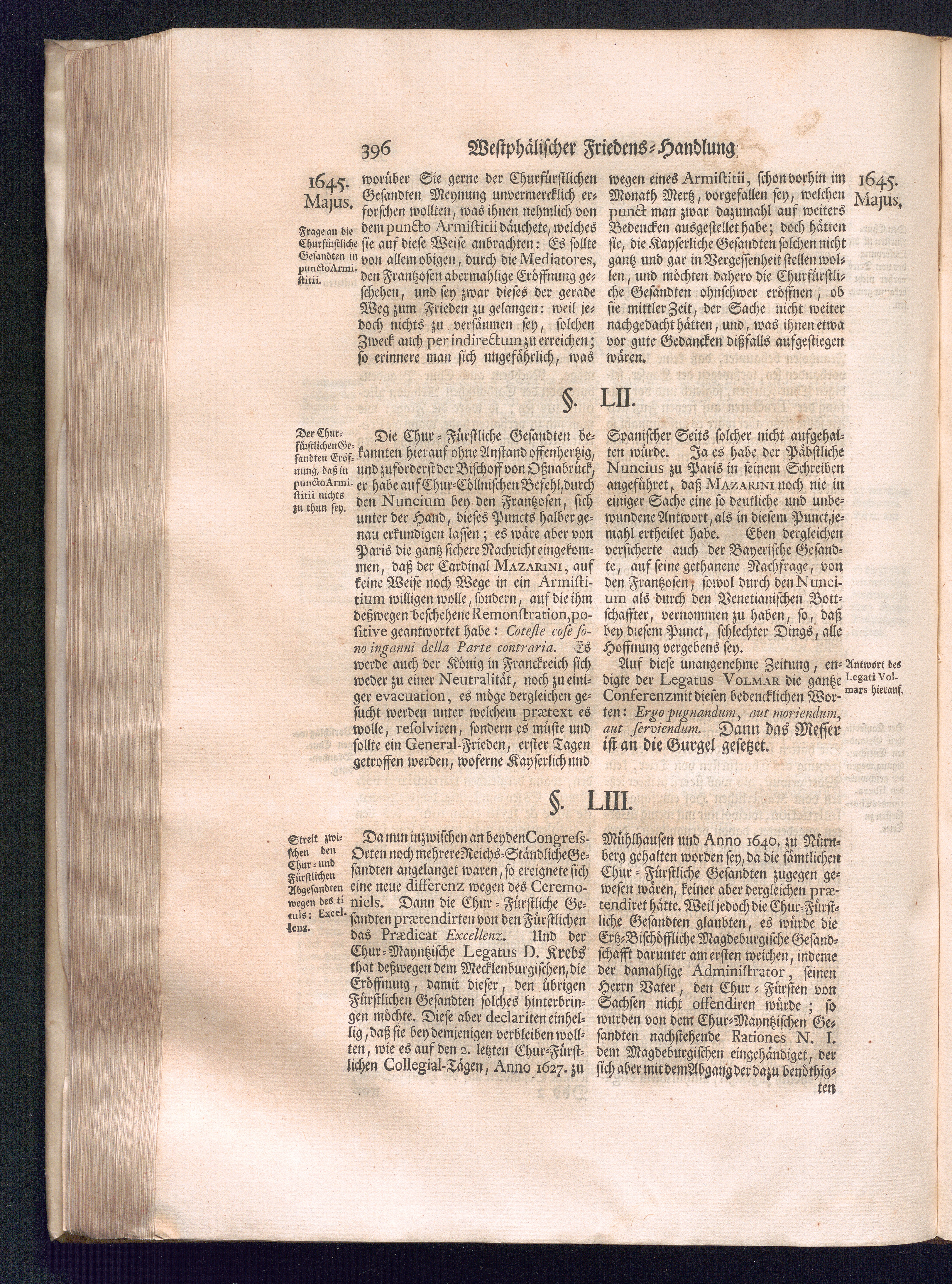 Erster Theil (1734) Worinnen enthalten, was vom Jahr 1643. biß in den Monath October Anno 1645. zwischen Jhro Römisch-Käyserlichen Majestät, dann den Beyden Cronen Franckreich und Schweden, ingleichen des Heiligen Römischen Reichs Chur-Fürsten, Fürsten und Ständen, zu Oßnabrück und Münster gehandelt worden