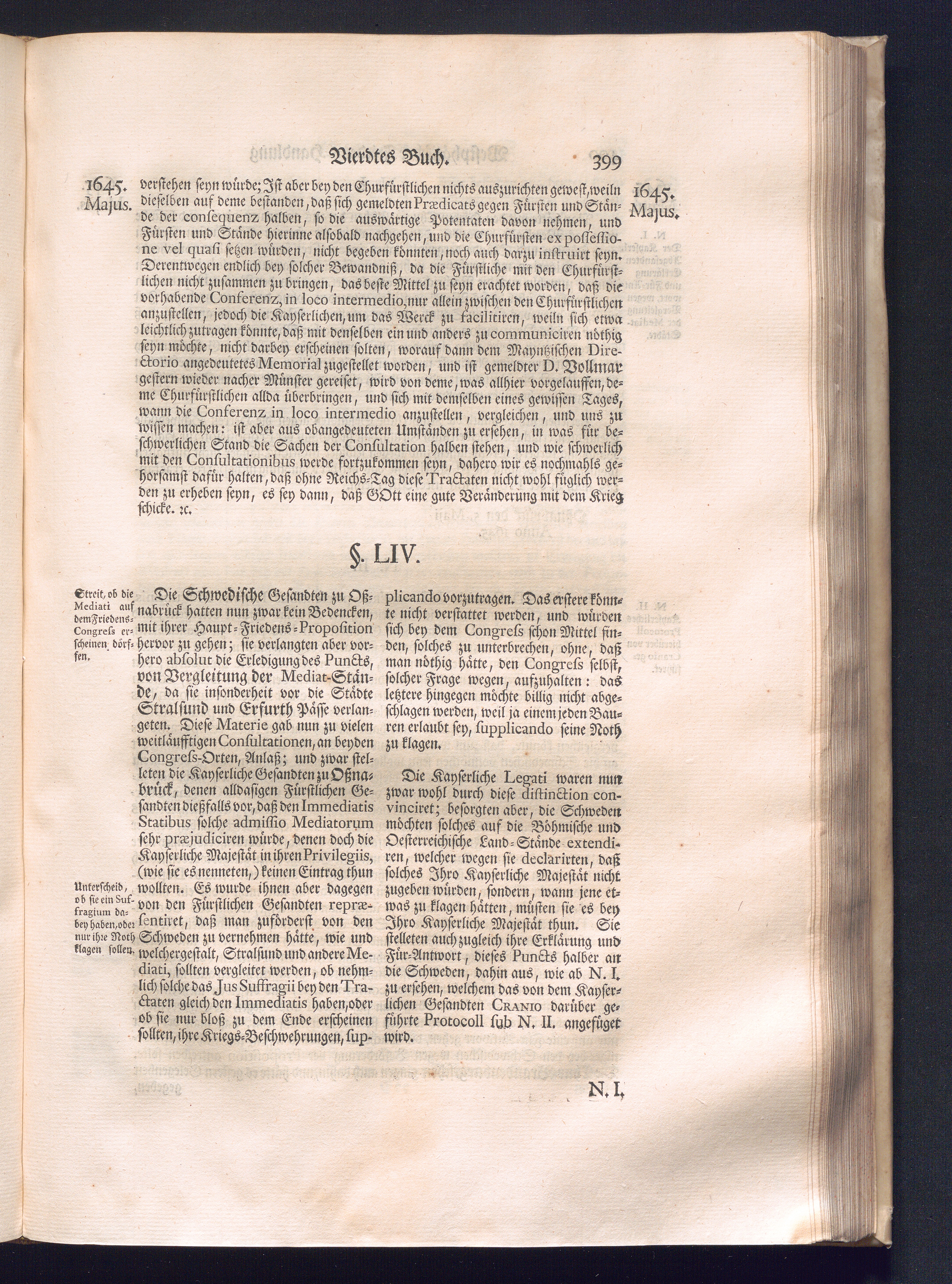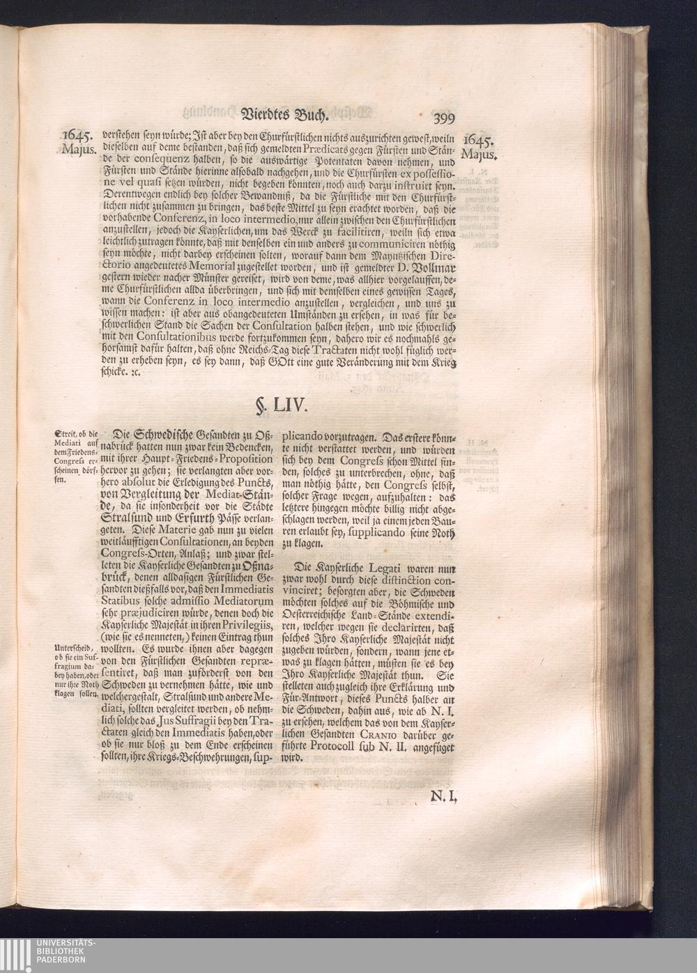 Erster Theil (1734) Worinnen enthalten, was vom Jahr 1643. biß in den Monath October Anno 1645. zwischen Jhro Römisch-Käyserlichen Majestät, dann den Beyden Cronen Franckreich und Schweden, ingleichen des Heiligen Römischen Reichs Chur-Fürsten, Fürsten und Ständen, zu Oßnabrück und Münster gehandelt worden
