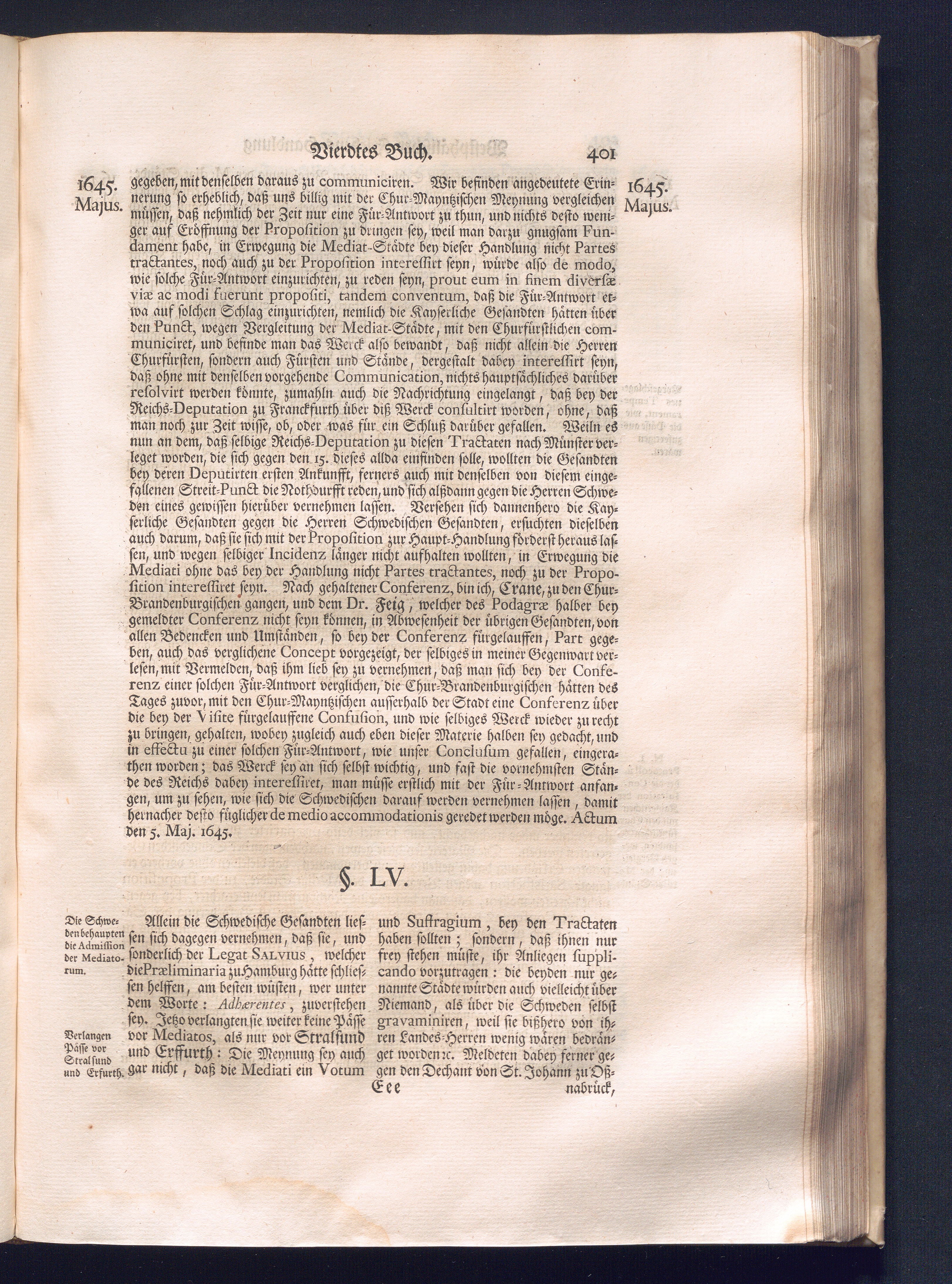 Erster Theil (1734) Worinnen enthalten, was vom Jahr 1643. biß in den Monath October Anno 1645. zwischen Jhro Römisch-Käyserlichen Majestät, dann den Beyden Cronen Franckreich und Schweden, ingleichen des Heiligen Römischen Reichs Chur-Fürsten, Fürsten und Ständen, zu Oßnabrück und Münster gehandelt worden