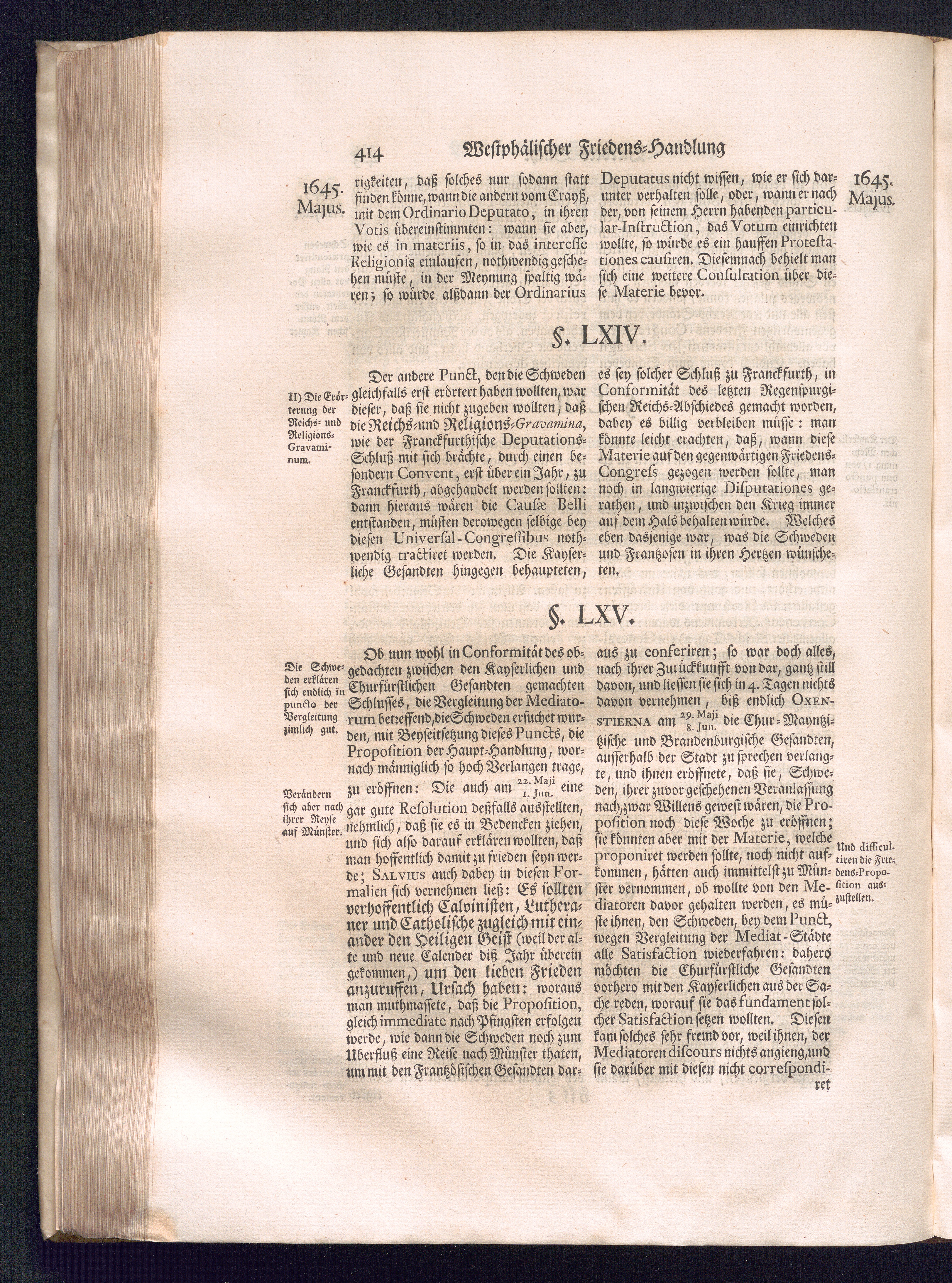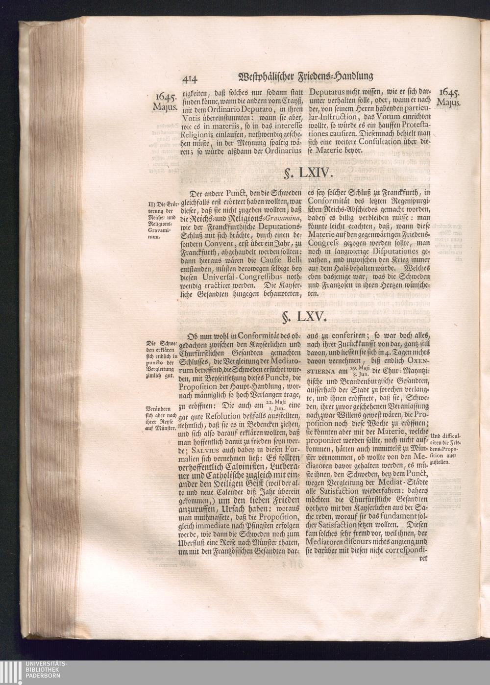 Erster Theil (1734) Worinnen enthalten, was vom Jahr 1643. biß in den Monath October Anno 1645. zwischen Jhro Römisch-Käyserlichen Majestät, dann den Beyden Cronen Franckreich und Schweden, ingleichen des Heiligen Römischen Reichs Chur-Fürsten, Fürsten und Ständen, zu Oßnabrück und Münster gehandelt worden
