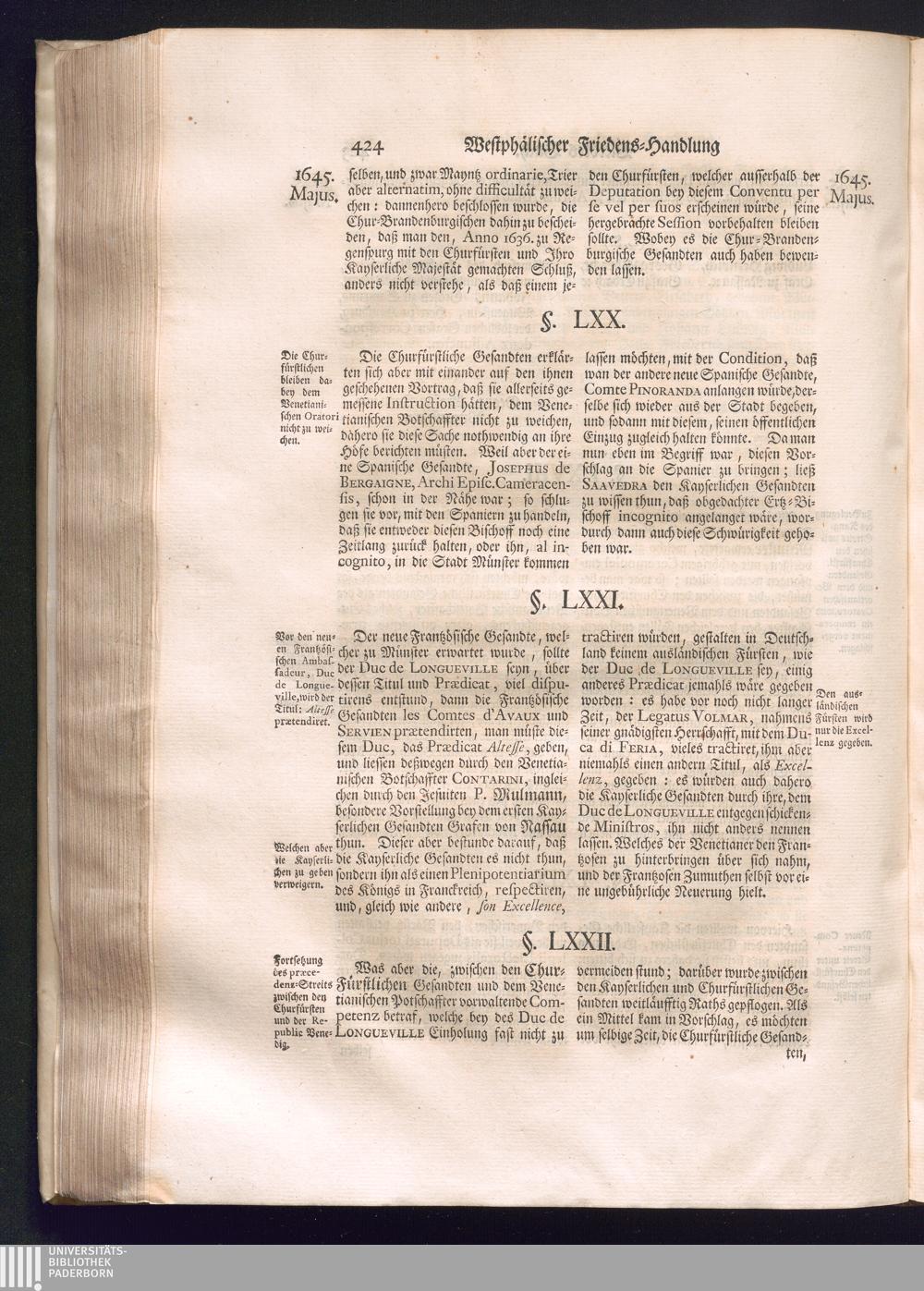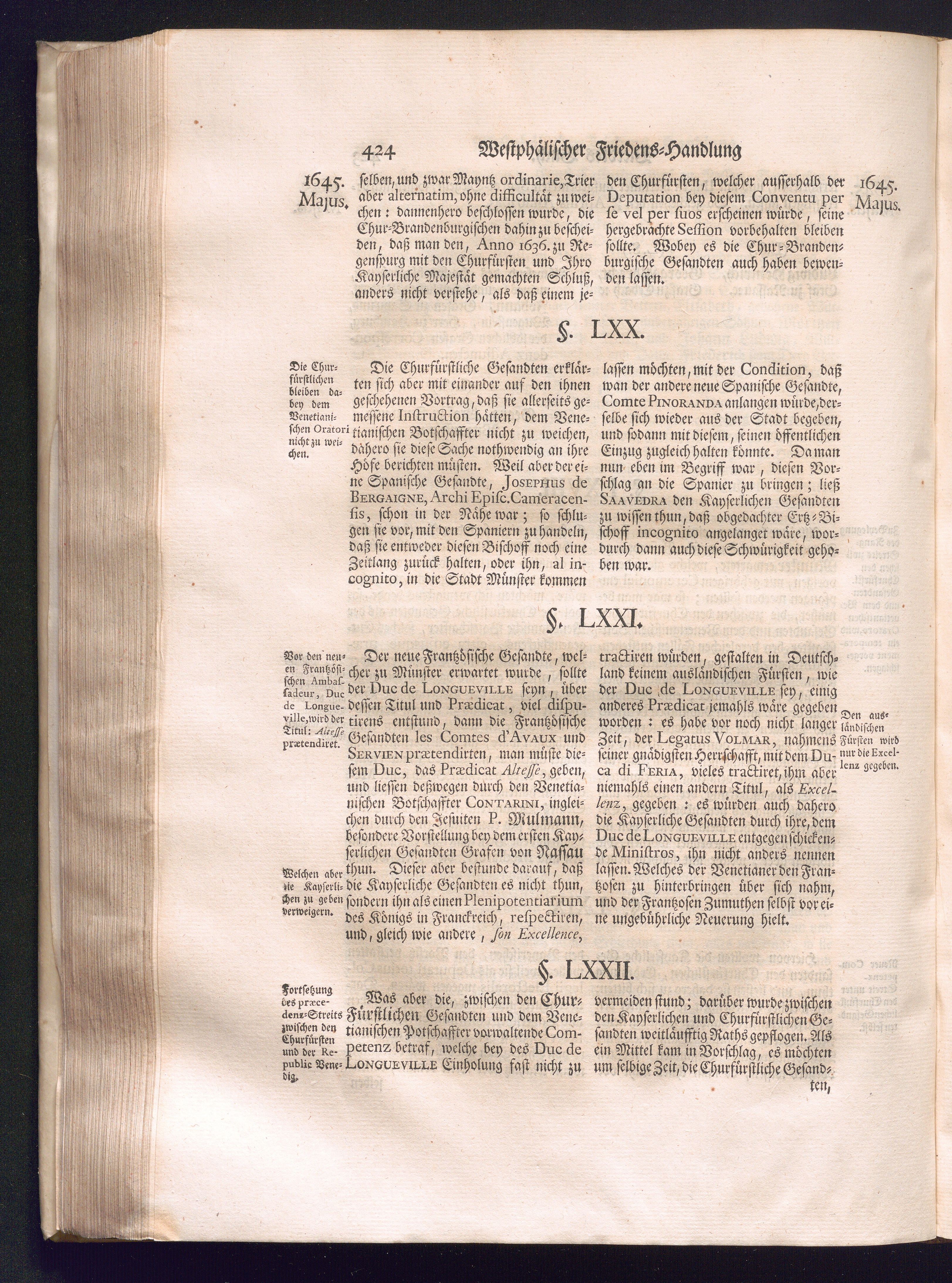 Erster Theil (1734) Worinnen enthalten, was vom Jahr 1643. biß in den Monath October Anno 1645. zwischen Jhro Römisch-Käyserlichen Majestät, dann den Beyden Cronen Franckreich und Schweden, ingleichen des Heiligen Römischen Reichs Chur-Fürsten, Fürsten und Ständen, zu Oßnabrück und Münster gehandelt worden
