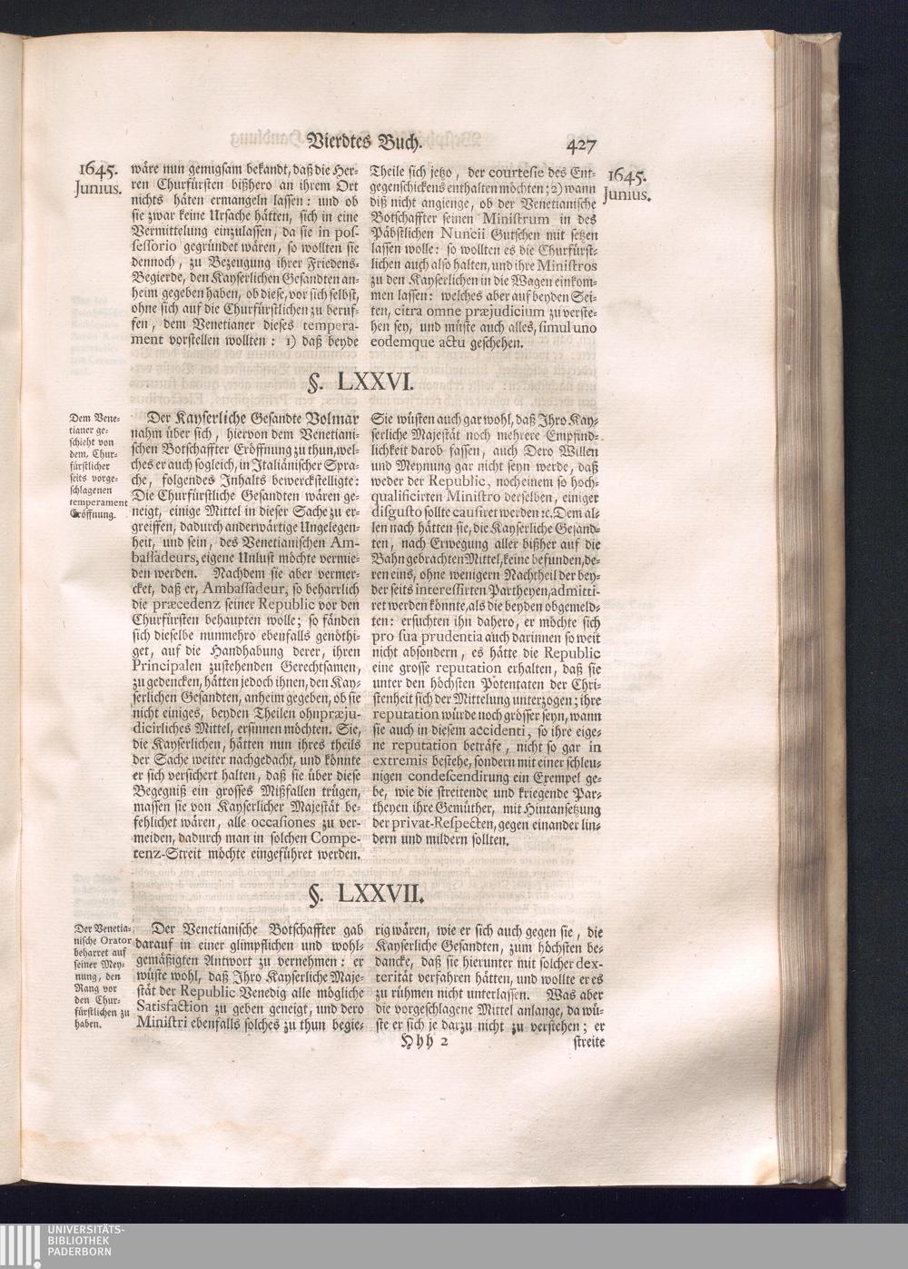 Erster Theil (1734) Worinnen enthalten, was vom Jahr 1643. biß in den Monath October Anno 1645. zwischen Jhro Römisch-Käyserlichen Majestät, dann den Beyden Cronen Franckreich und Schweden, ingleichen des Heiligen Römischen Reichs Chur-Fürsten, Fürsten und Ständen, zu Oßnabrück und Münster gehandelt worden