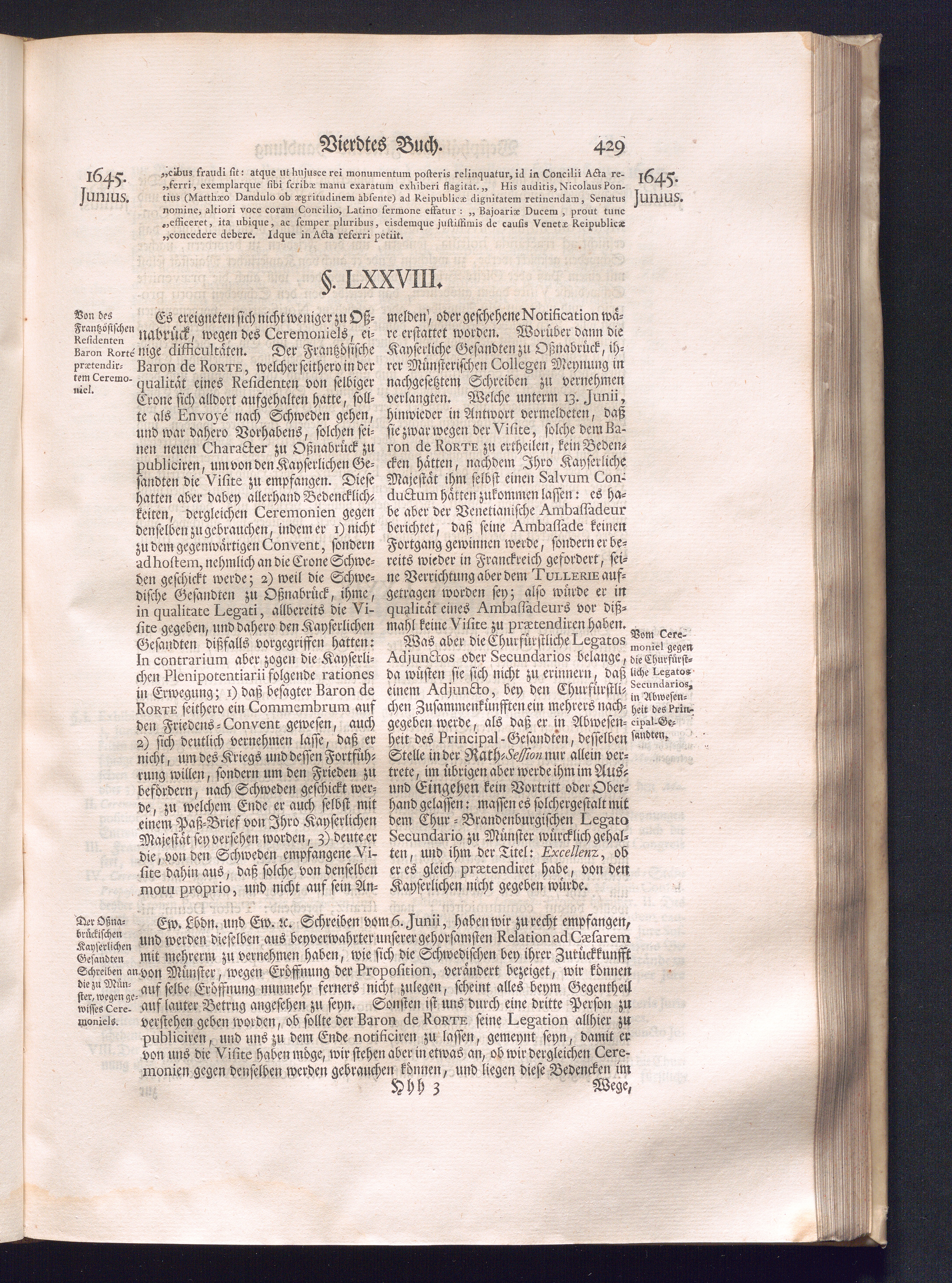 Erster Theil (1734) Worinnen enthalten, was vom Jahr 1643. biß in den Monath October Anno 1645. zwischen Jhro Römisch-Käyserlichen Majestät, dann den Beyden Cronen Franckreich und Schweden, ingleichen des Heiligen Römischen Reichs Chur-Fürsten, Fürsten und Ständen, zu Oßnabrück und Münster gehandelt worden