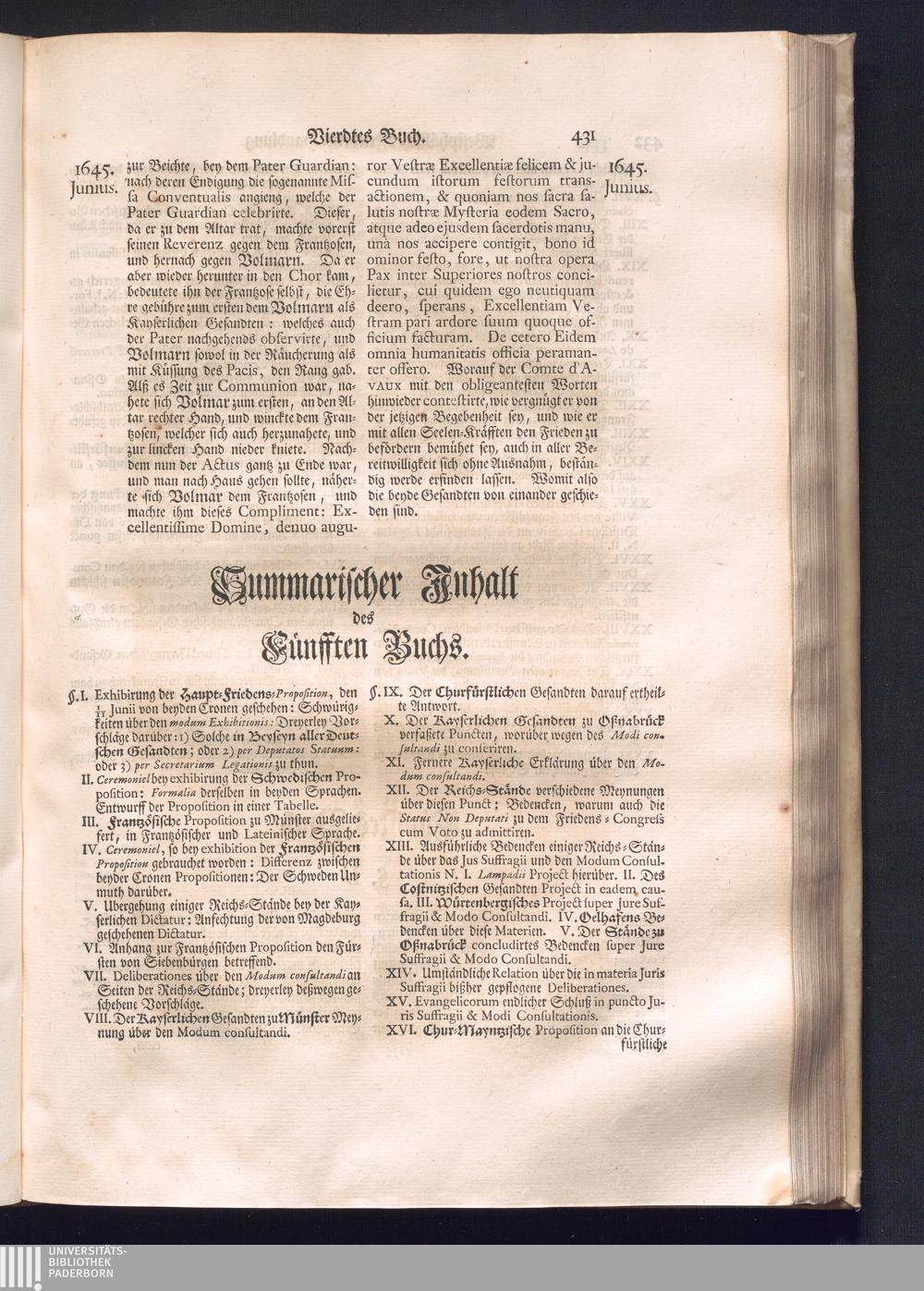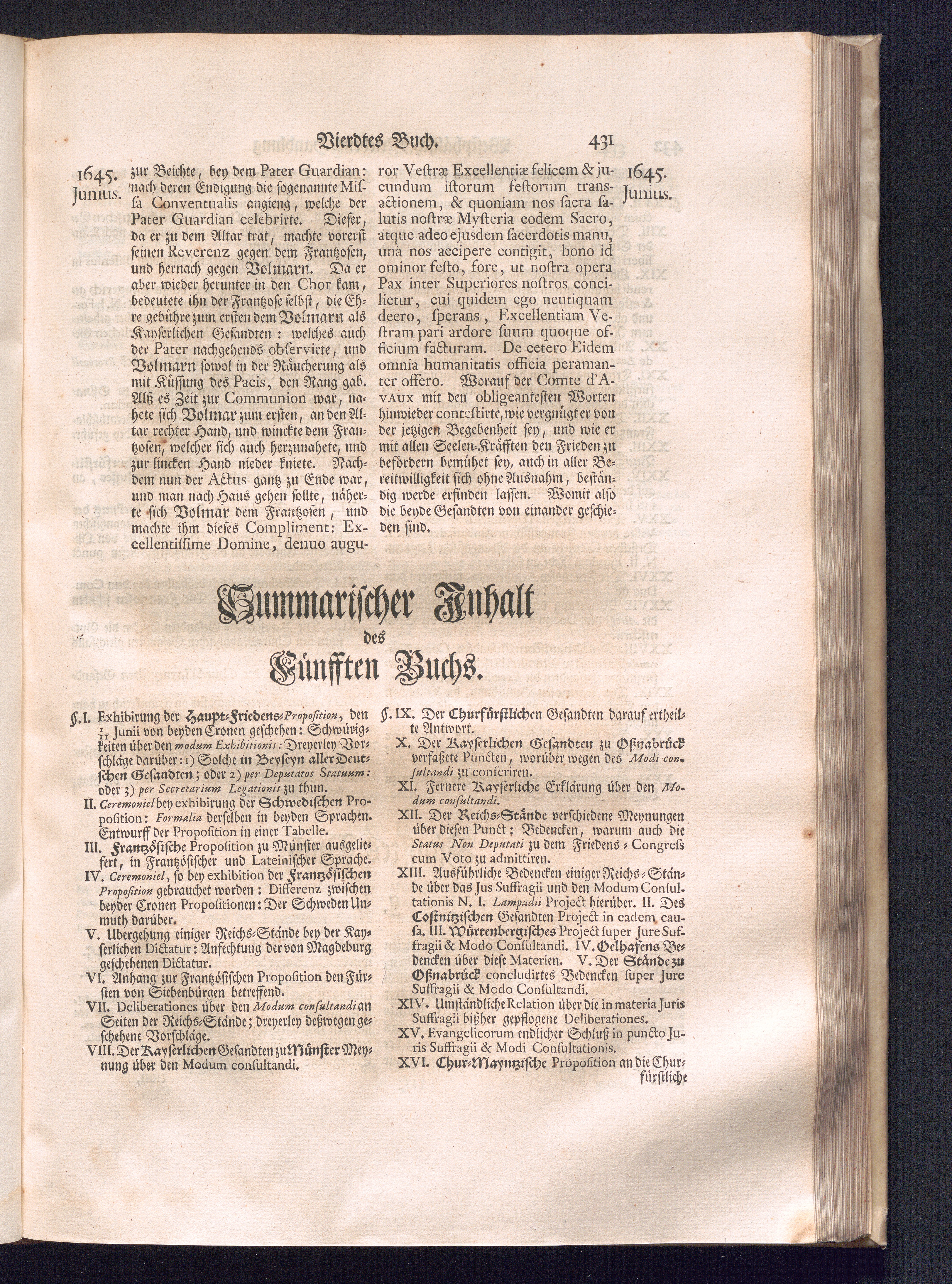 Erster Theil (1734) Worinnen enthalten, was vom Jahr 1643. biß in den Monath October Anno 1645. zwischen Jhro Römisch-Käyserlichen Majestät, dann den Beyden Cronen Franckreich und Schweden, ingleichen des Heiligen Römischen Reichs Chur-Fürsten, Fürsten und Ständen, zu Oßnabrück und Münster gehandelt worden