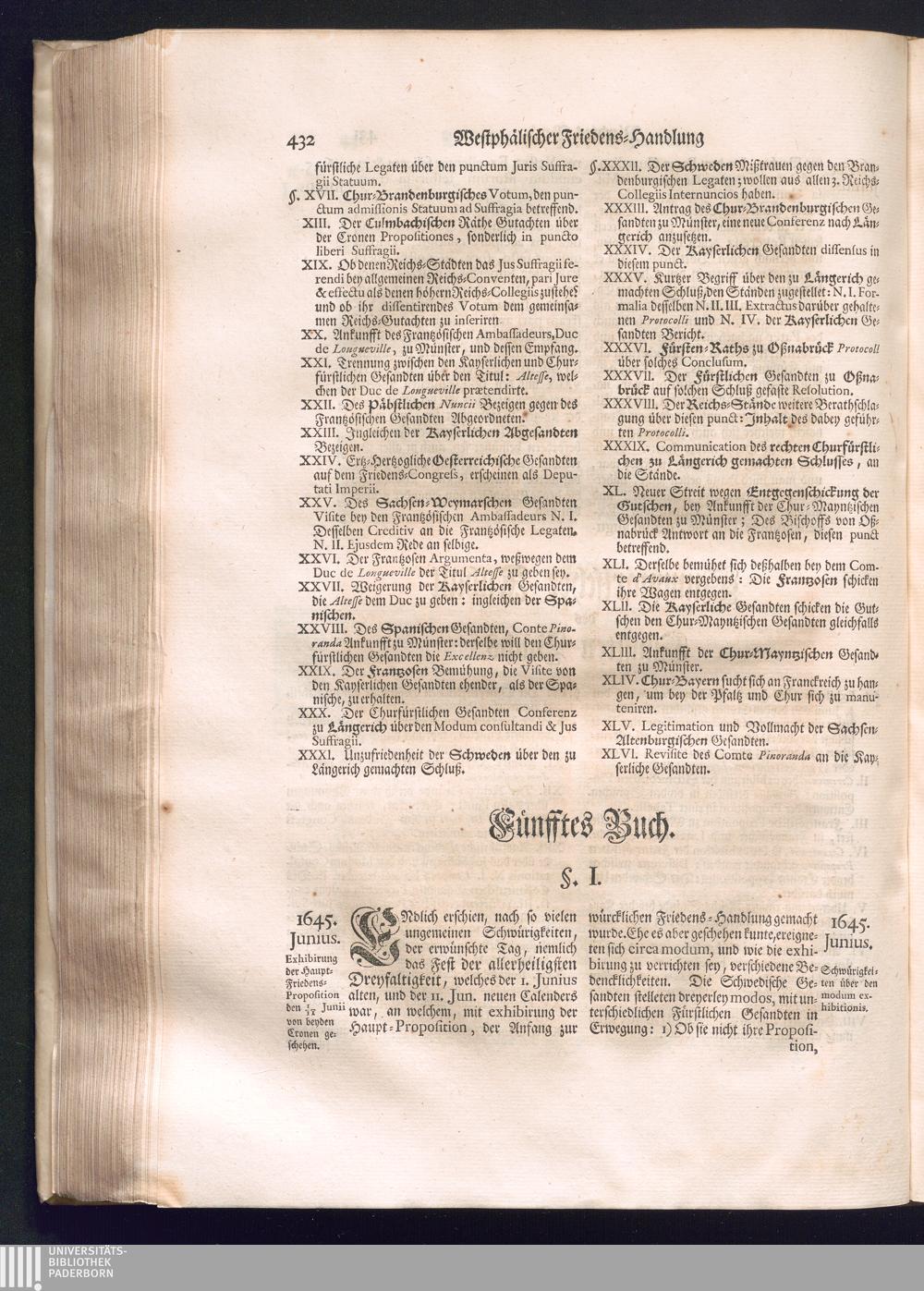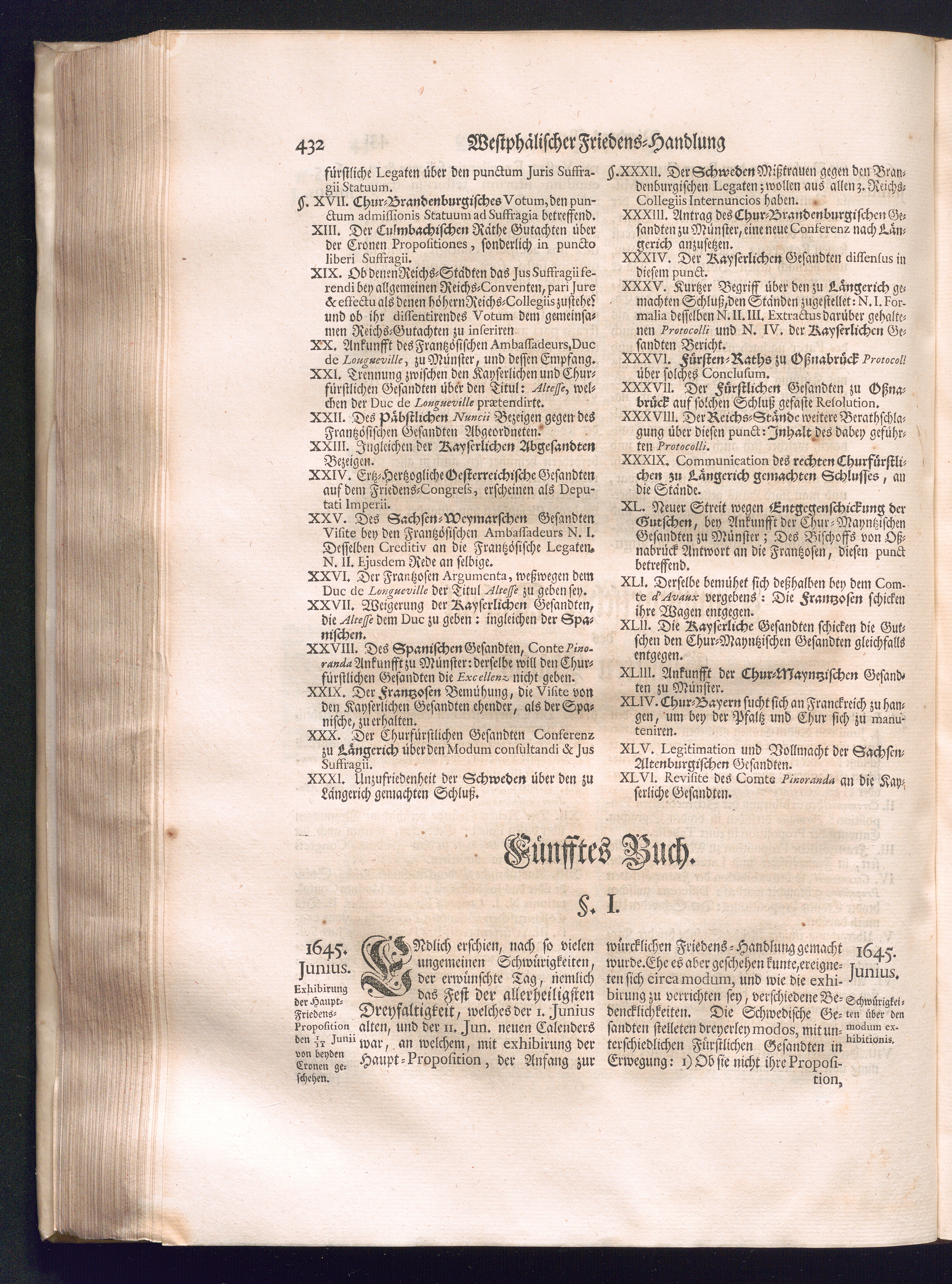 Erster Theil (1734) Worinnen enthalten, was vom Jahr 1643. biß in den Monath October Anno 1645. zwischen Jhro Römisch-Käyserlichen Majestät, dann den Beyden Cronen Franckreich und Schweden, ingleichen des Heiligen Römischen Reichs Chur-Fürsten, Fürsten und Ständen, zu Oßnabrück und Münster gehandelt worden