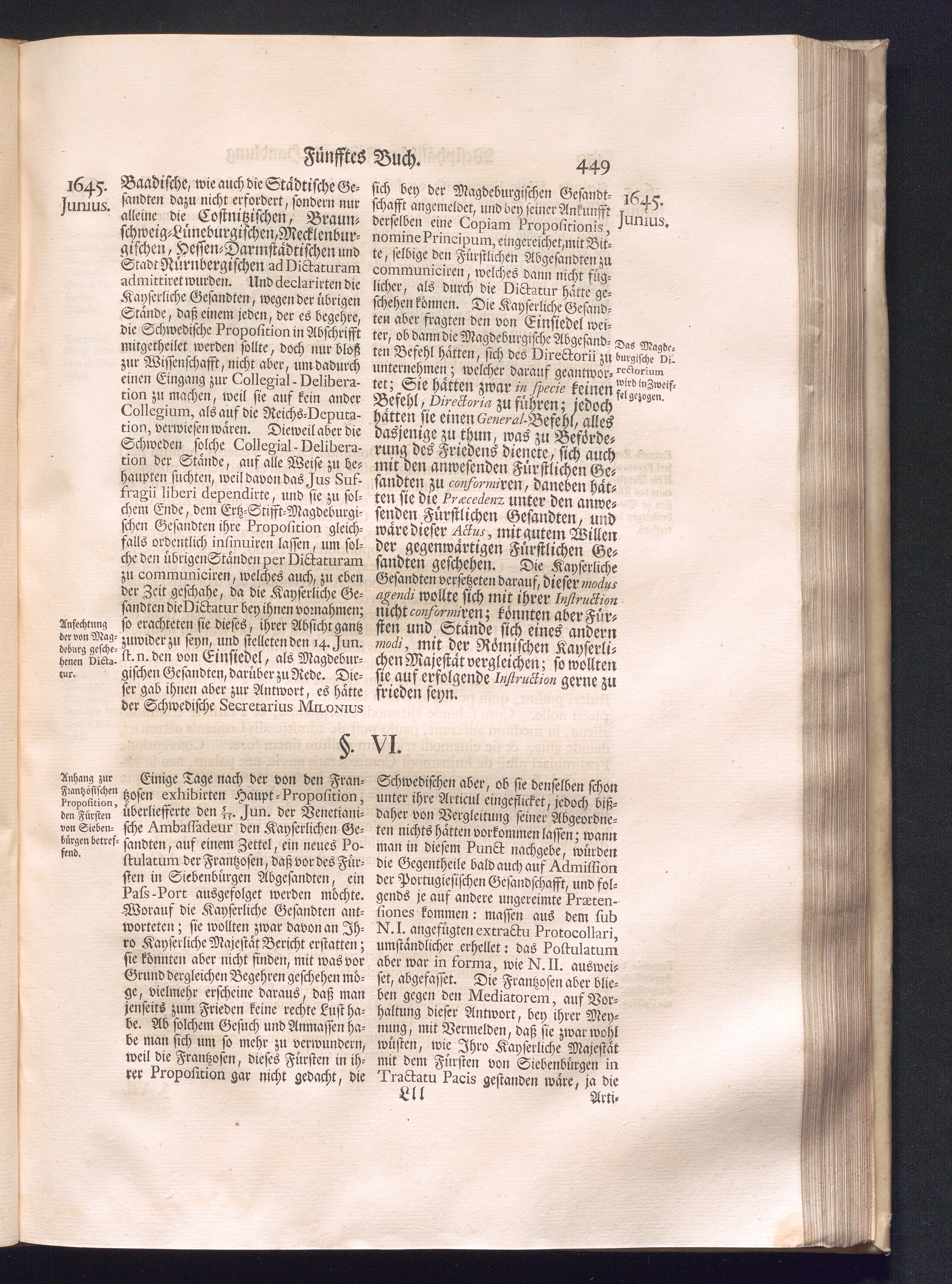 Erster Theil (1734) Worinnen enthalten, was vom Jahr 1643. biß in den Monath October Anno 1645. zwischen Jhro Römisch-Käyserlichen Majestät, dann den Beyden Cronen Franckreich und Schweden, ingleichen des Heiligen Römischen Reichs Chur-Fürsten, Fürsten und Ständen, zu Oßnabrück und Münster gehandelt worden