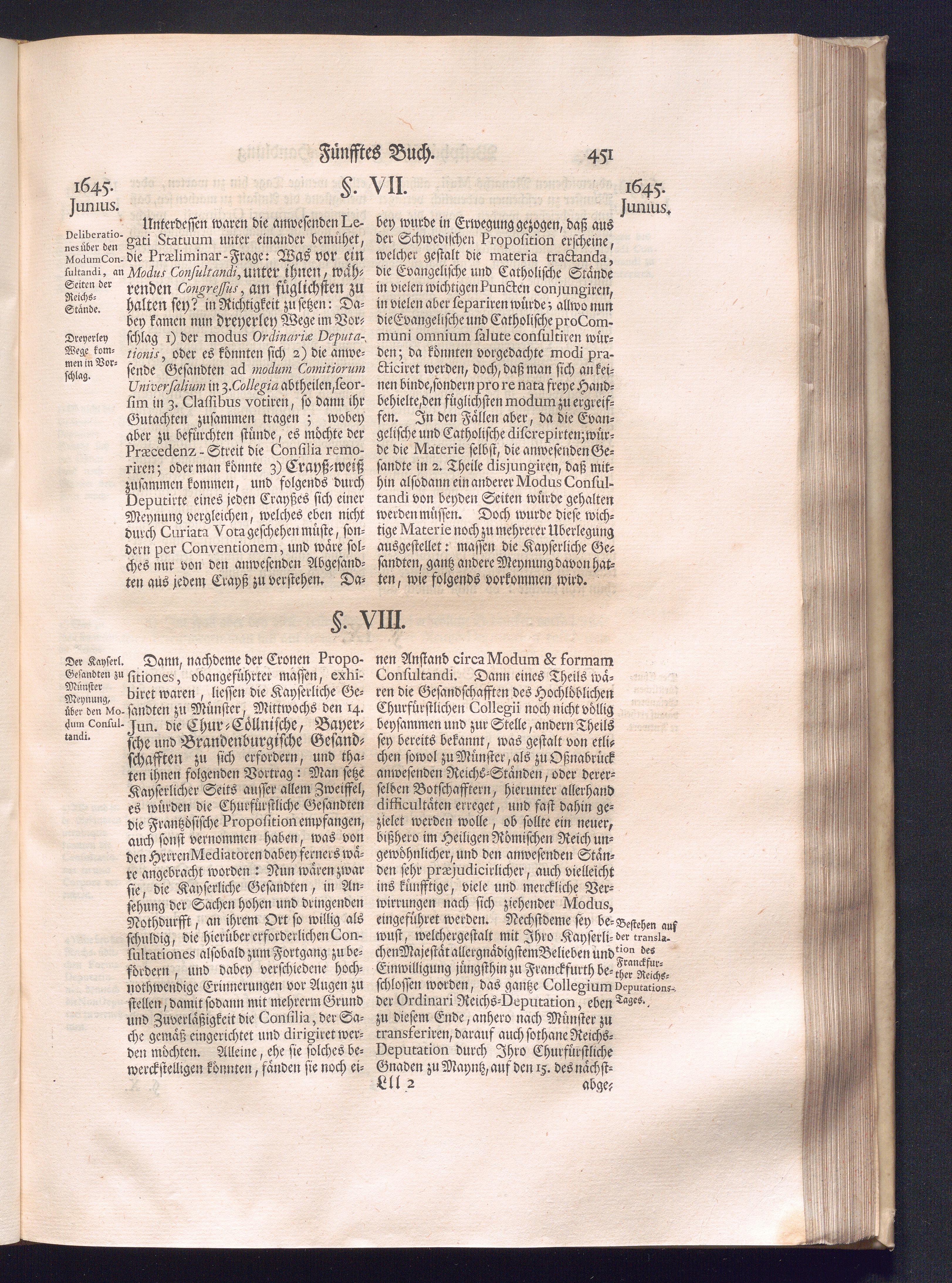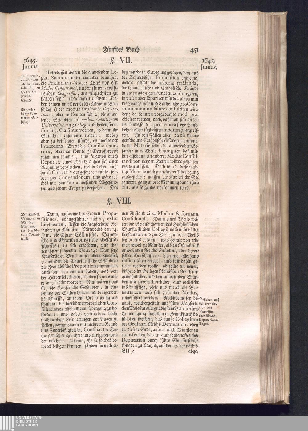 Erster Theil (1734) Worinnen enthalten, was vom Jahr 1643. biß in den Monath October Anno 1645. zwischen Jhro Römisch-Käyserlichen Majestät, dann den Beyden Cronen Franckreich und Schweden, ingleichen des Heiligen Römischen Reichs Chur-Fürsten, Fürsten und Ständen, zu Oßnabrück und Münster gehandelt worden