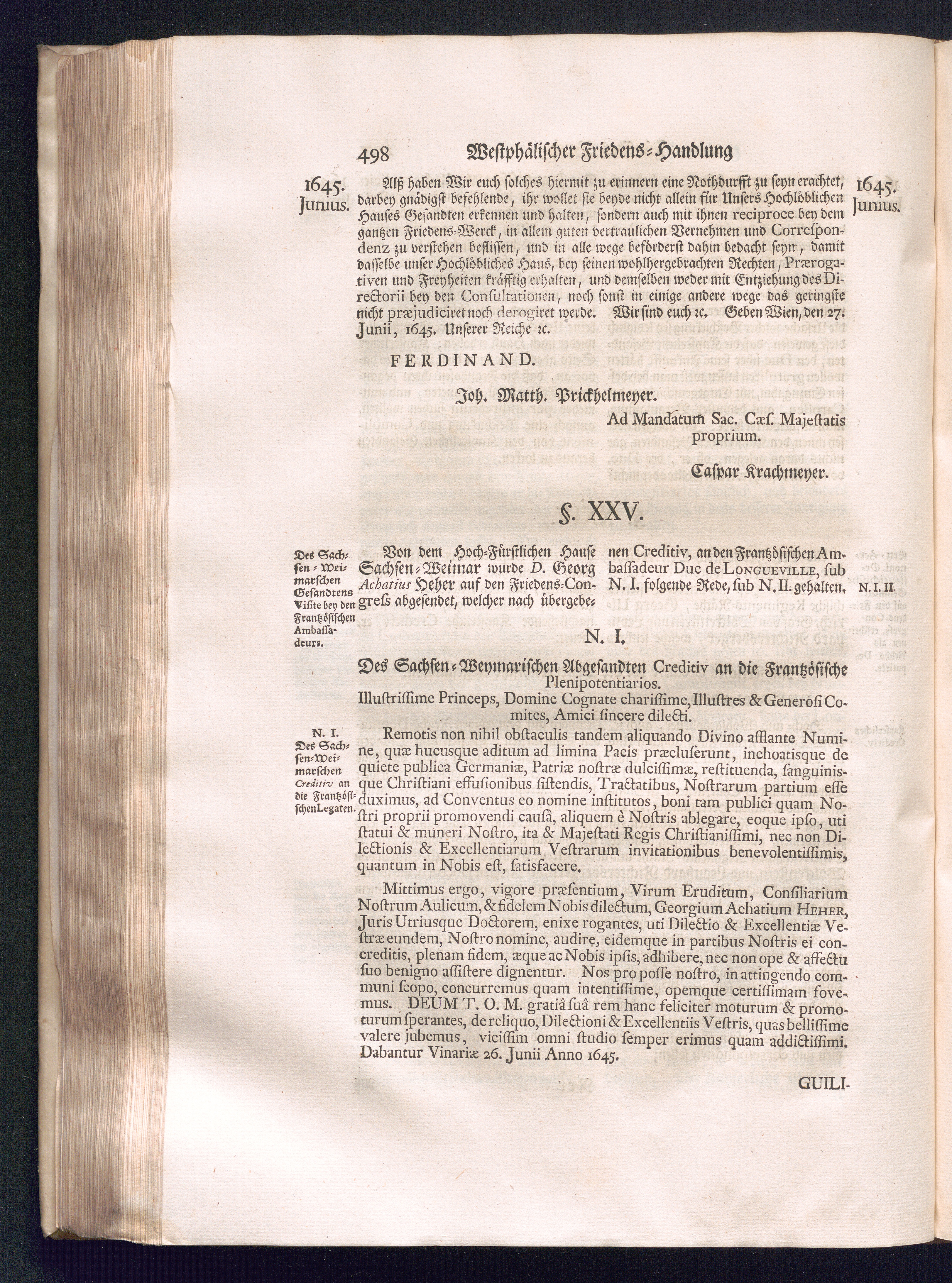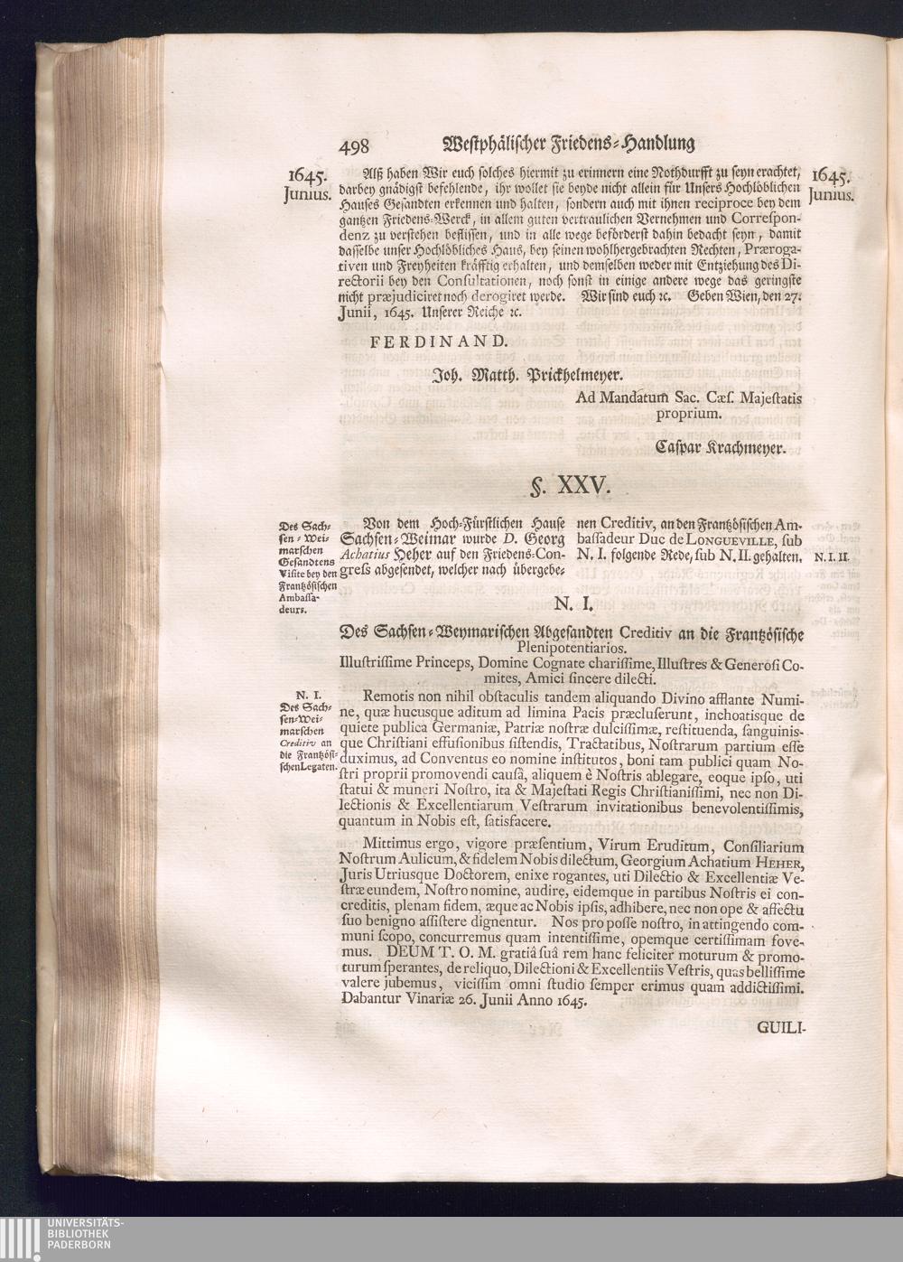 Erster Theil (1734) Worinnen enthalten, was vom Jahr 1643. biß in den Monath October Anno 1645. zwischen Jhro Römisch-Käyserlichen Majestät, dann den Beyden Cronen Franckreich und Schweden, ingleichen des Heiligen Römischen Reichs Chur-Fürsten, Fürsten und Ständen, zu Oßnabrück und Münster gehandelt worden