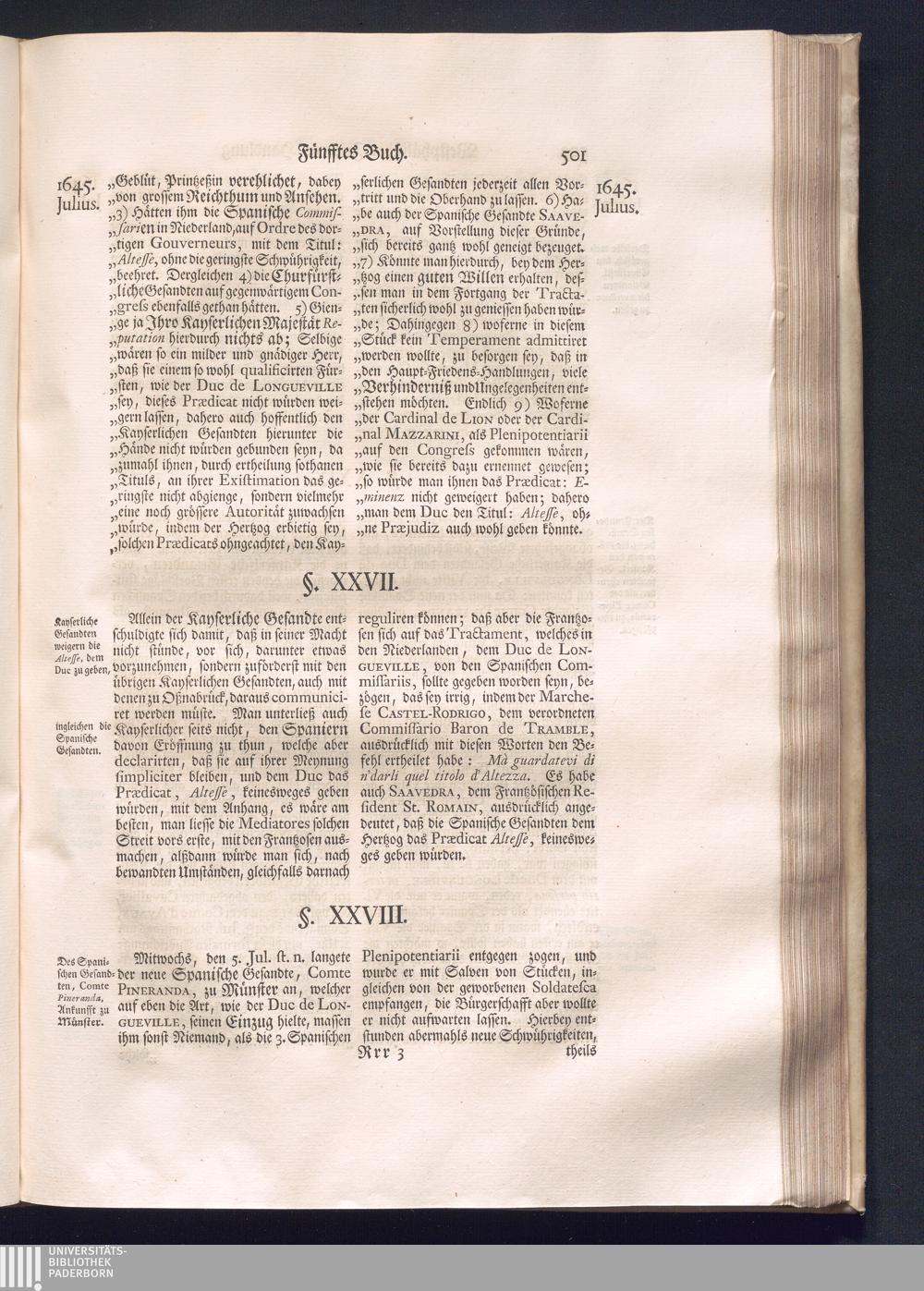 Erster Theil (1734) Worinnen enthalten, was vom Jahr 1643. biß in den Monath October Anno 1645. zwischen Jhro Römisch-Käyserlichen Majestät, dann den Beyden Cronen Franckreich und Schweden, ingleichen des Heiligen Römischen Reichs Chur-Fürsten, Fürsten und Ständen, zu Oßnabrück und Münster gehandelt worden