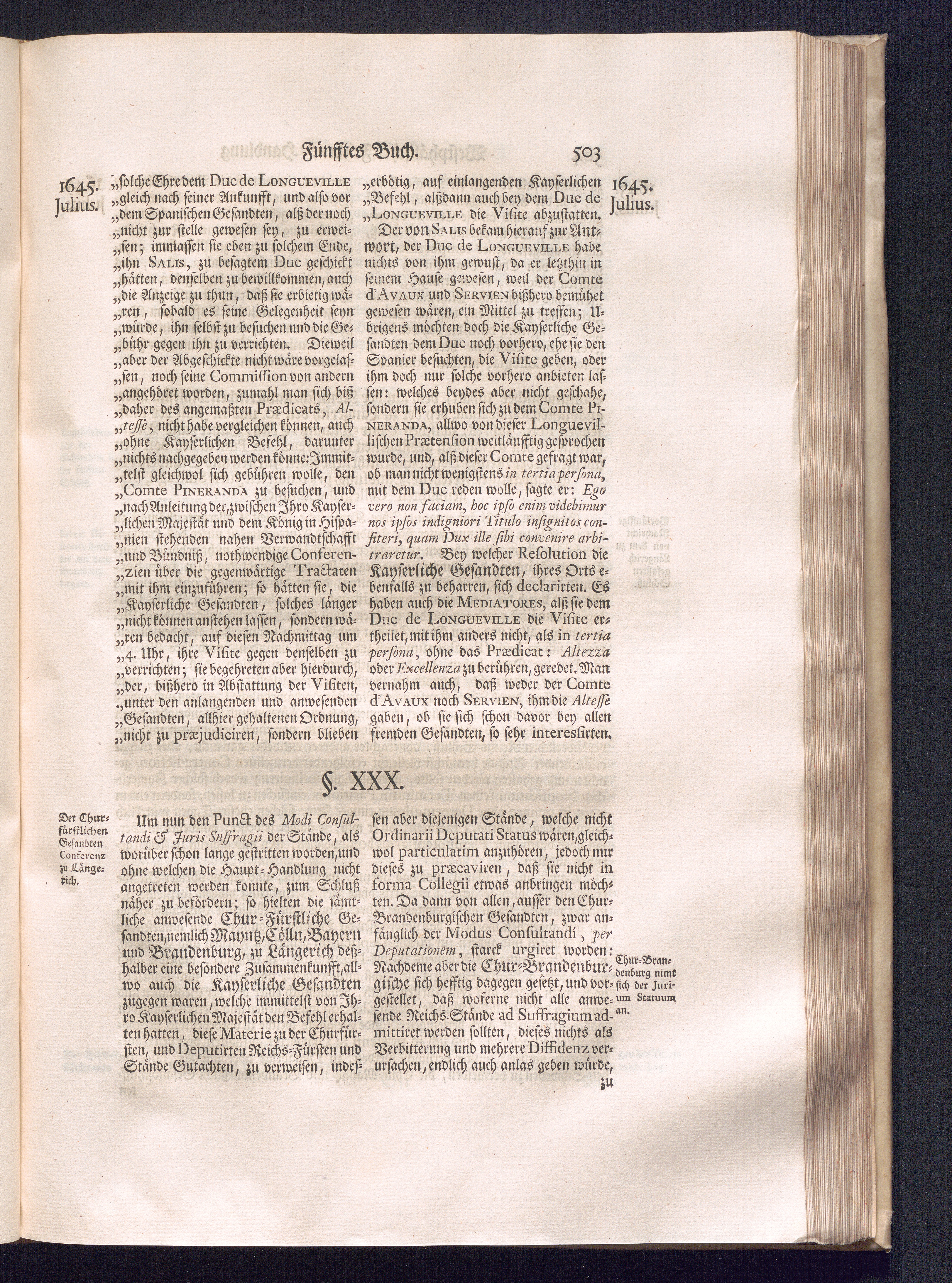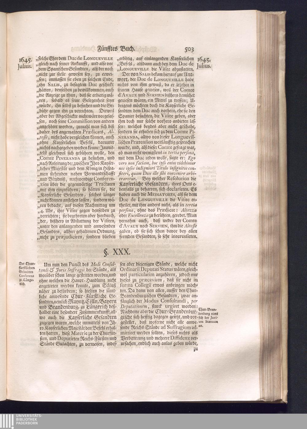 Erster Theil (1734) Worinnen enthalten, was vom Jahr 1643. biß in den Monath October Anno 1645. zwischen Jhro Römisch-Käyserlichen Majestät, dann den Beyden Cronen Franckreich und Schweden, ingleichen des Heiligen Römischen Reichs Chur-Fürsten, Fürsten und Ständen, zu Oßnabrück und Münster gehandelt worden