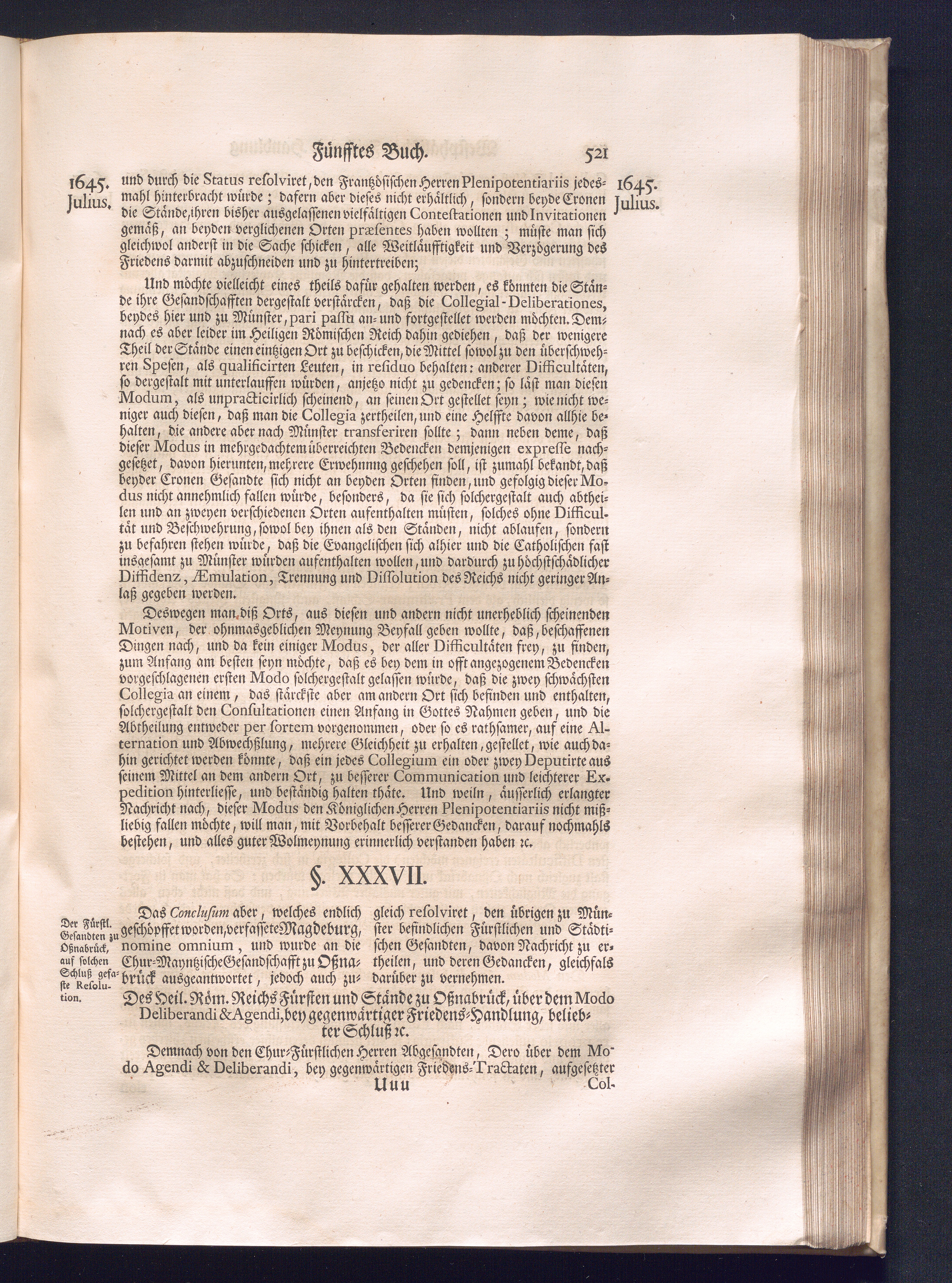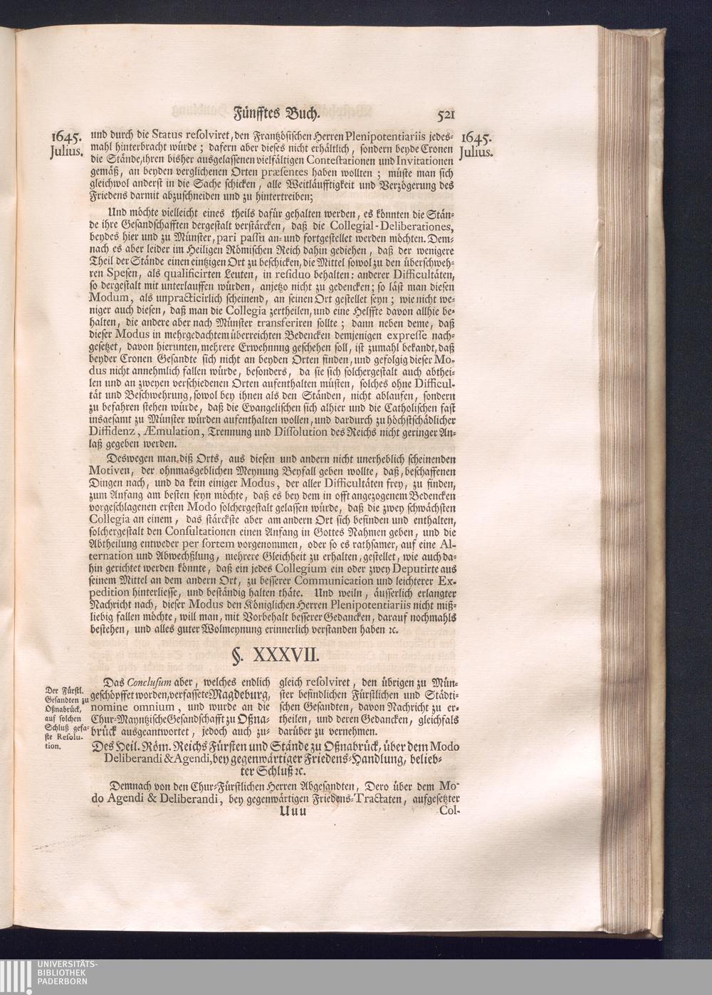 Erster Theil (1734) Worinnen enthalten, was vom Jahr 1643. biß in den Monath October Anno 1645. zwischen Jhro Römisch-Käyserlichen Majestät, dann den Beyden Cronen Franckreich und Schweden, ingleichen des Heiligen Römischen Reichs Chur-Fürsten, Fürsten und Ständen, zu Oßnabrück und Münster gehandelt worden