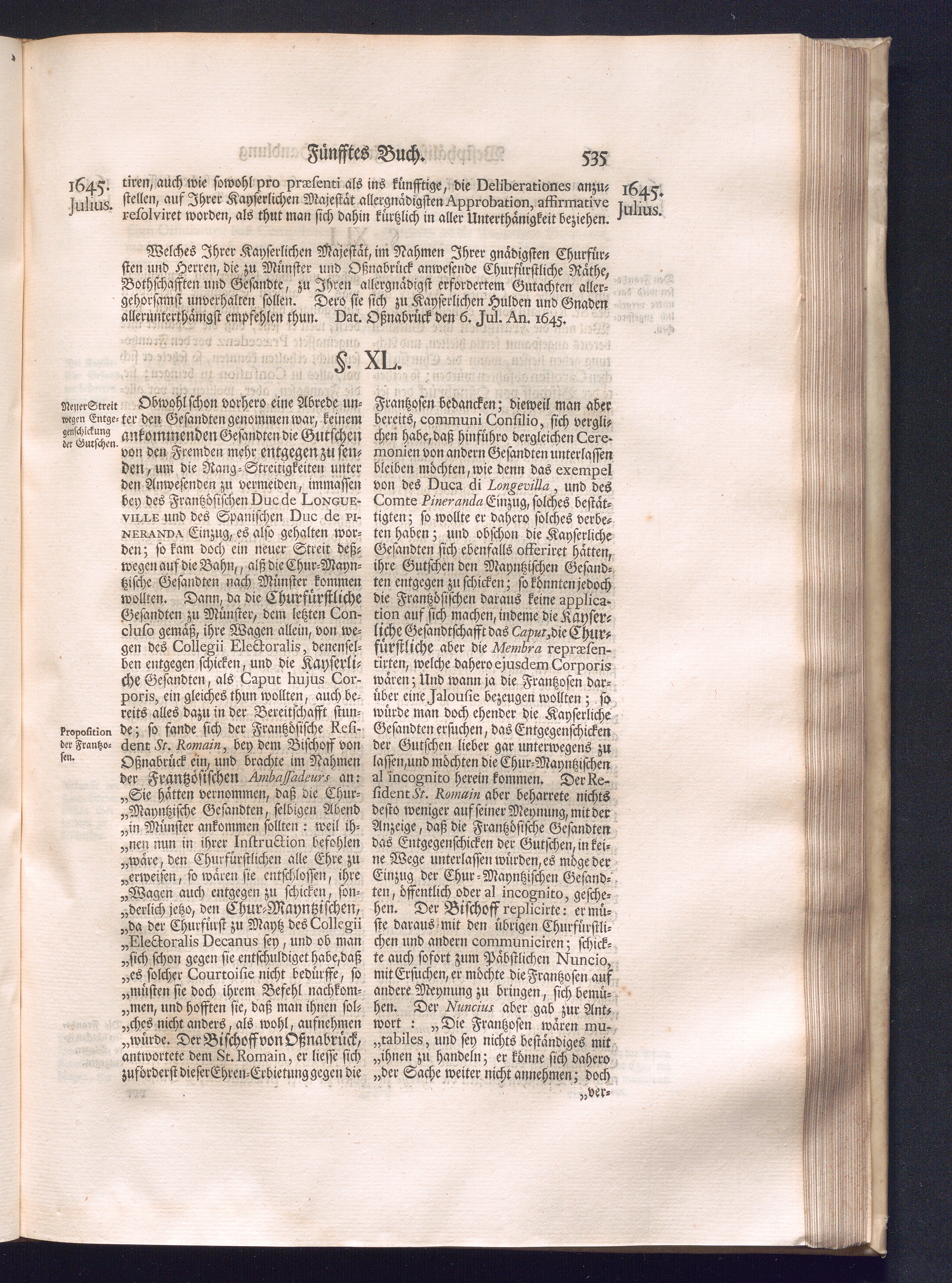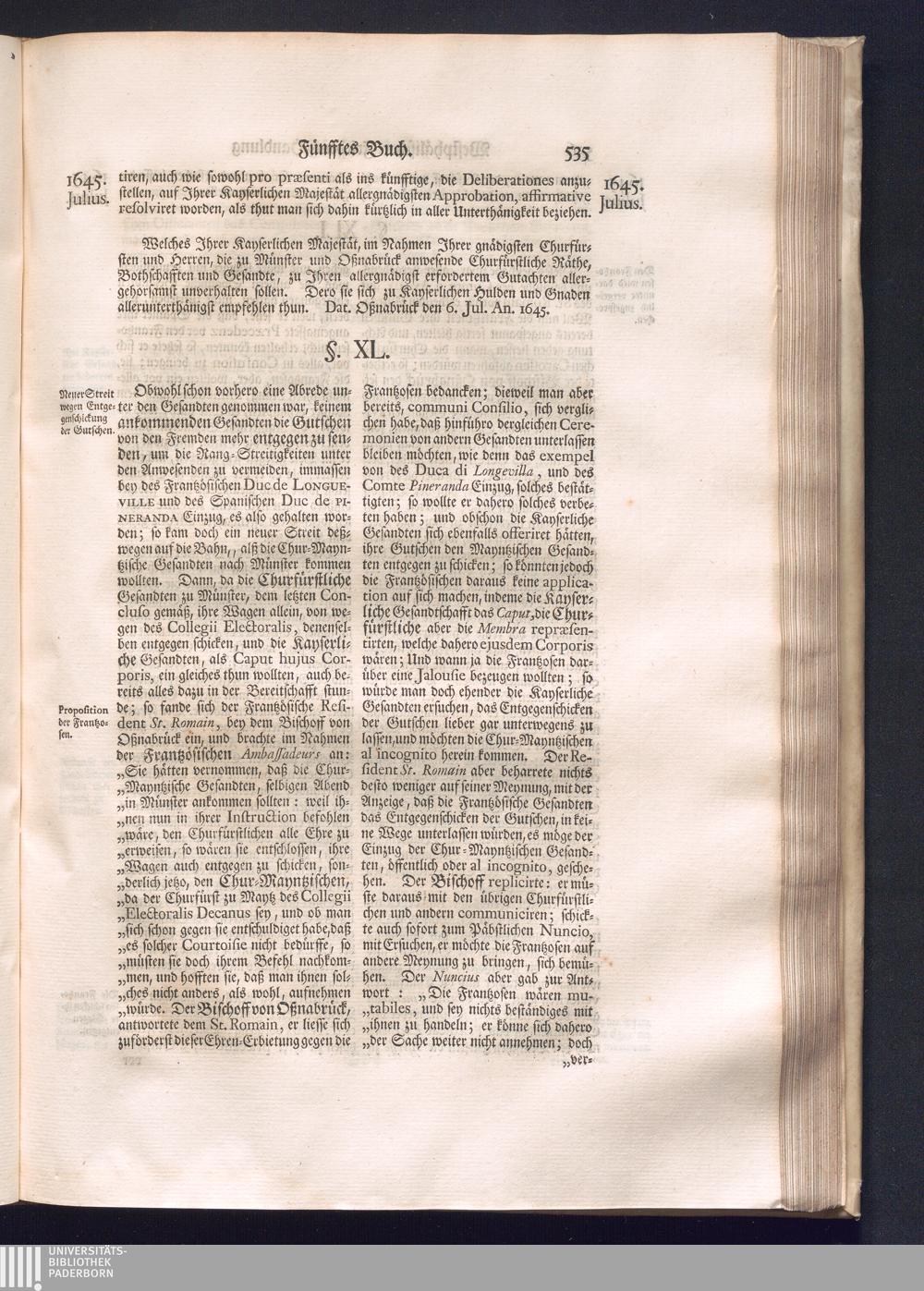 Erster Theil (1734) Worinnen enthalten, was vom Jahr 1643. biß in den Monath October Anno 1645. zwischen Jhro Römisch-Käyserlichen Majestät, dann den Beyden Cronen Franckreich und Schweden, ingleichen des Heiligen Römischen Reichs Chur-Fürsten, Fürsten und Ständen, zu Oßnabrück und Münster gehandelt worden