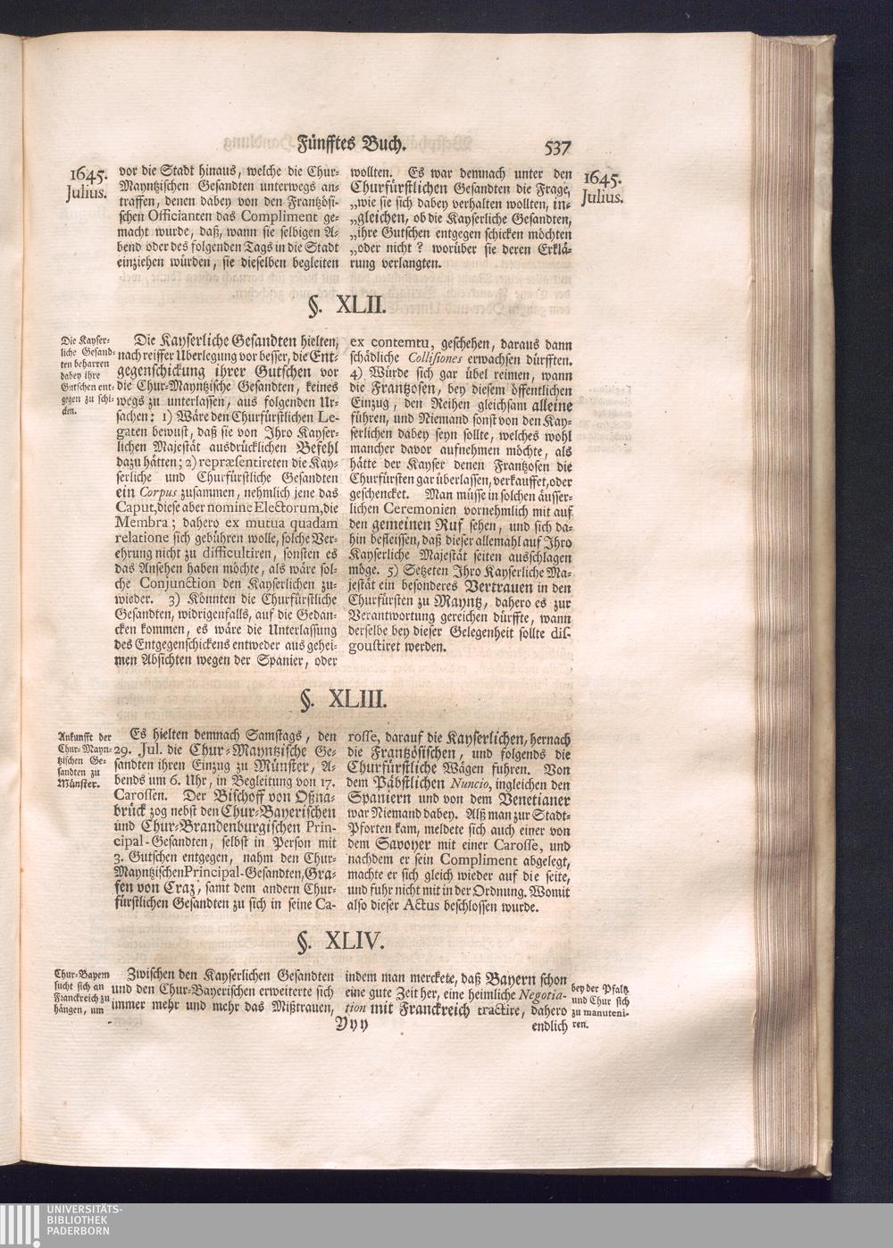 Erster Theil (1734) Worinnen enthalten, was vom Jahr 1643. biß in den Monath October Anno 1645. zwischen Jhro Römisch-Käyserlichen Majestät, dann den Beyden Cronen Franckreich und Schweden, ingleichen des Heiligen Römischen Reichs Chur-Fürsten, Fürsten und Ständen, zu Oßnabrück und Münster gehandelt worden