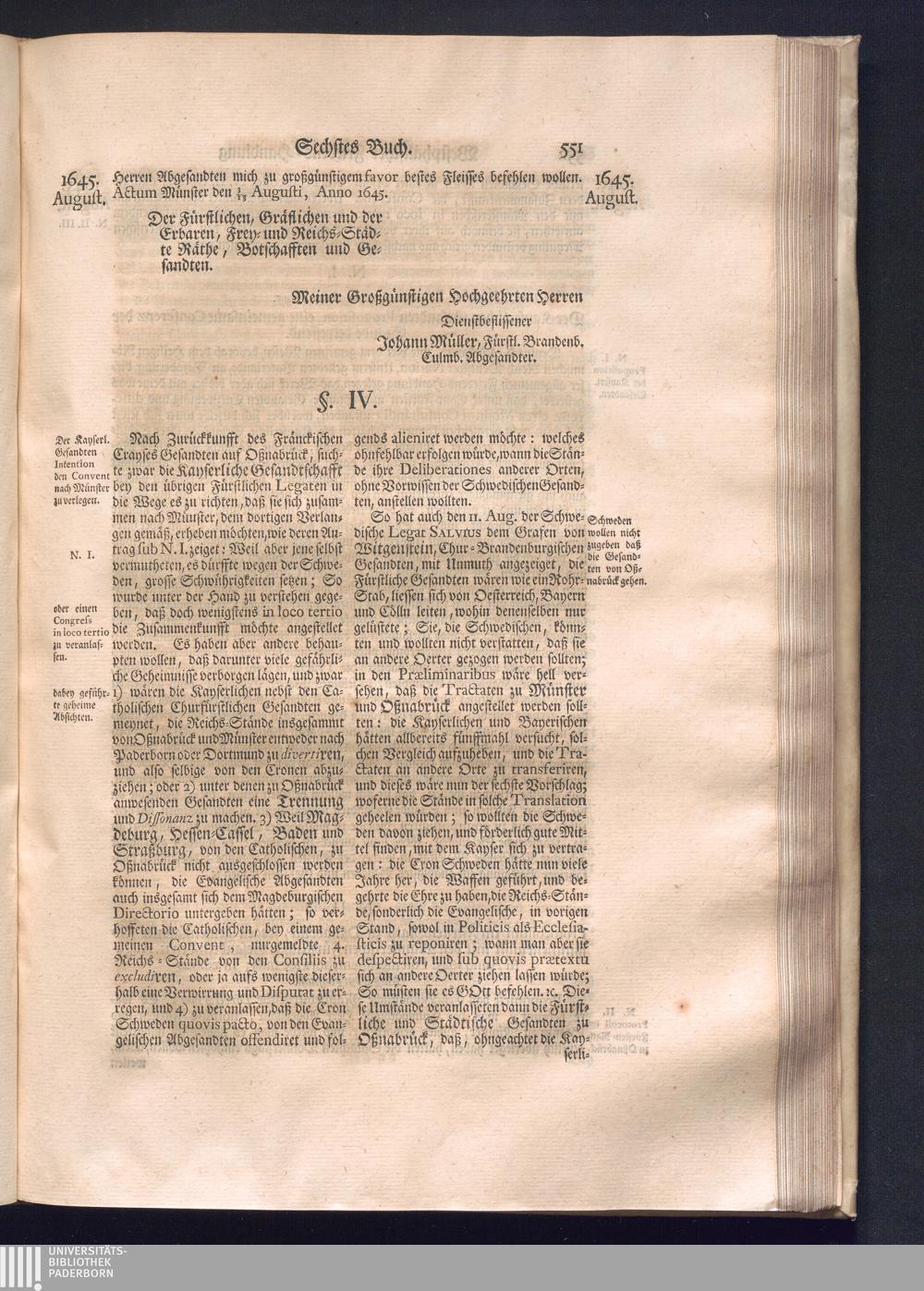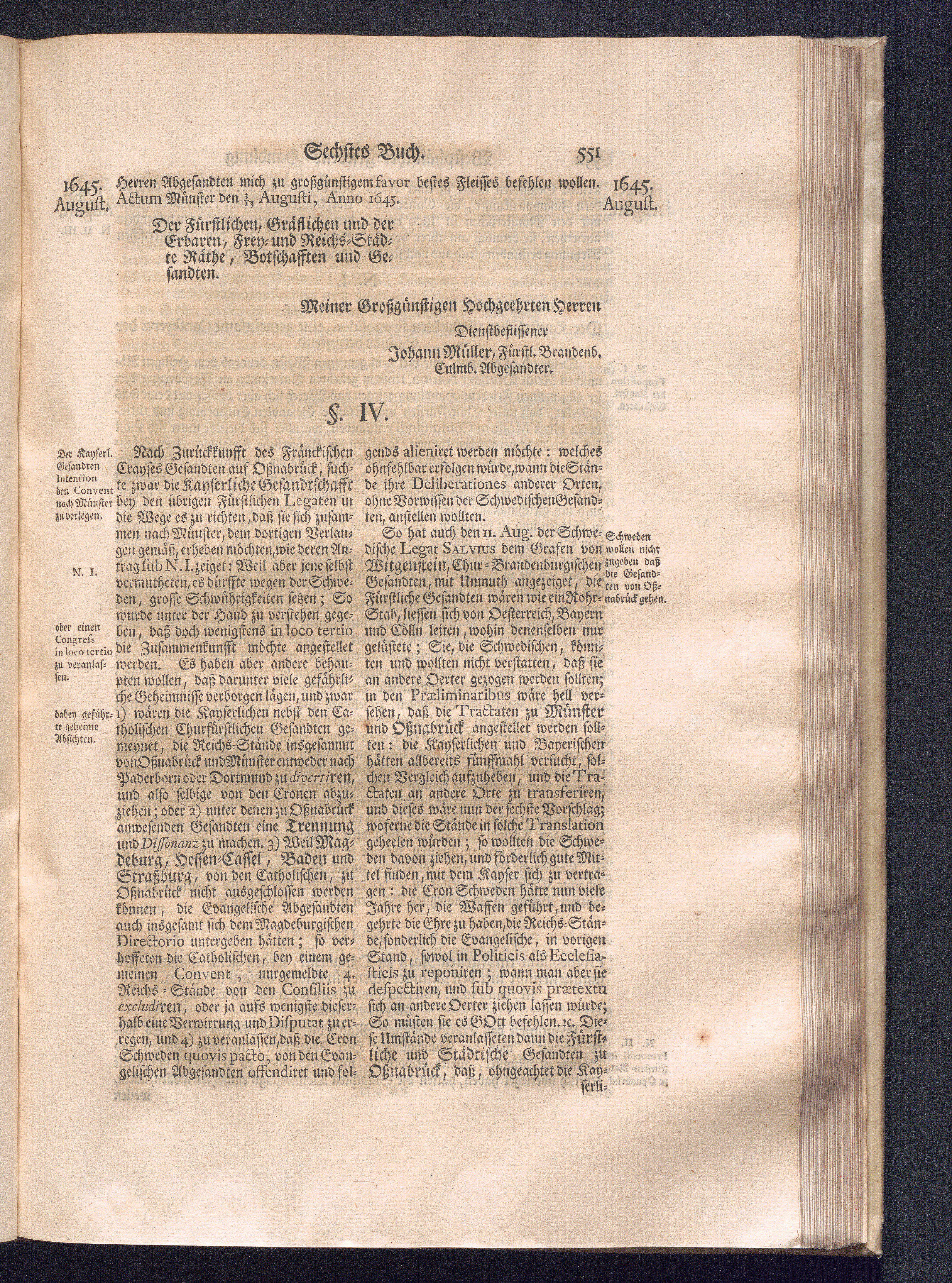 Erster Theil (1734) Worinnen enthalten, was vom Jahr 1643. biß in den Monath October Anno 1645. zwischen Jhro Römisch-Käyserlichen Majestät, dann den Beyden Cronen Franckreich und Schweden, ingleichen des Heiligen Römischen Reichs Chur-Fürsten, Fürsten und Ständen, zu Oßnabrück und Münster gehandelt worden