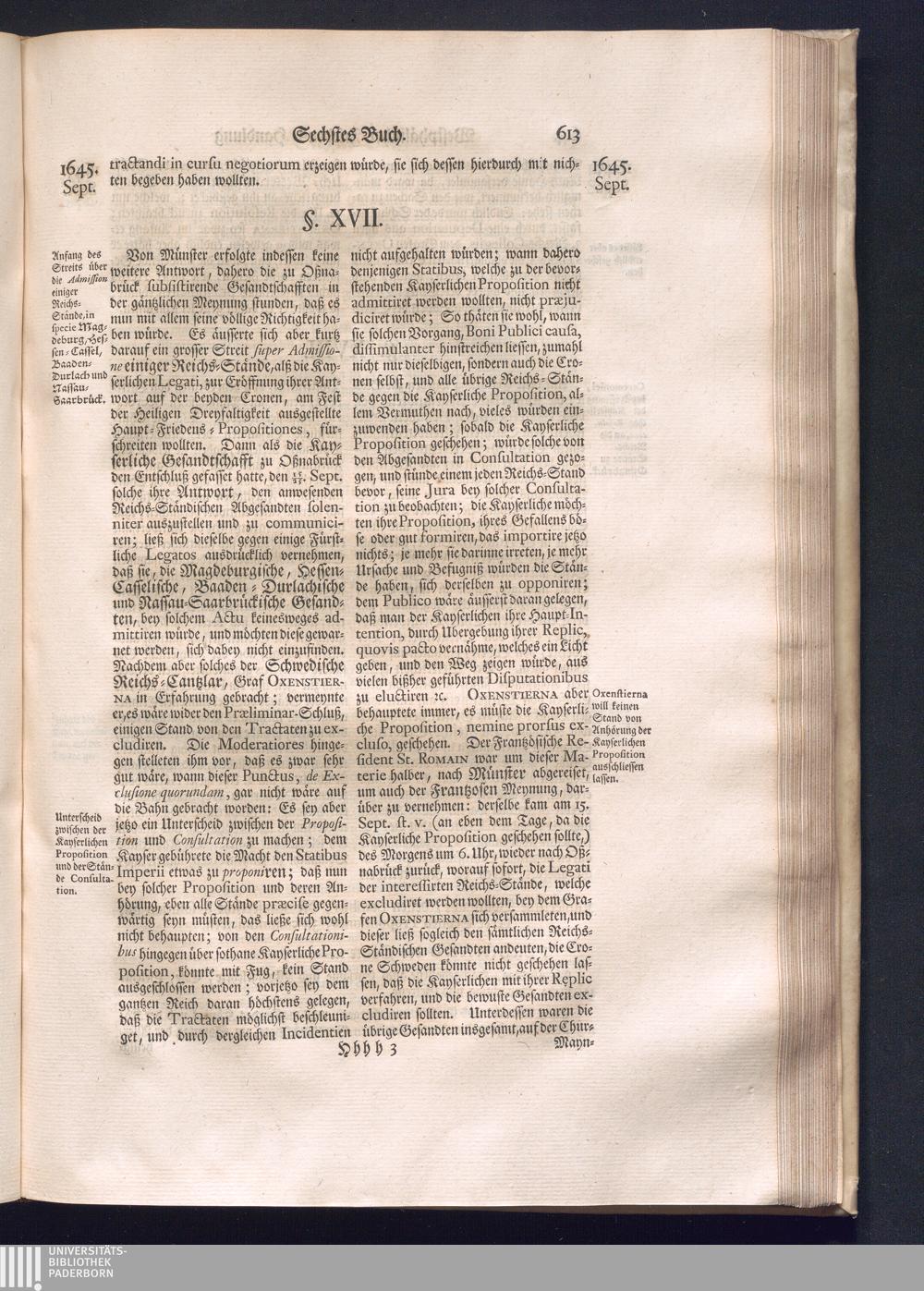 Erster Theil (1734) Worinnen enthalten, was vom Jahr 1643. biß in den Monath October Anno 1645. zwischen Jhro Römisch-Käyserlichen Majestät, dann den Beyden Cronen Franckreich und Schweden, ingleichen des Heiligen Römischen Reichs Chur-Fürsten, Fürsten und Ständen, zu Oßnabrück und Münster gehandelt worden