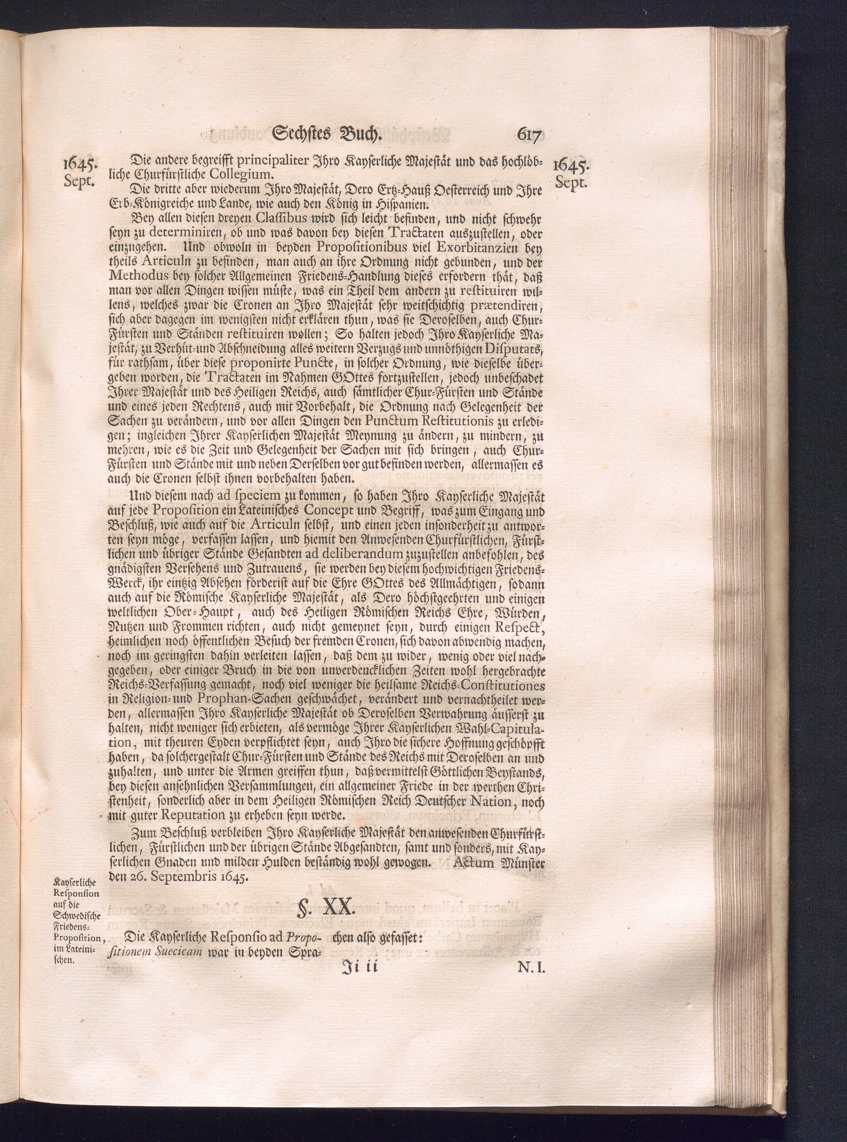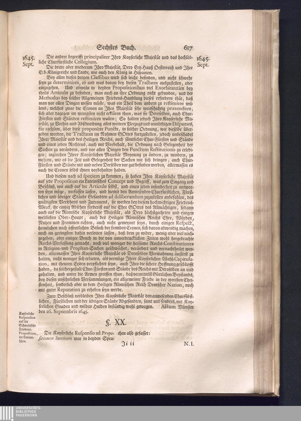 Erster Theil (1734) Worinnen enthalten, was vom Jahr 1643. biß in den Monath October Anno 1645. zwischen Jhro Römisch-Käyserlichen Majestät, dann den Beyden Cronen Franckreich und Schweden, ingleichen des Heiligen Römischen Reichs Chur-Fürsten, Fürsten und Ständen, zu Oßnabrück und Münster gehandelt worden