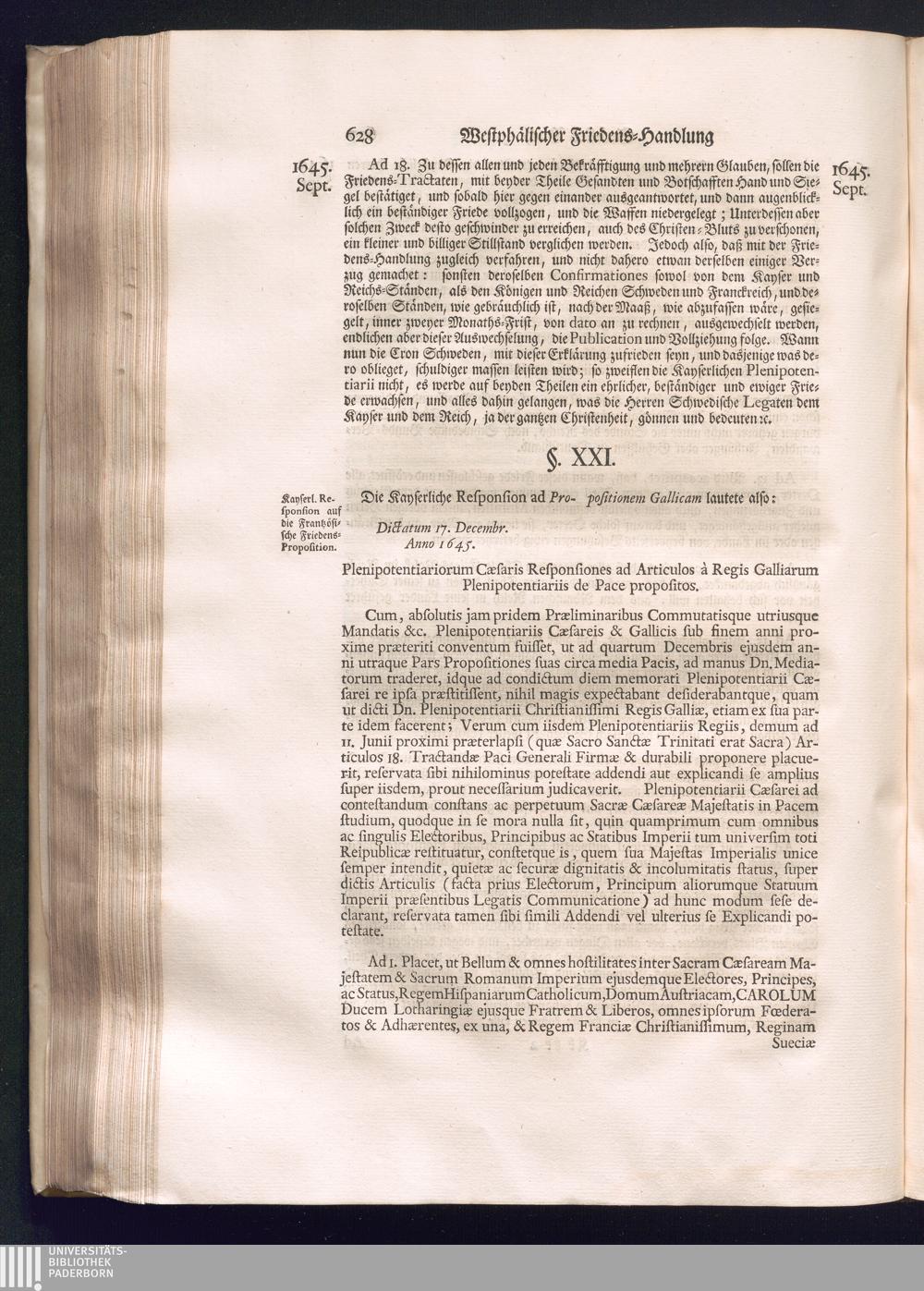 Erster Theil (1734) Worinnen enthalten, was vom Jahr 1643. biß in den Monath October Anno 1645. zwischen Jhro Römisch-Käyserlichen Majestät, dann den Beyden Cronen Franckreich und Schweden, ingleichen des Heiligen Römischen Reichs Chur-Fürsten, Fürsten und Ständen, zu Oßnabrück und Münster gehandelt worden