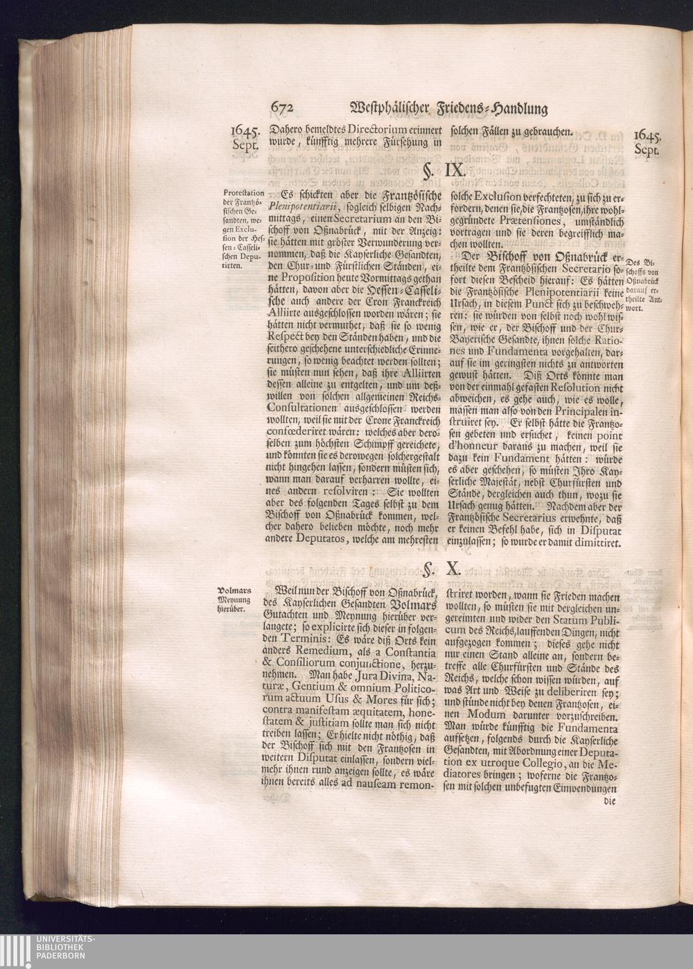 Erster Theil (1734) Worinnen enthalten, was vom Jahr 1643. biß in den Monath October Anno 1645. zwischen Jhro Römisch-Käyserlichen Majestät, dann den Beyden Cronen Franckreich und Schweden, ingleichen des Heiligen Römischen Reichs Chur-Fürsten, Fürsten und Ständen, zu Oßnabrück und Münster gehandelt worden