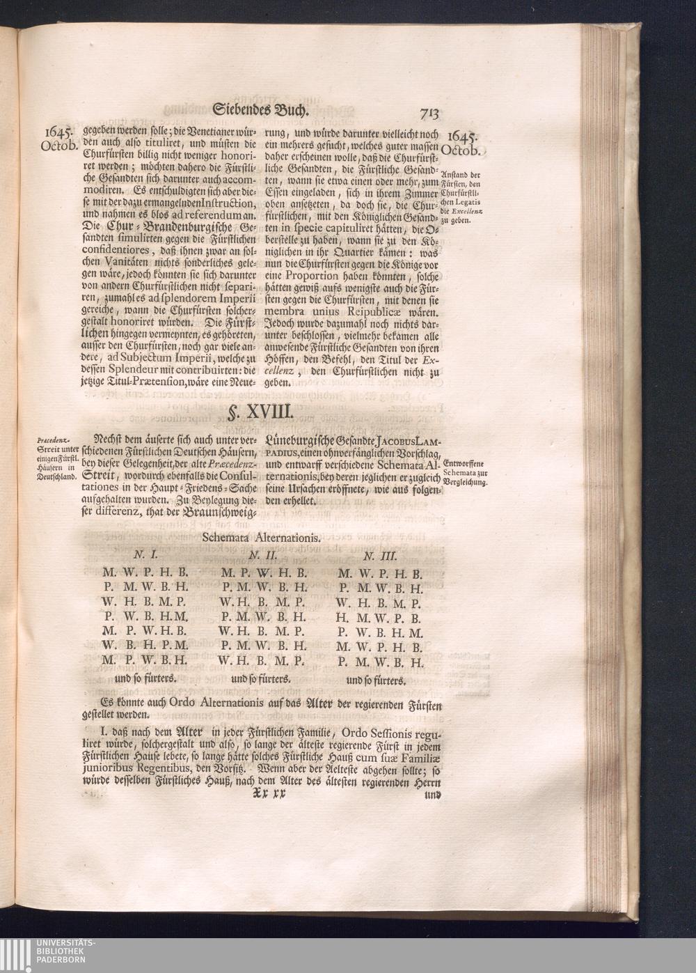 Erster Theil (1734) Worinnen enthalten, was vom Jahr 1643. biß in den Monath October Anno 1645. zwischen Jhro Römisch-Käyserlichen Majestät, dann den Beyden Cronen Franckreich und Schweden, ingleichen des Heiligen Römischen Reichs Chur-Fürsten, Fürsten und Ständen, zu Oßnabrück und Münster gehandelt worden
