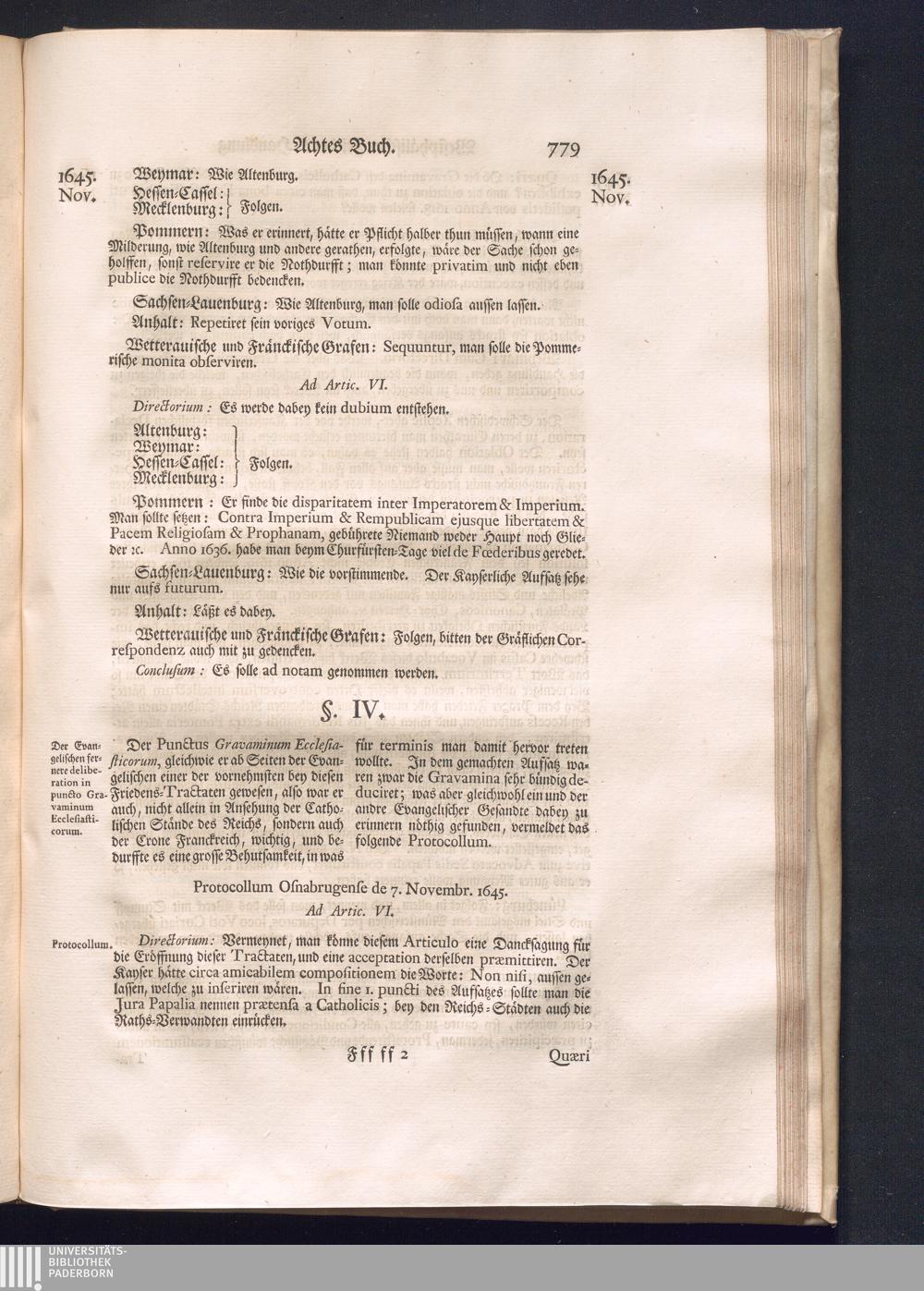 Erster Theil (1734) Worinnen enthalten, was vom Jahr 1643. biß in den Monath October Anno 1645. zwischen Jhro Römisch-Käyserlichen Majestät, dann den Beyden Cronen Franckreich und Schweden, ingleichen des Heiligen Römischen Reichs Chur-Fürsten, Fürsten und Ständen, zu Oßnabrück und Münster gehandelt worden
