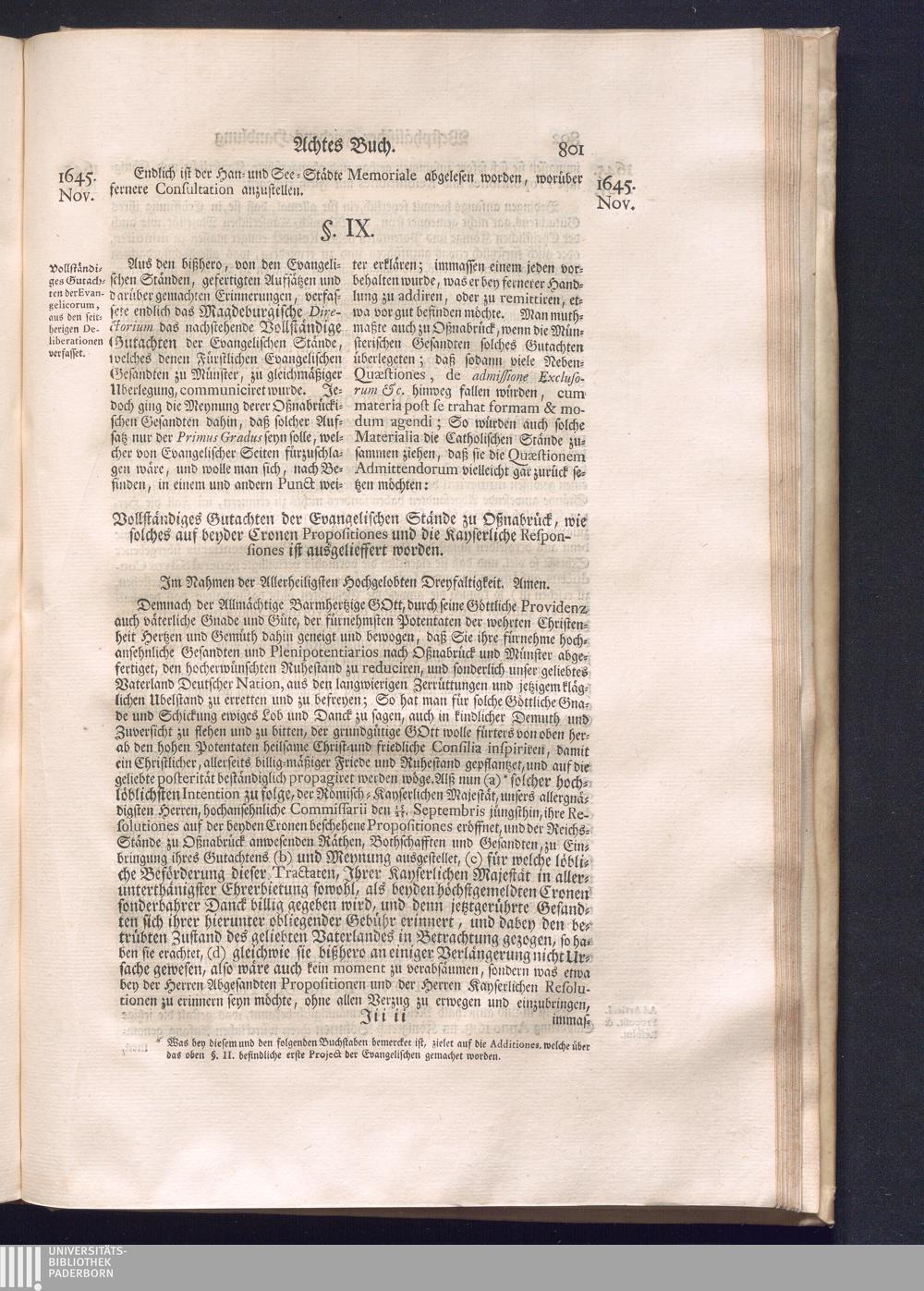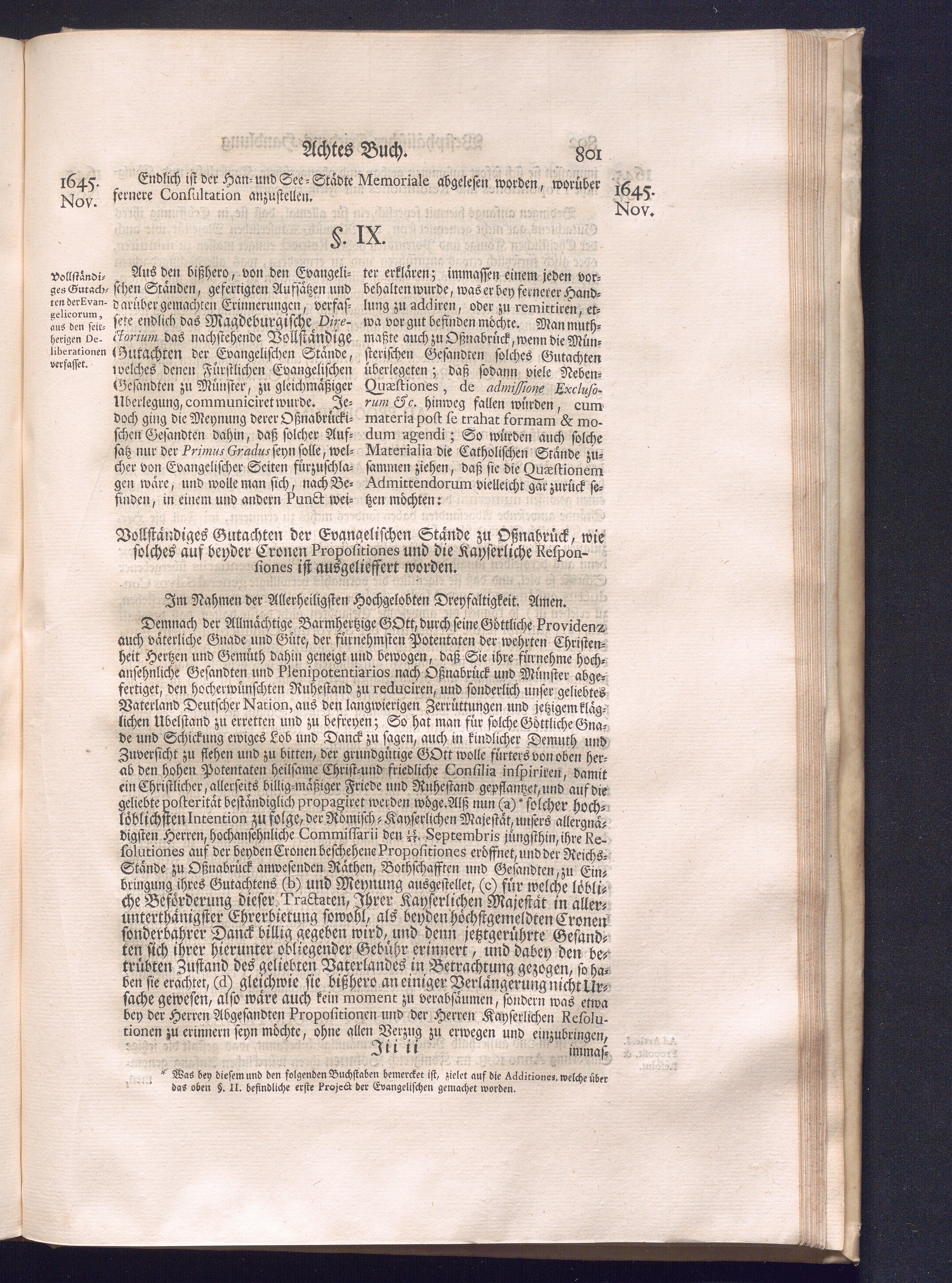 Erster Theil (1734) Worinnen enthalten, was vom Jahr 1643. biß in den Monath October Anno 1645. zwischen Jhro Römisch-Käyserlichen Majestät, dann den Beyden Cronen Franckreich und Schweden, ingleichen des Heiligen Römischen Reichs Chur-Fürsten, Fürsten und Ständen, zu Oßnabrück und Münster gehandelt worden