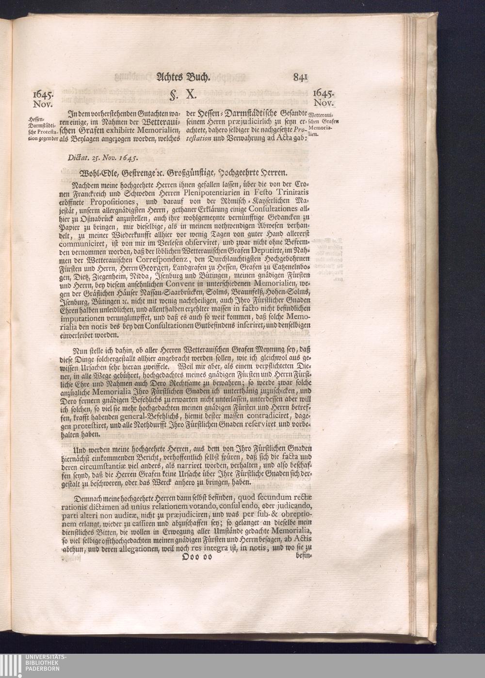 Erster Theil (1734) Worinnen enthalten, was vom Jahr 1643. biß in den Monath October Anno 1645. zwischen Jhro Römisch-Käyserlichen Majestät, dann den Beyden Cronen Franckreich und Schweden, ingleichen des Heiligen Römischen Reichs Chur-Fürsten, Fürsten und Ständen, zu Oßnabrück und Münster gehandelt worden
