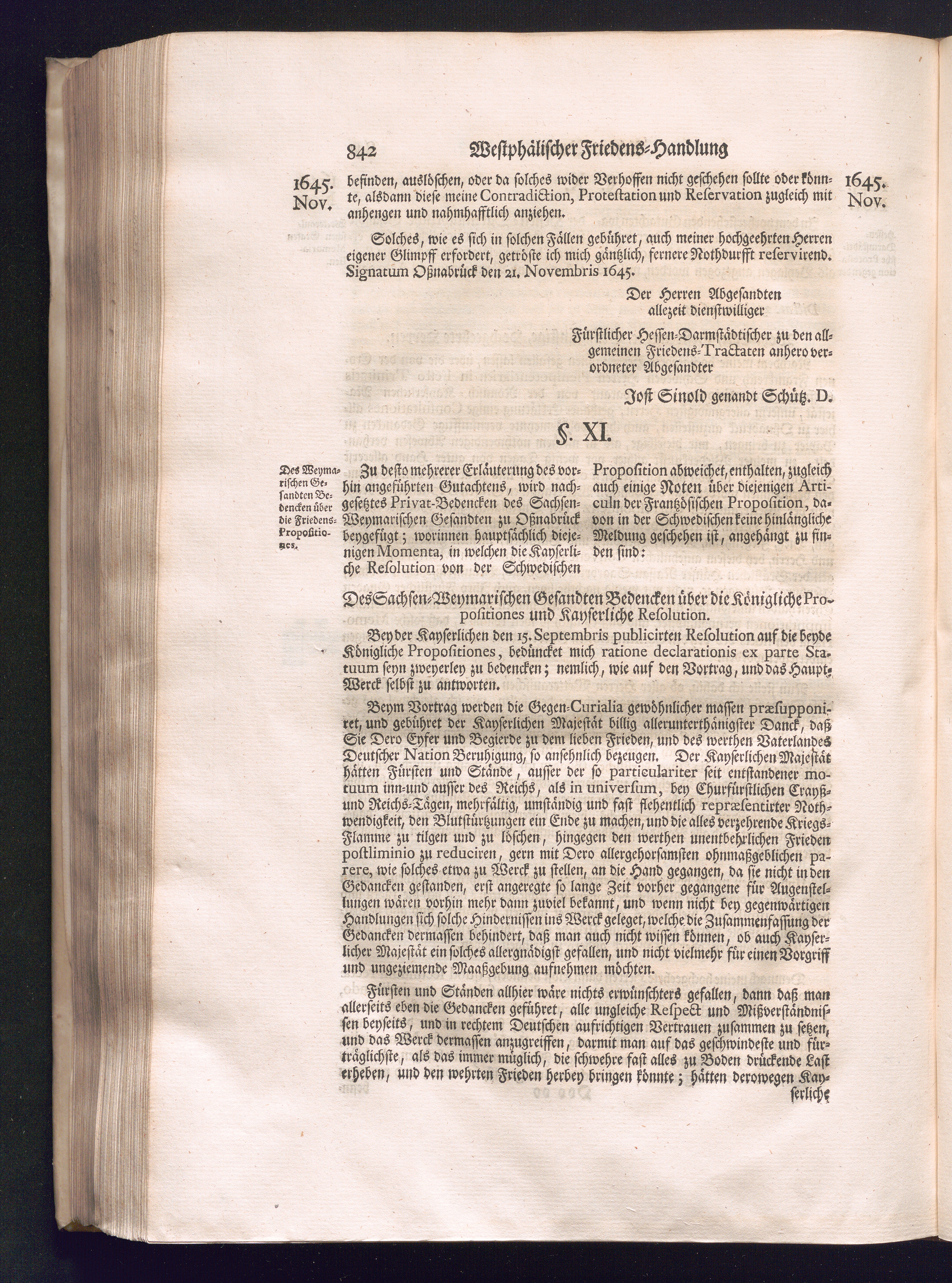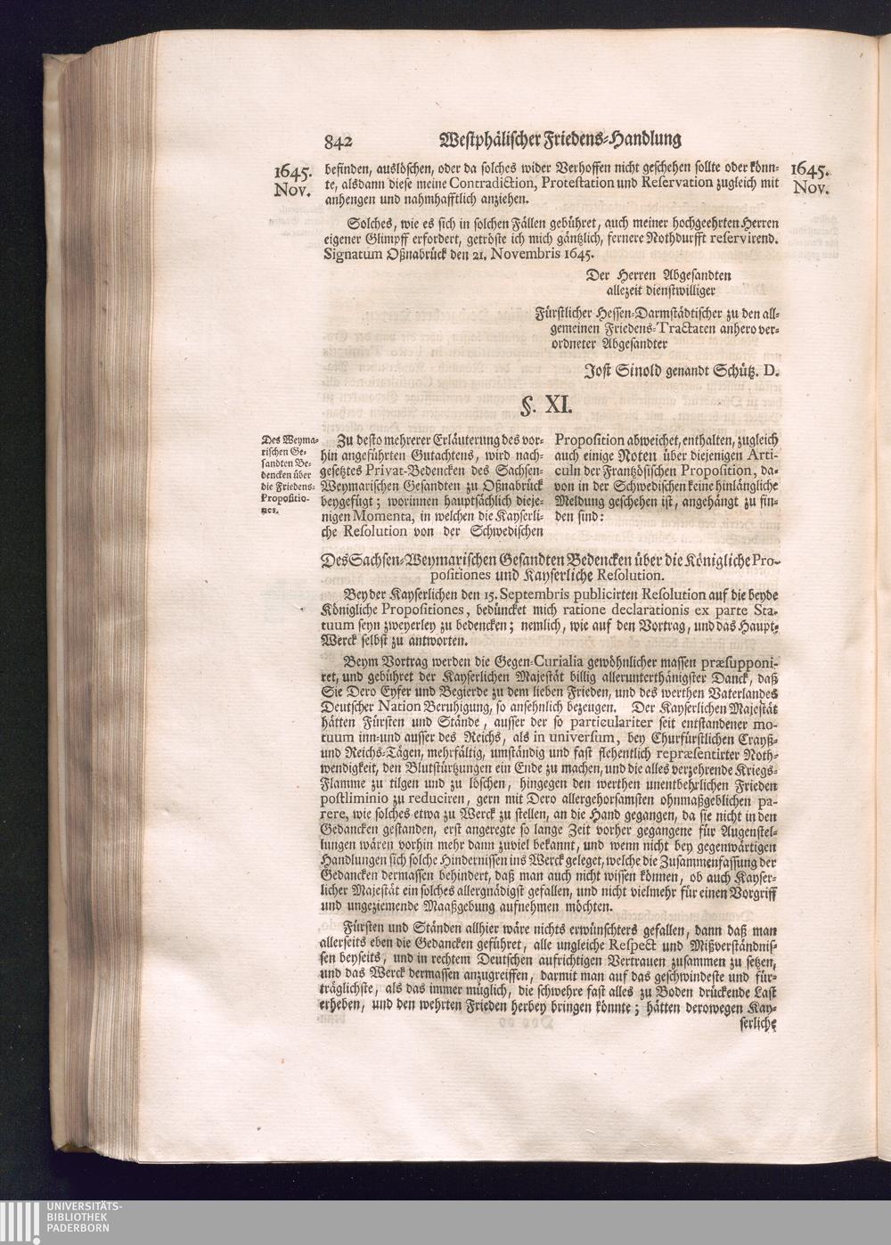 Erster Theil (1734) Worinnen enthalten, was vom Jahr 1643. biß in den Monath October Anno 1645. zwischen Jhro Römisch-Käyserlichen Majestät, dann den Beyden Cronen Franckreich und Schweden, ingleichen des Heiligen Römischen Reichs Chur-Fürsten, Fürsten und Ständen, zu Oßnabrück und Münster gehandelt worden