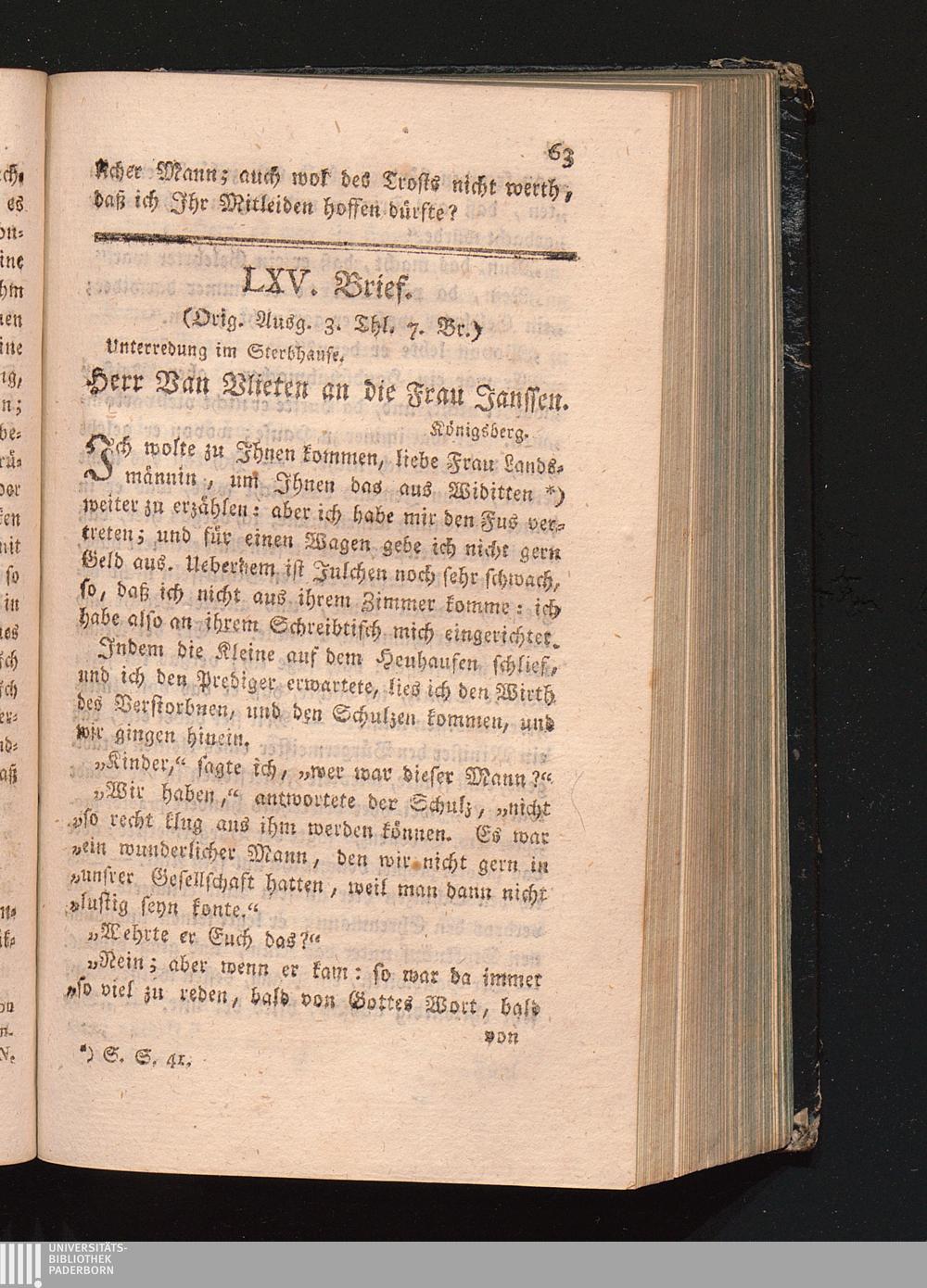 LXV. Brief. Unterredung im Sterbhause.