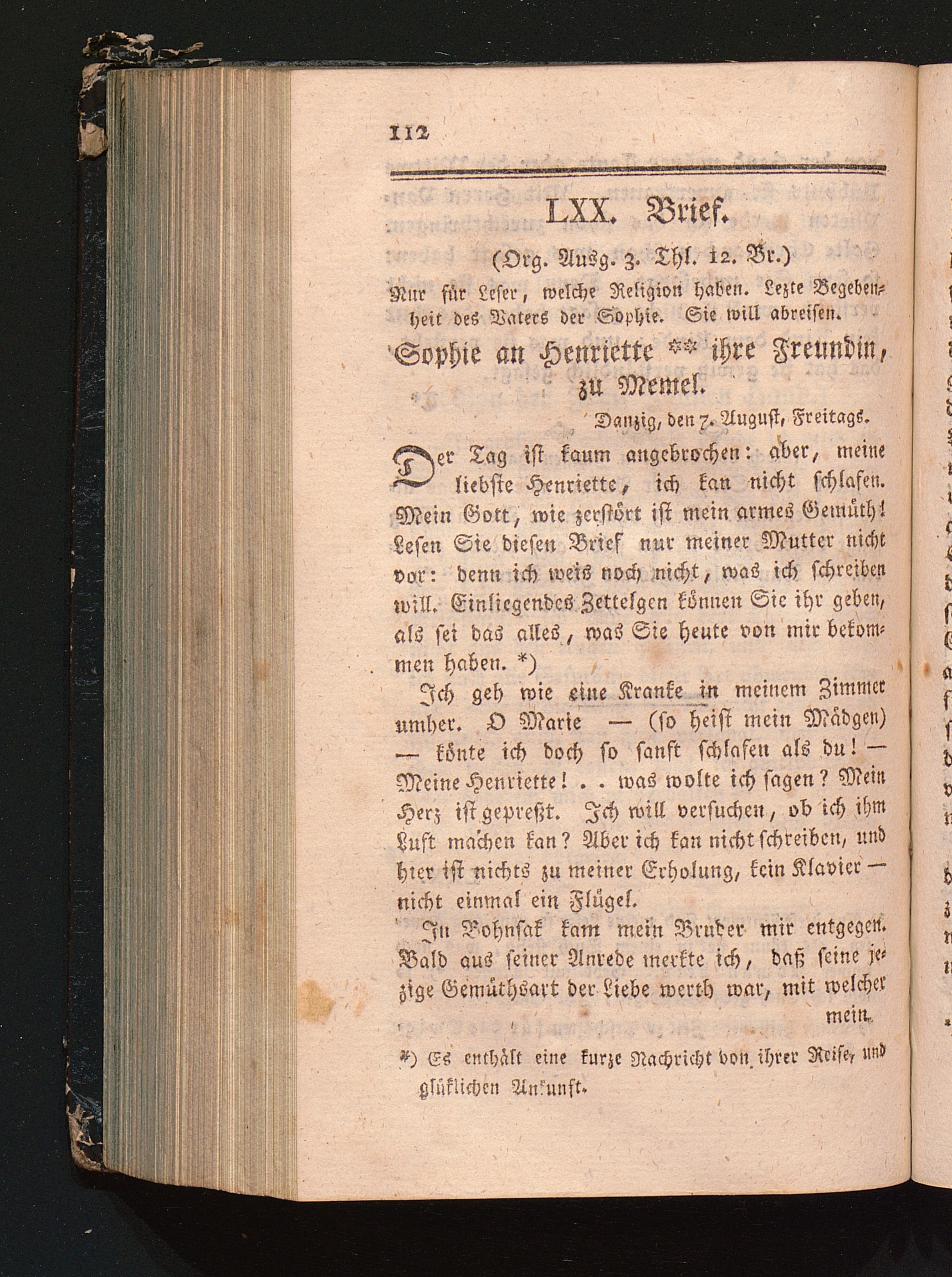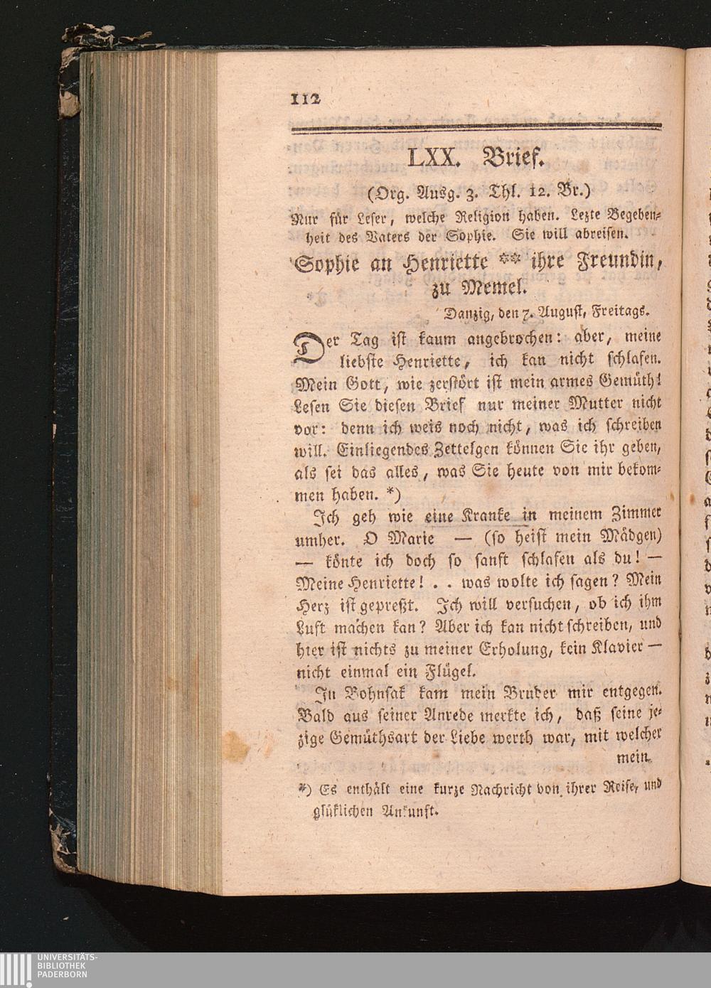 LXX. Brief. Nur für Leser, welche Religion haben. Lezte Begebenheiten des Vaters[...]