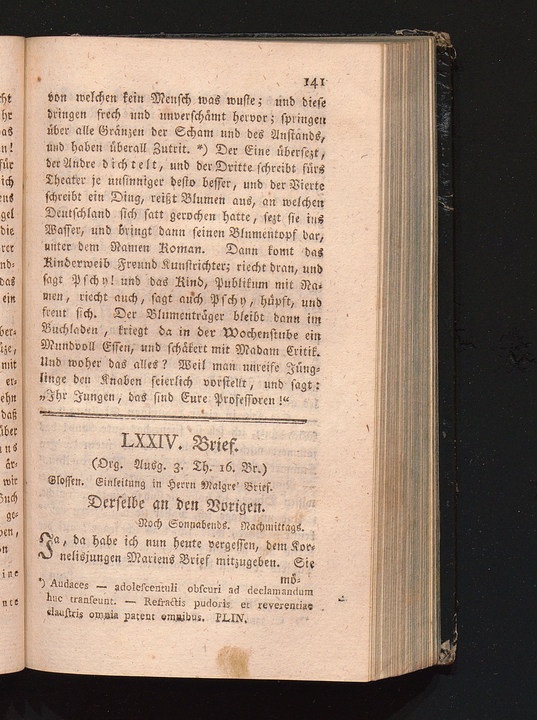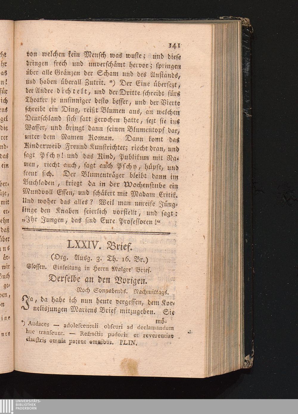 LXXIV. Brief. Glossen. Einleitung in Hrn. Malgrè Brief.