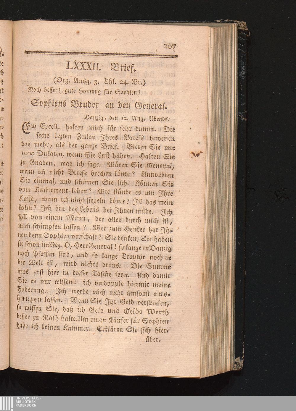 LXXXII. Brief. Noch besser! Gute Hofnung für Sophien.
