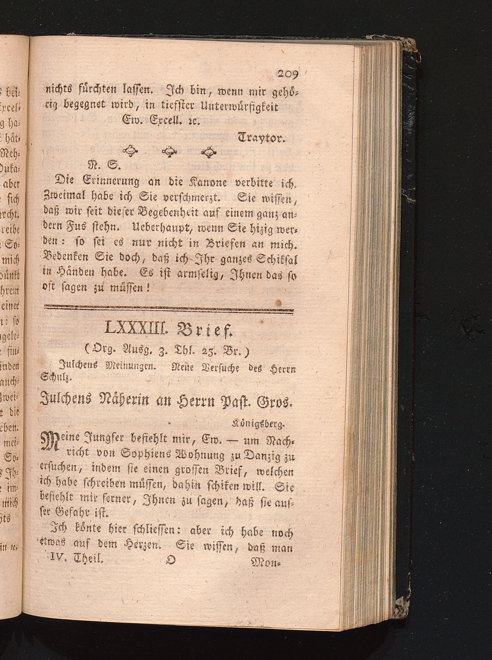 LXXXIII. Brief. Julchens Meinungen. Neue Versuche des Hrn. Schulz,