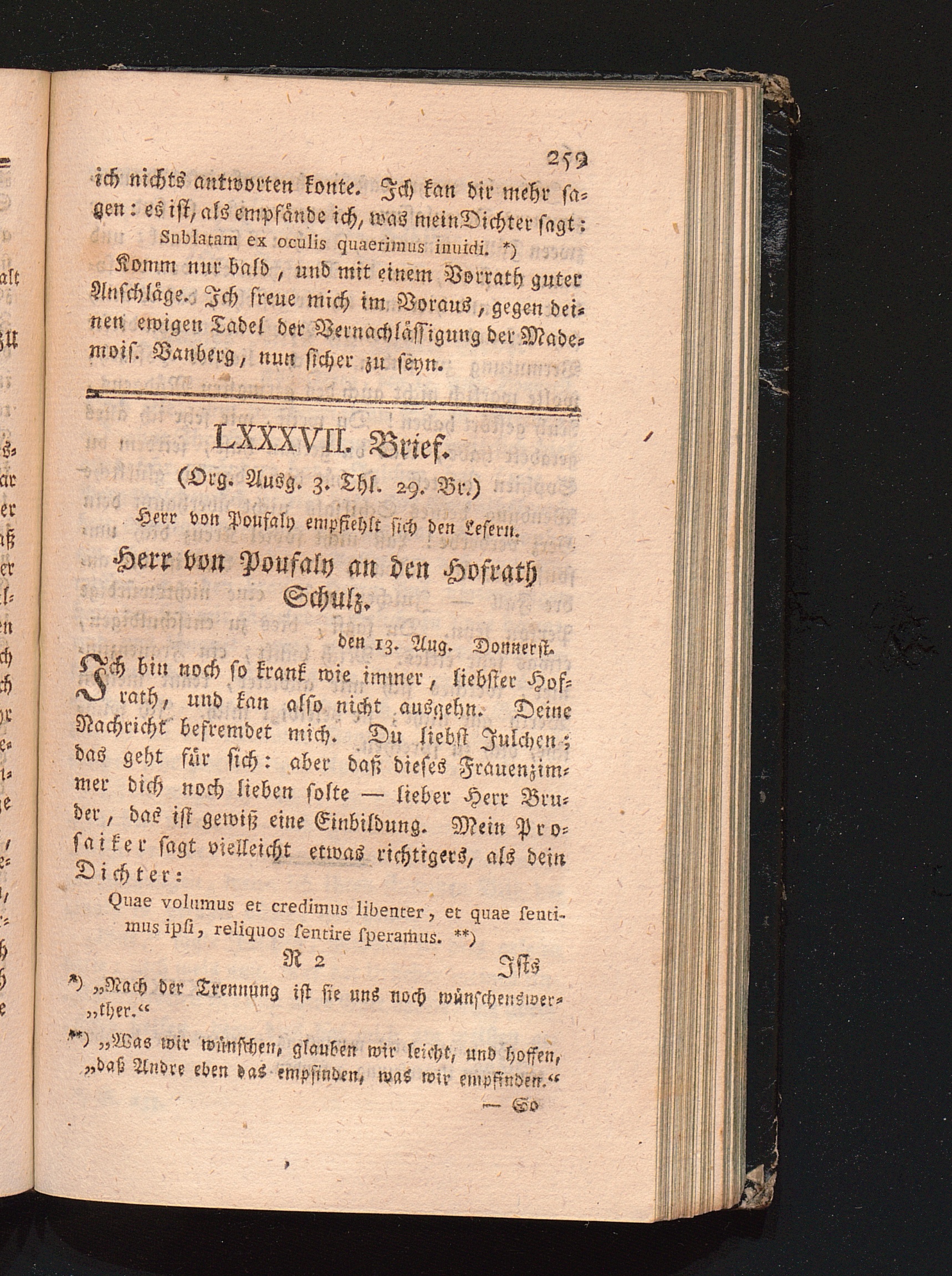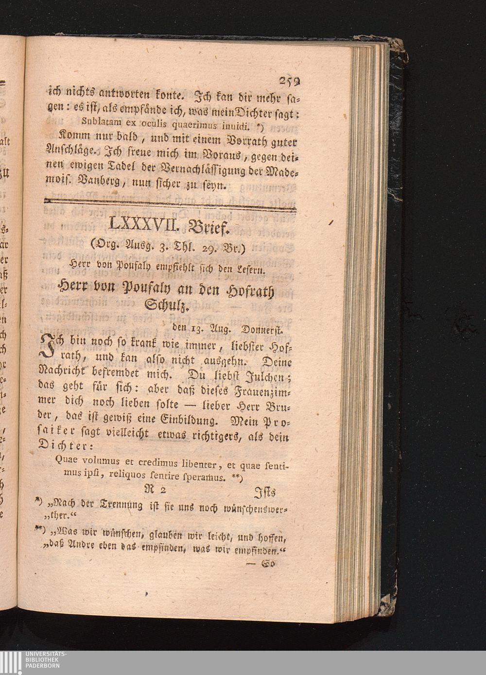 LXXXVII. Brief. Herr von Pouvaly empfiehlt sich den Lesern.