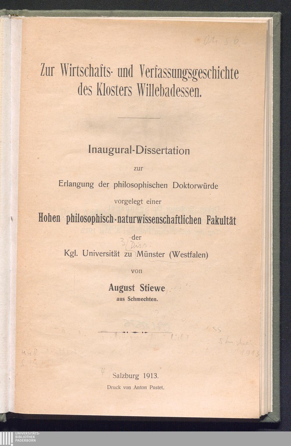 Zur Wirtschafts- und Verfassungsgeschichte des Klosters Willebadessen / August Stiewe