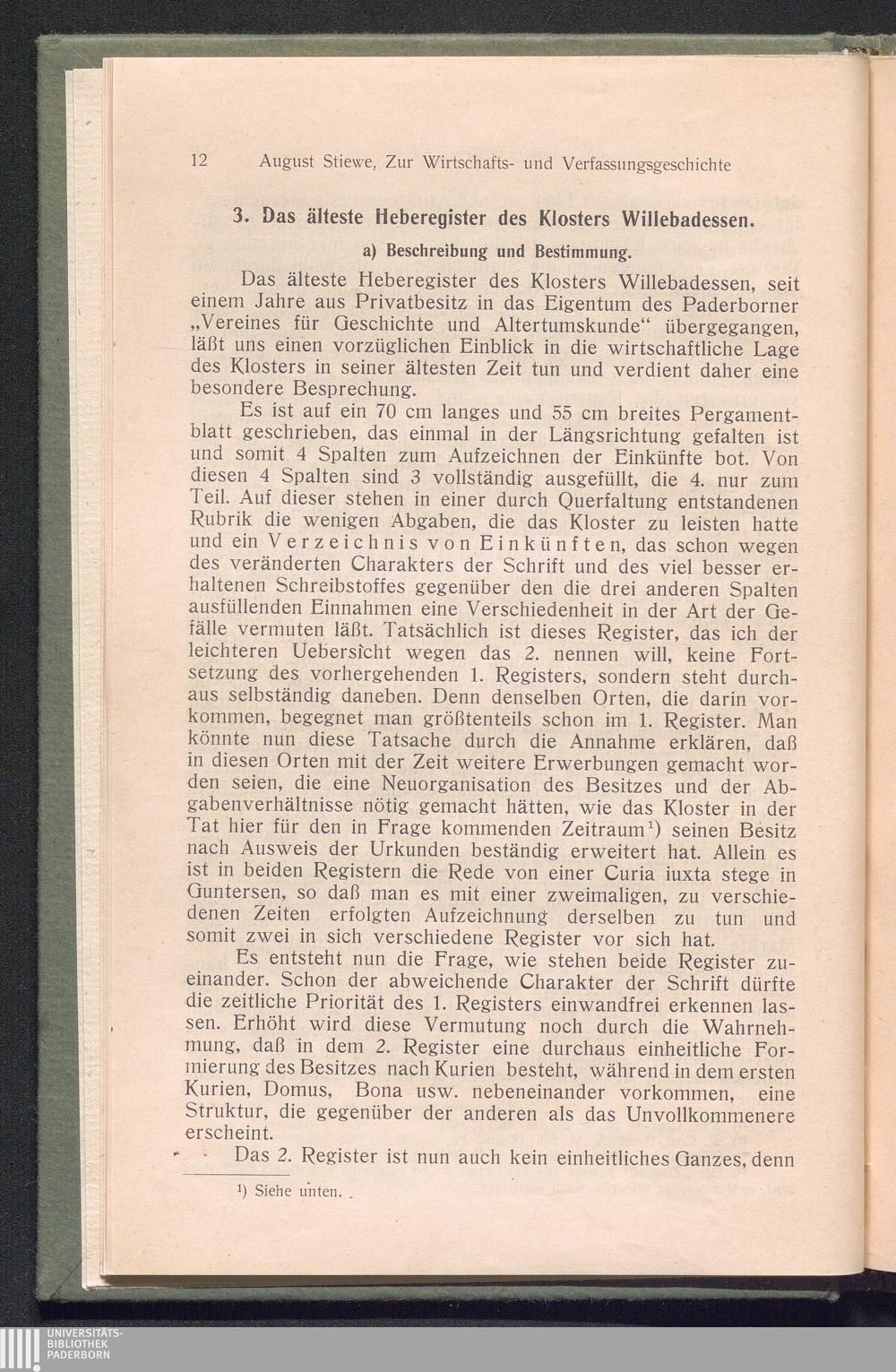Zur Wirtschafts- und Verfassungsgeschichte des Klosters Willebadessen / August Stiewe