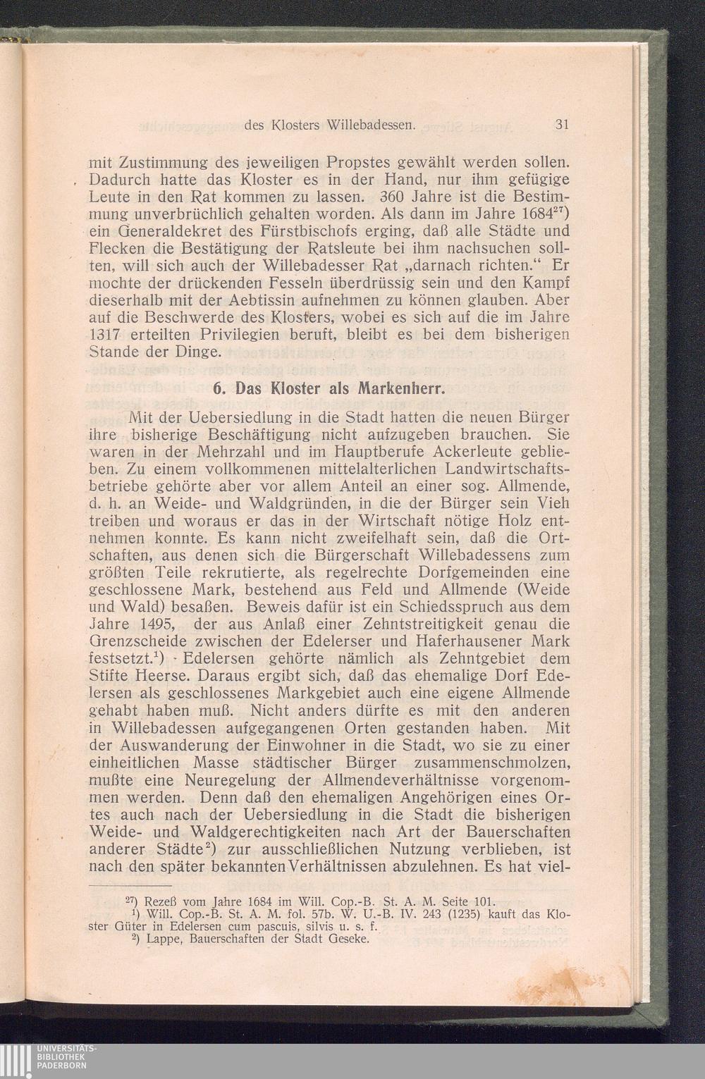 Zur Wirtschafts- und Verfassungsgeschichte des Klosters Willebadessen