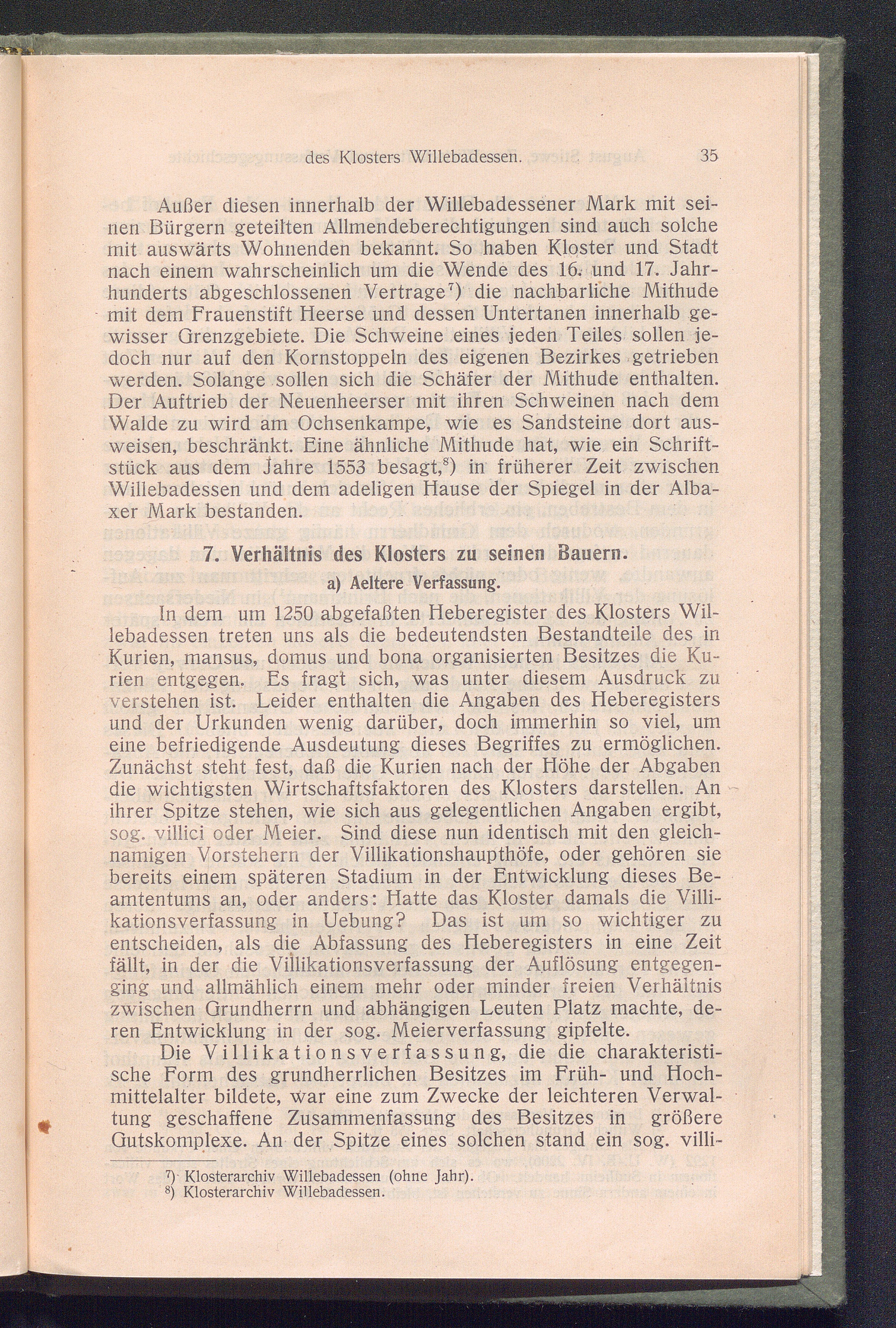 7. Verhältnis des Klosters zu seinen Bauern: