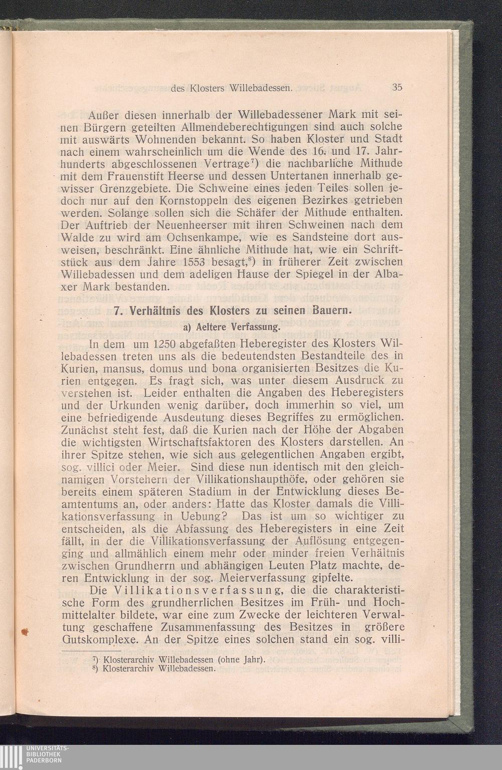 Zur Wirtschafts- und Verfassungsgeschichte des Klosters Willebadessen