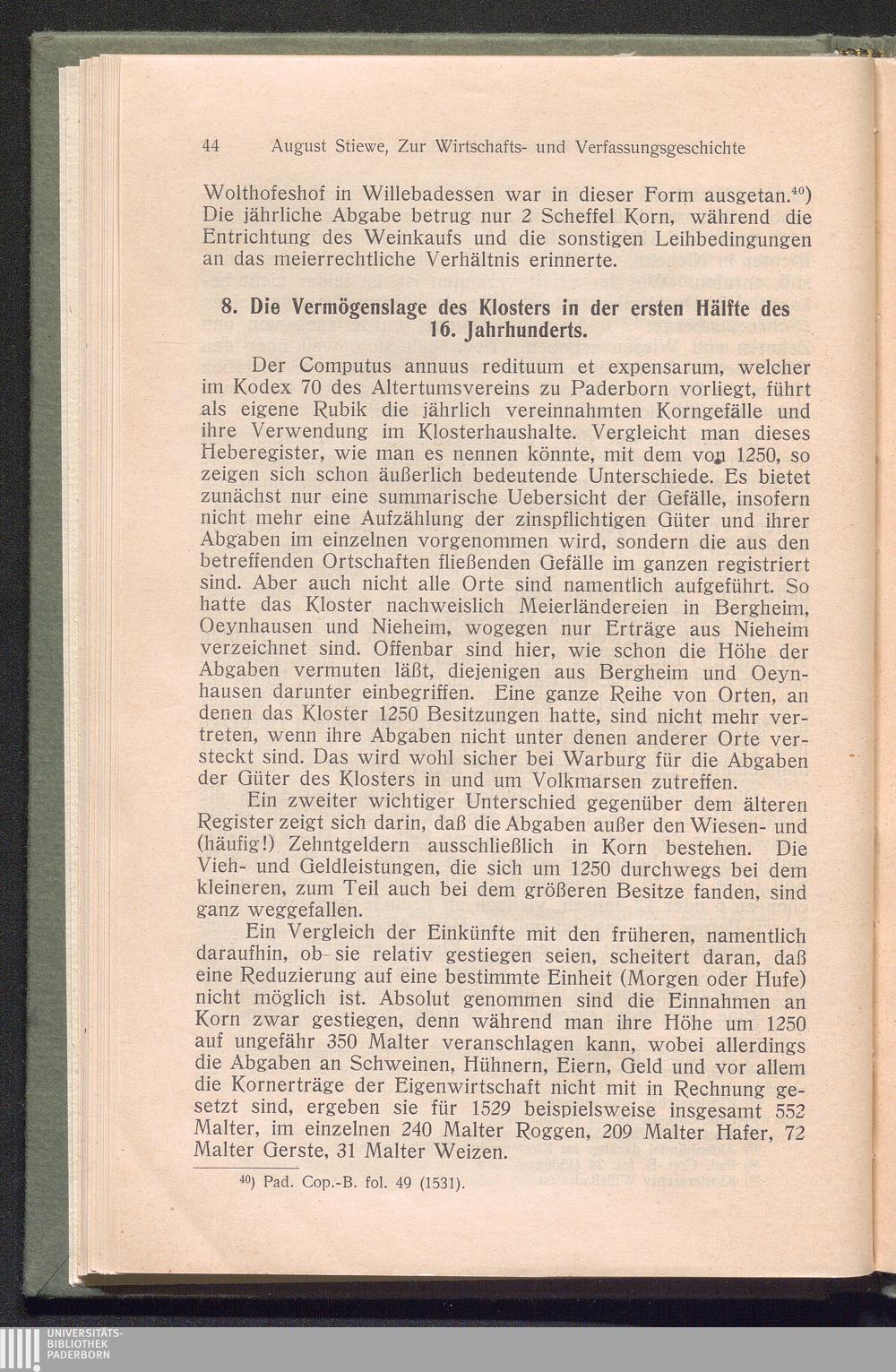 Zur Wirtschafts- und Verfassungsgeschichte des Klosters Willebadessen