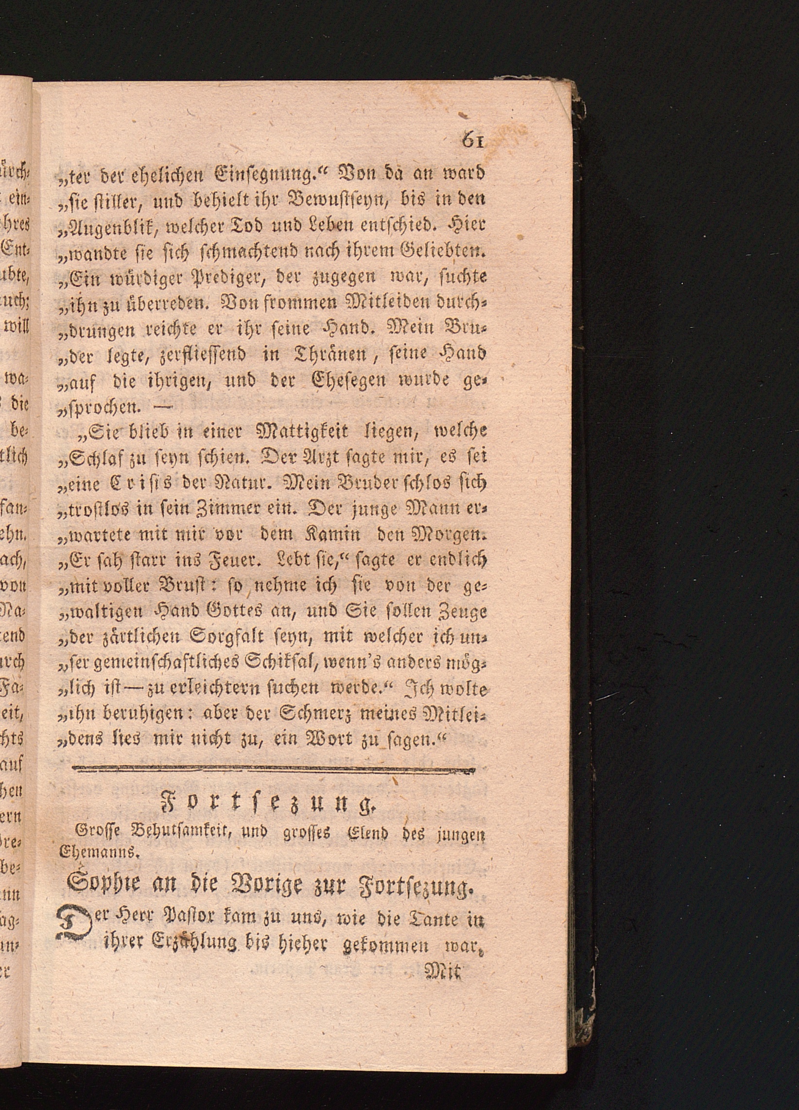 Fortsezung. Grosse Behutsamkeit und grosses Elend des jungen Ehemanns.