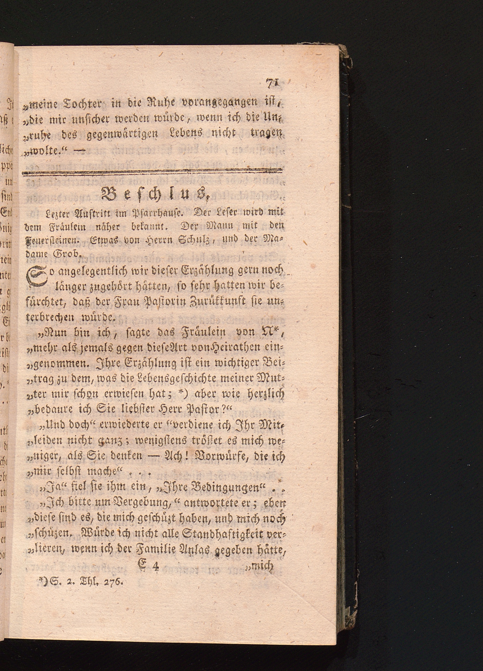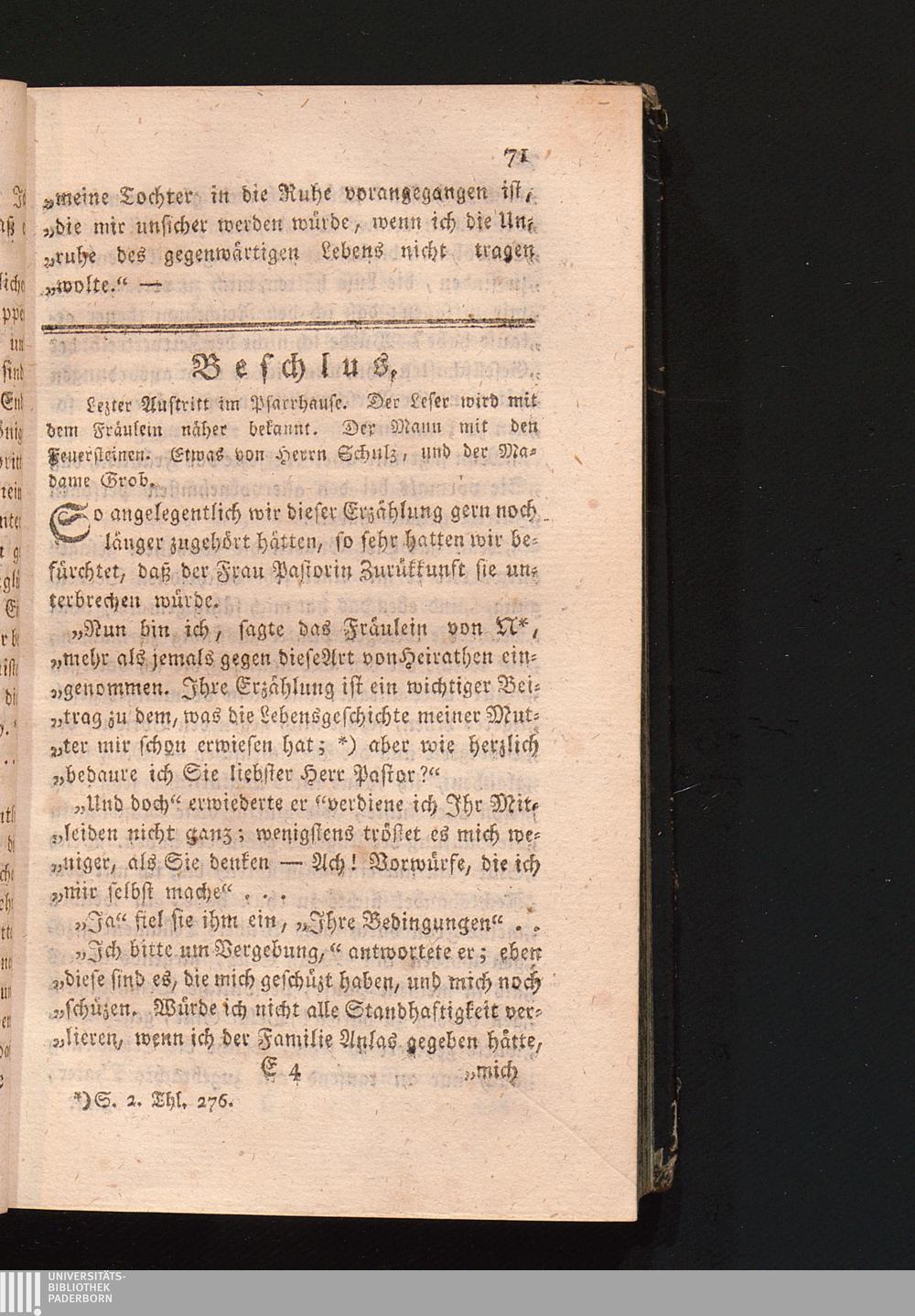Beschlus. Lezter Auftritt im Pfarrhause. Der Leser wird mit dem Fräulein näher bekannt.[...]