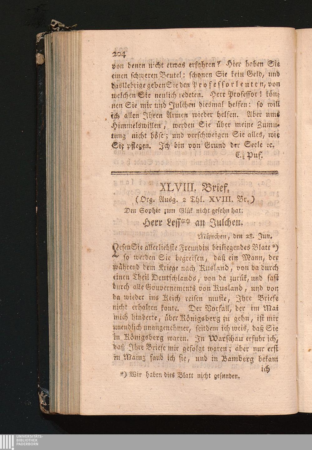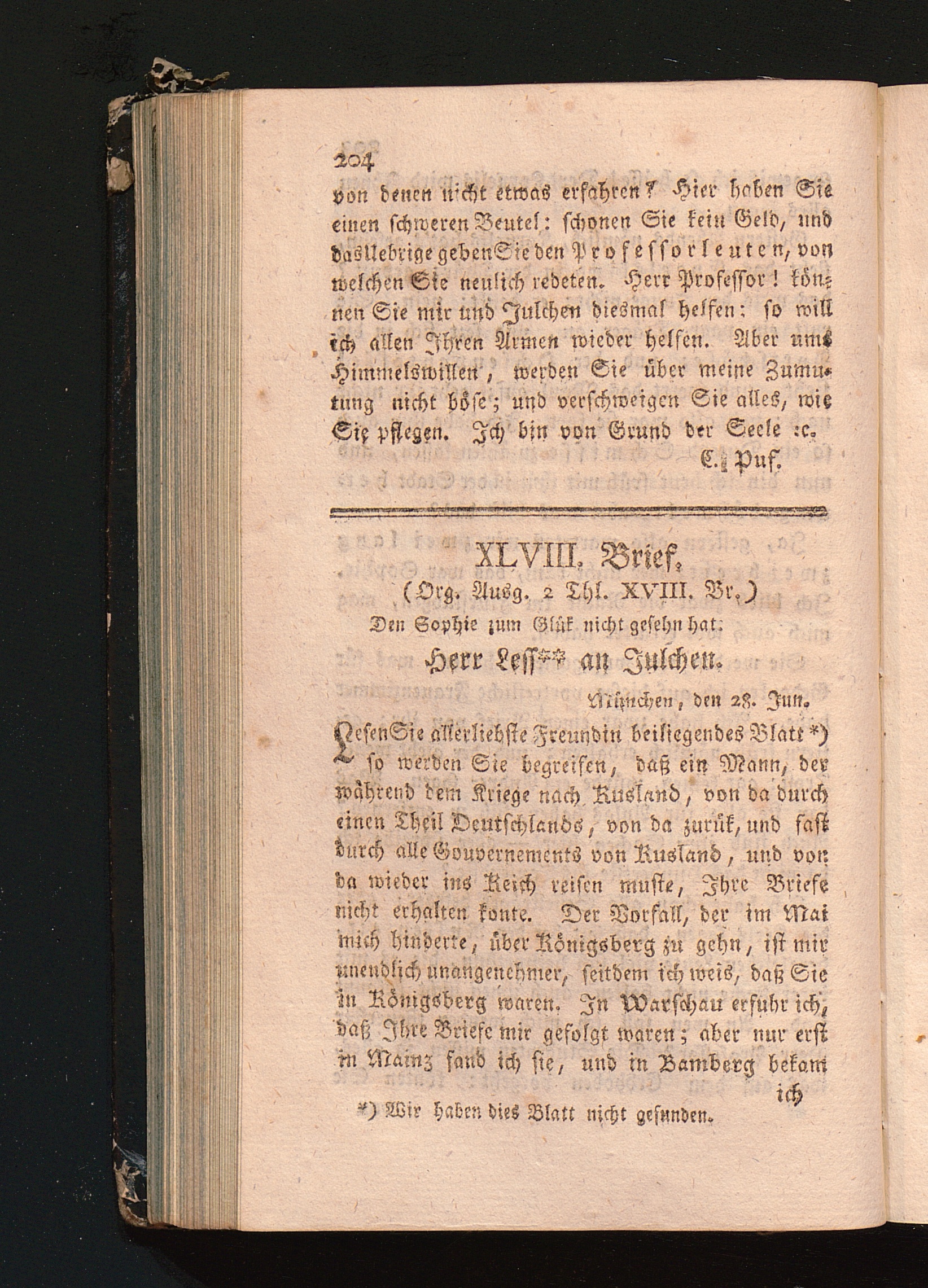 XLVIII. Brief, den Sophie zum Glük nicht gesehn hat.