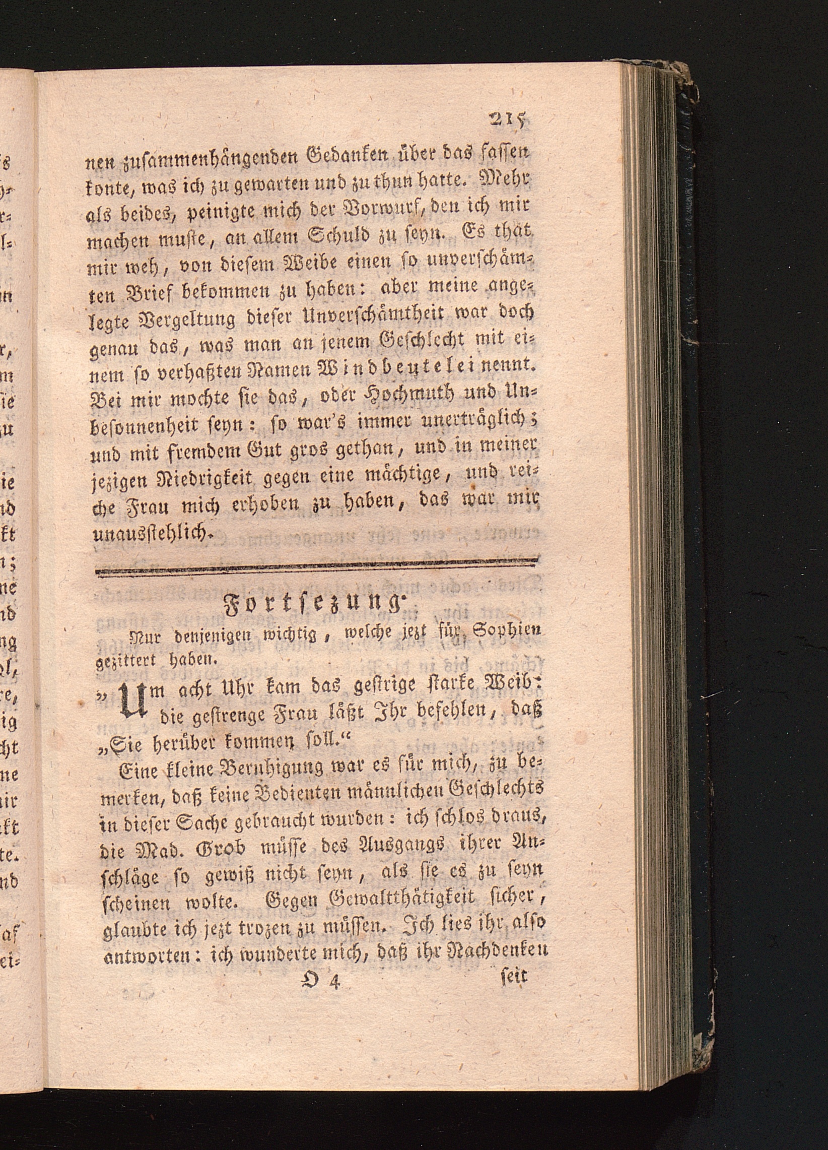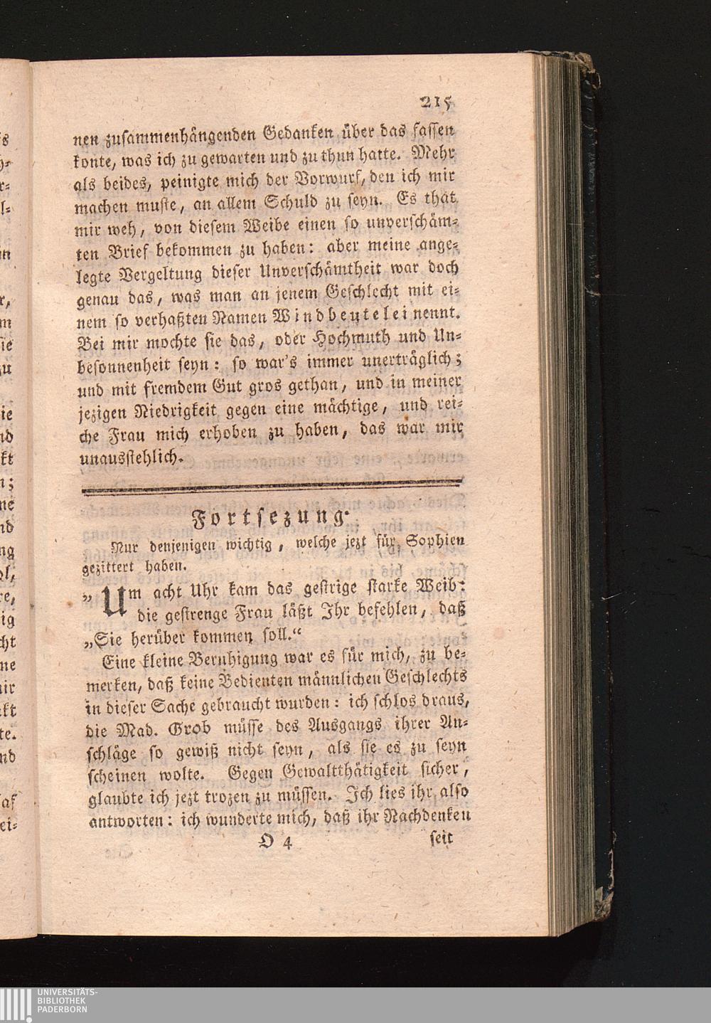 Fortsezung, nur denjenigen wichtig, welche jezt für Sophien gezittert haben.